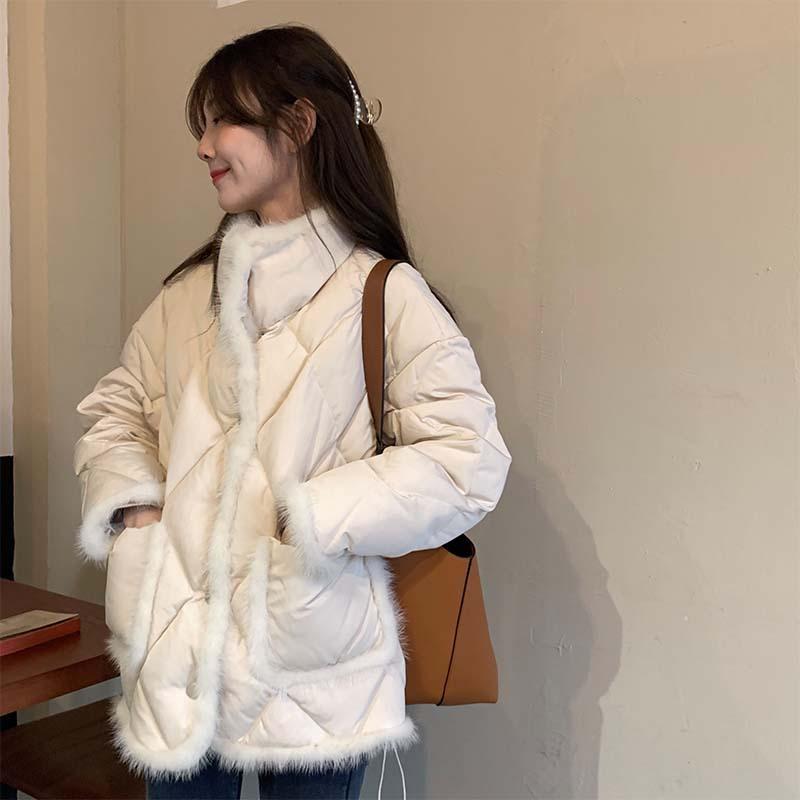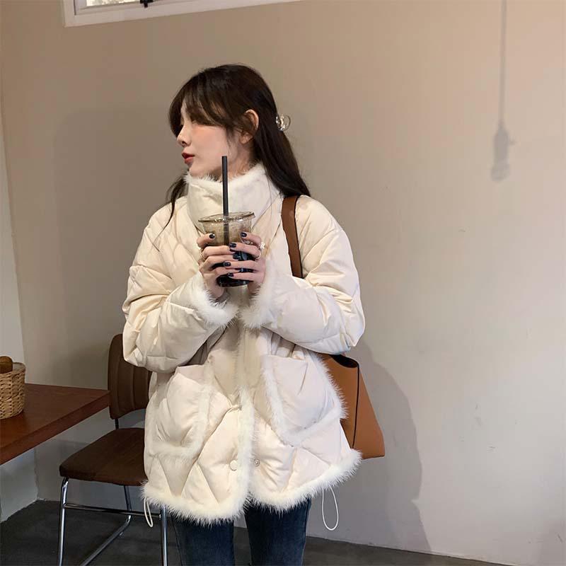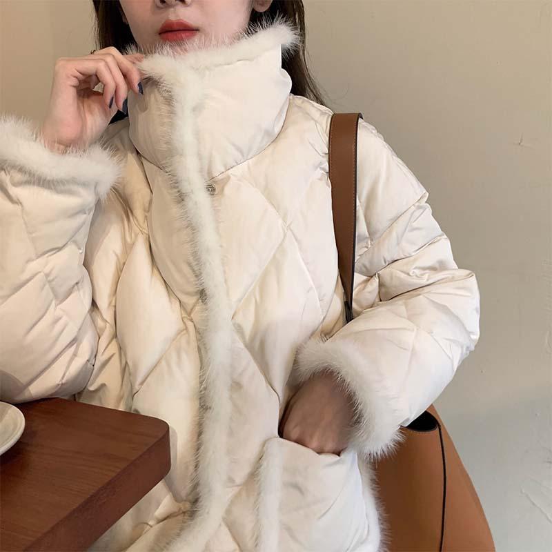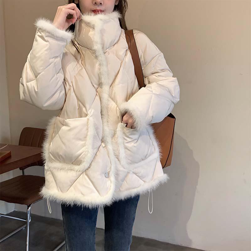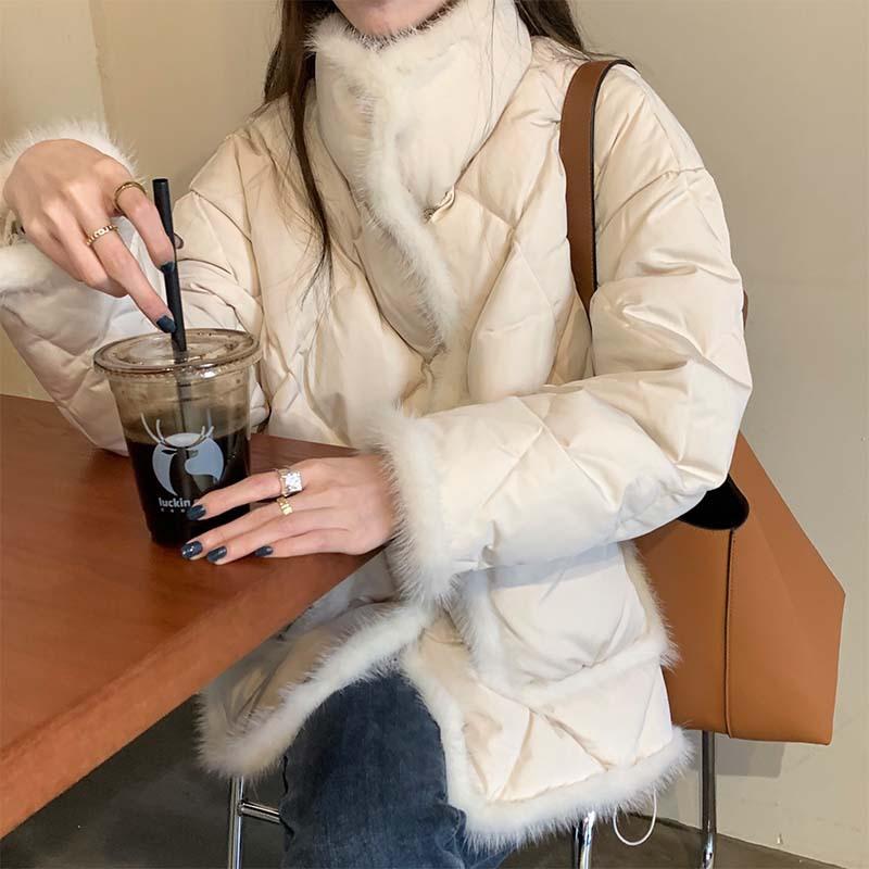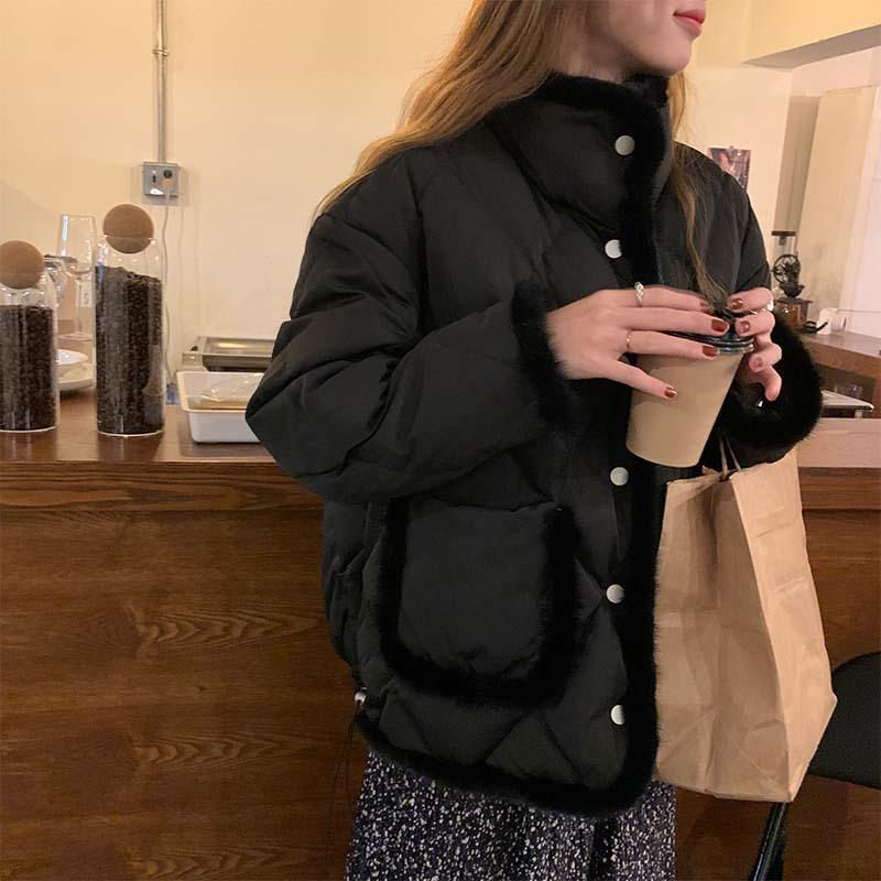 2023 Otoño e Invierno Nuevo Estilo Mink Parcheado Cuello de Piel Chaqueta de Algodón Acolchada para Mujer Cuello Alto Abrigo de Algodón Cálido Invierno