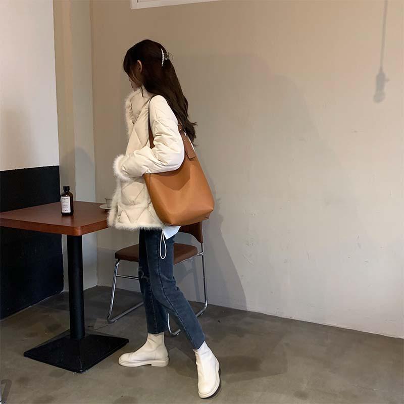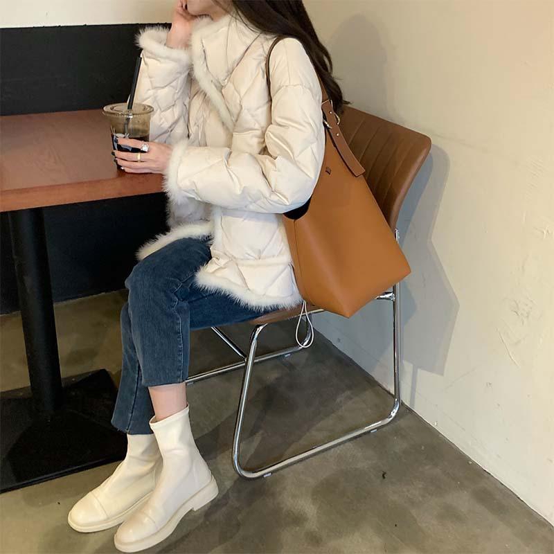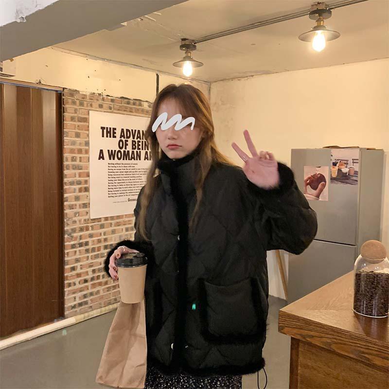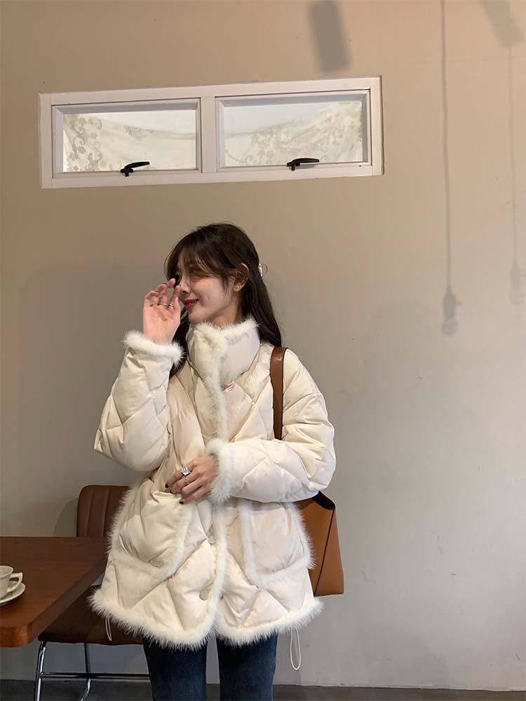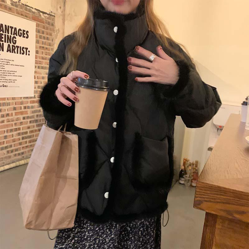 2023 Otoño e Invierno Nuevo Estilo Mink Parcheado Cuello de Piel Chaqueta de Algodón Acolchada para Mujer Cuello Alto Abrigo de Algodón Cálido Invierno