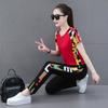 Traje deportivo de verano 2021 para mujer, con estampado de letras, manga corta, dos piezas, estilo occidental, ropa informal antiedad a la moda para mujer