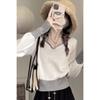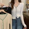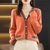 Nuevo Otoño e Invierno 2023 Estilo Coreano para Mujer Cuello en V Manga Larga Tejido de Algodón Mercerizado para Mujer Exterior Color Combinado Aguja