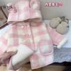 2025 Invierno Nuevo Estilo Algodón Espesado Lana Abrigo Exterior para Niñas Corto Doble Botonadura Lindo Estudiante Nizi Abrigo Exterior