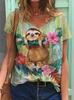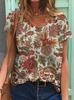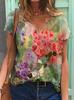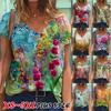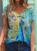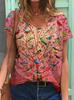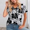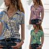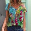 Camiseta holgada de manga corta de verano con cuello en V y estampado digital para mujer de Europa y América de Amazon.