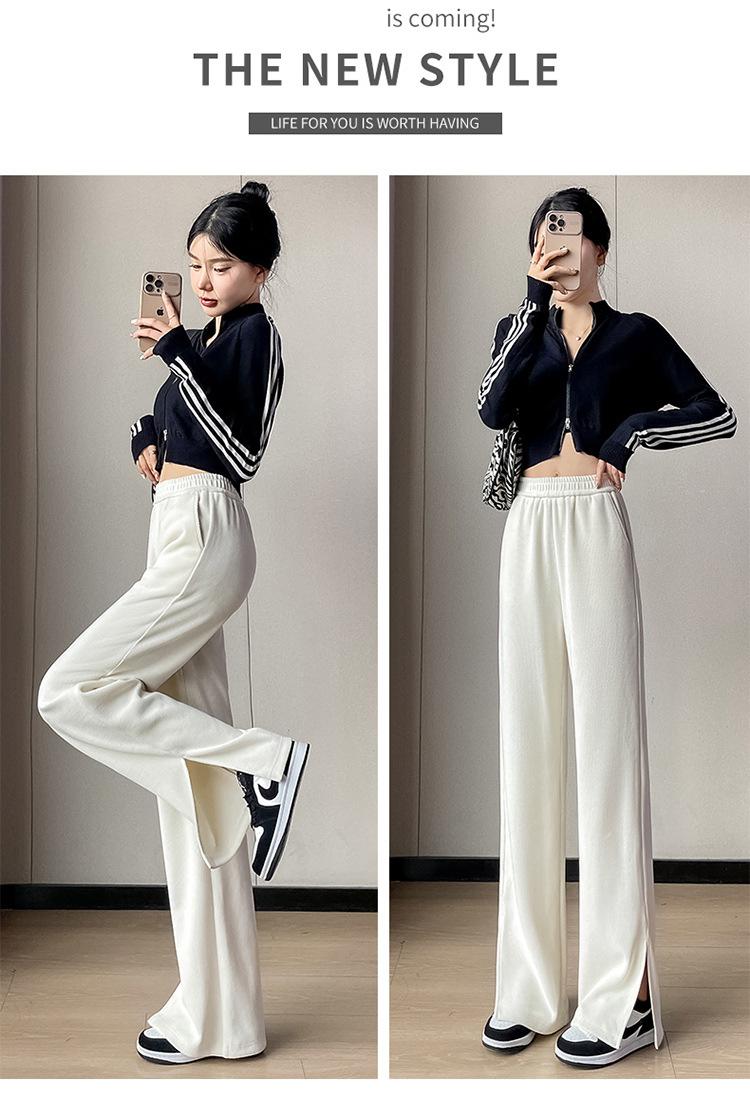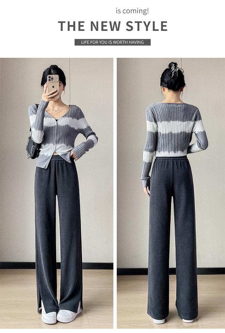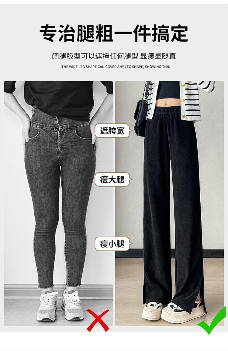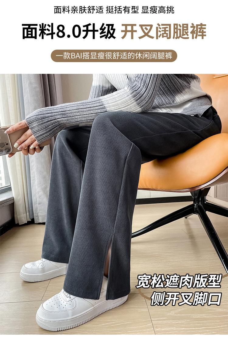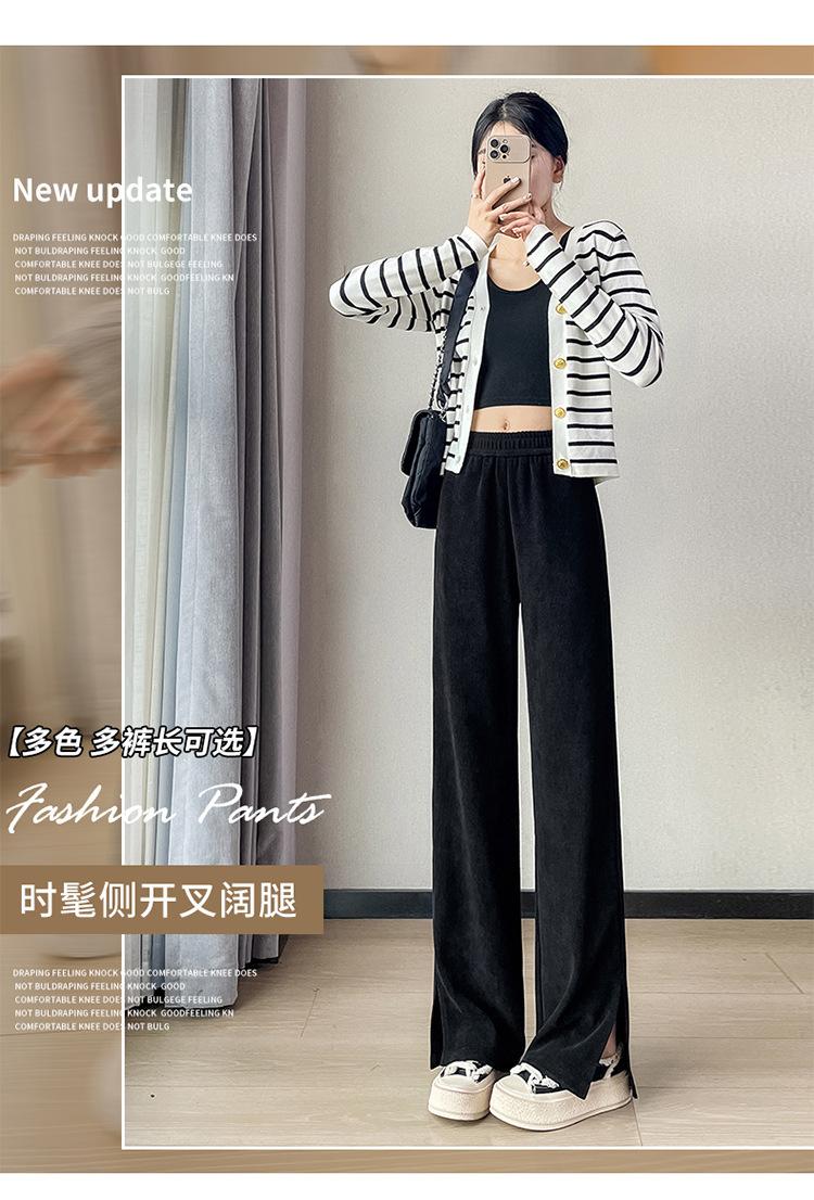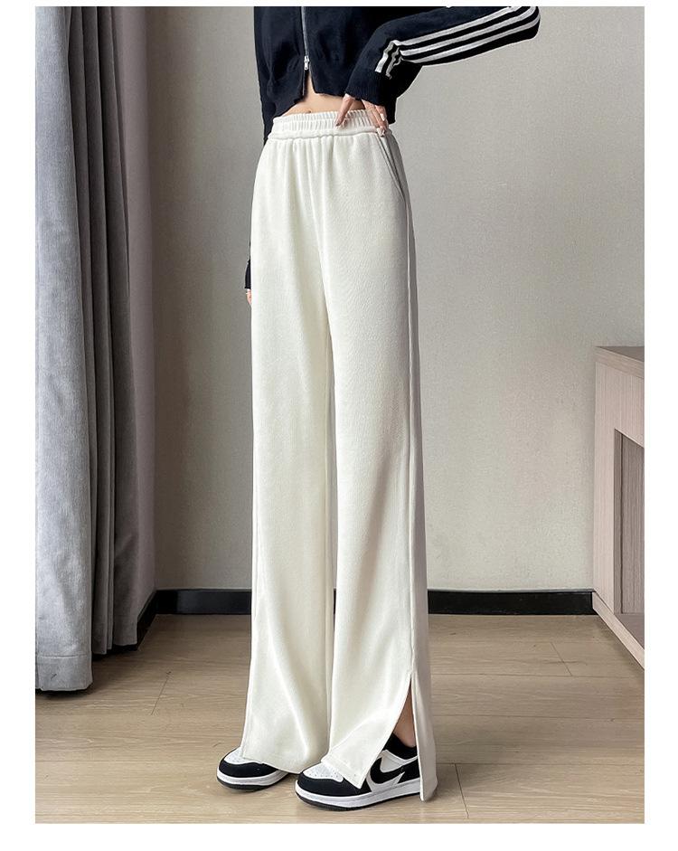 Pantalones de pierna ancha para mujer 2023 Otoño Nuevo Cintura alta drapeado abertura pequeño perezoso casual rectos tipo mopa