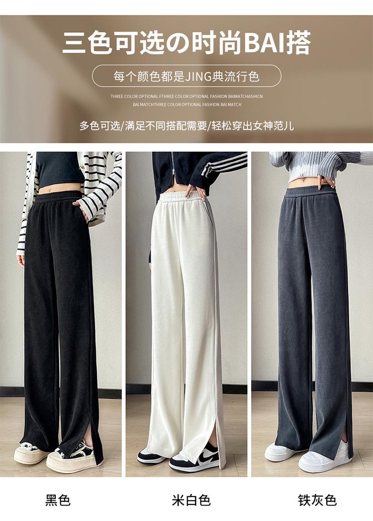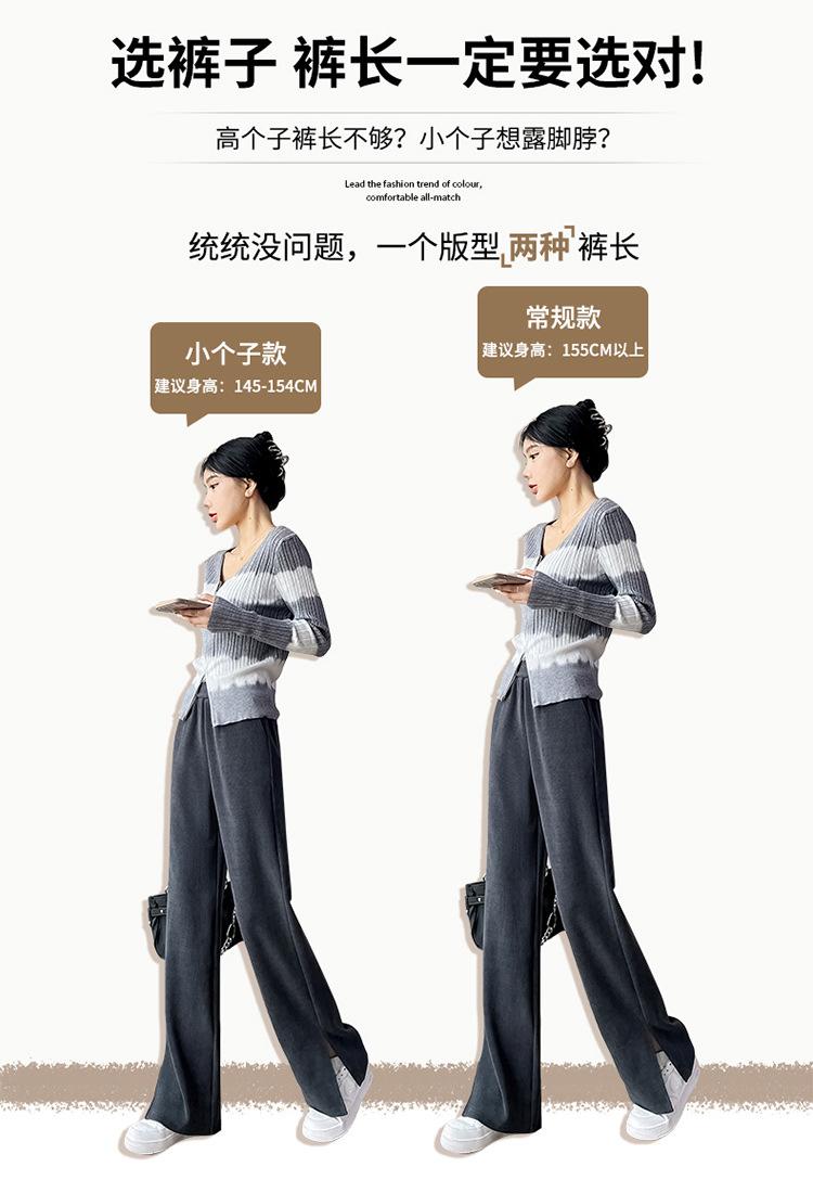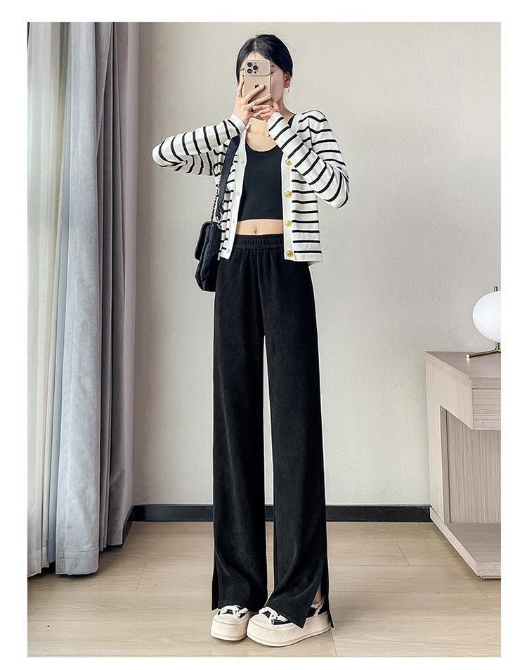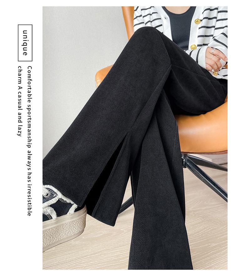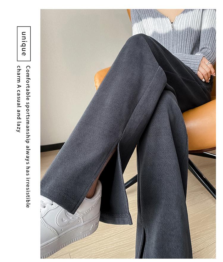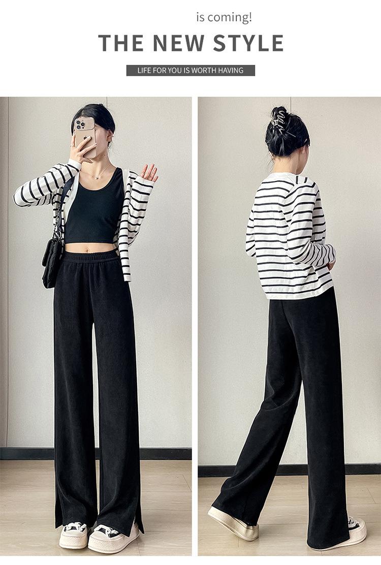 Pantalones de pierna ancha para mujer 2023 Otoño Nuevo Cintura alta drapeado abertura pequeño perezoso casual rectos tipo mopa