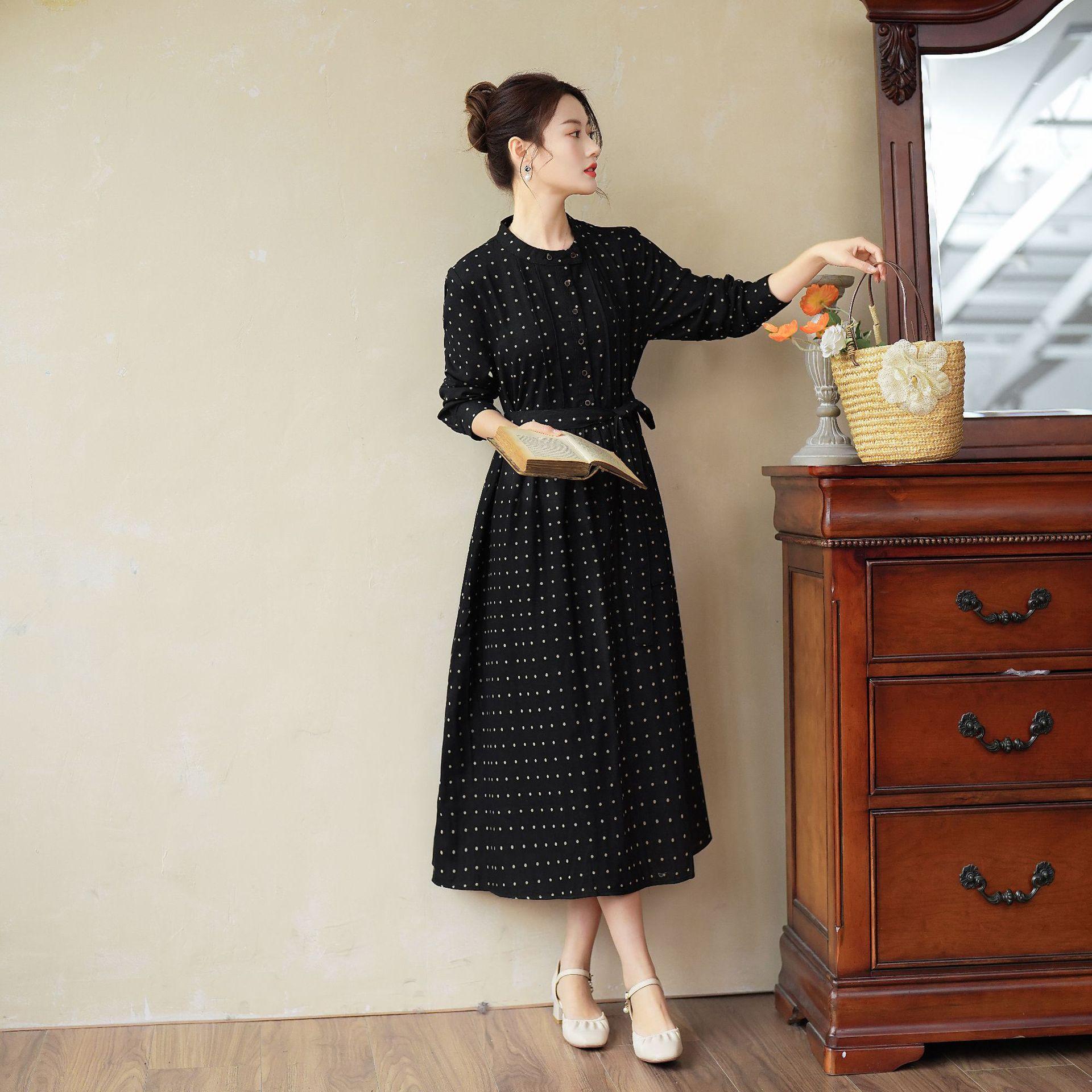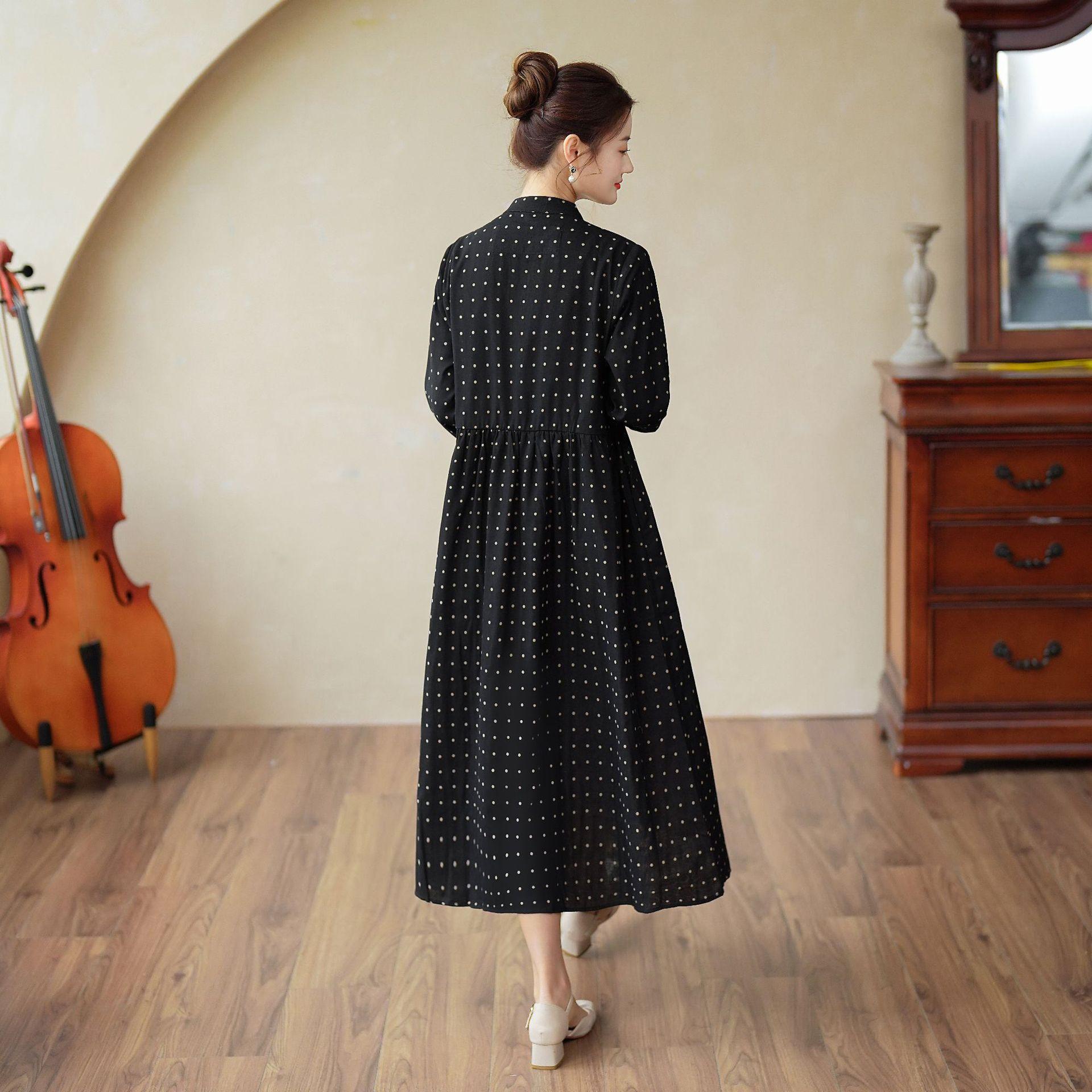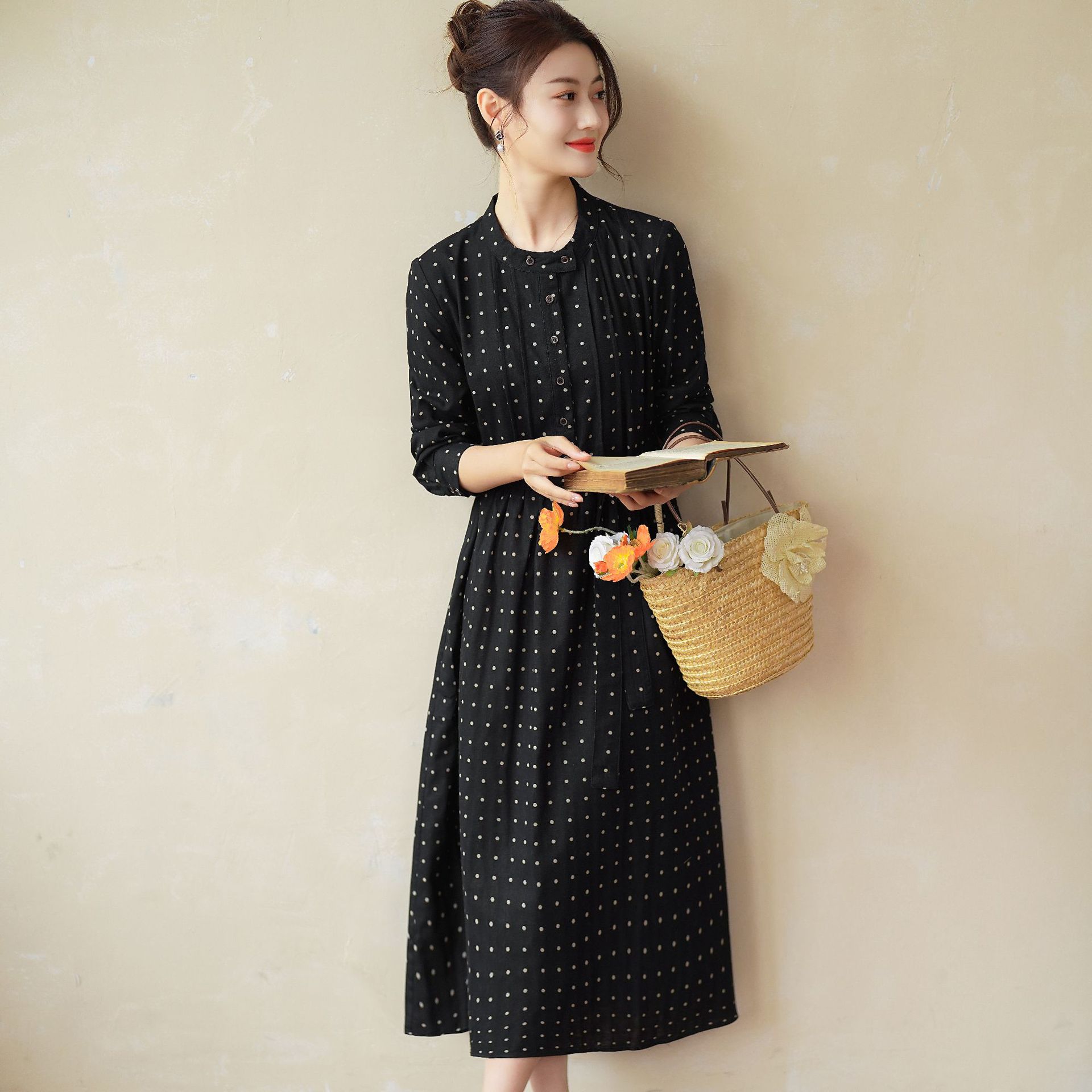 Primavera 2025 Nuevo Algodón y Lino Estampado de Lunares Fresco Adelgazante Suelto Línea A Vestido Versátil