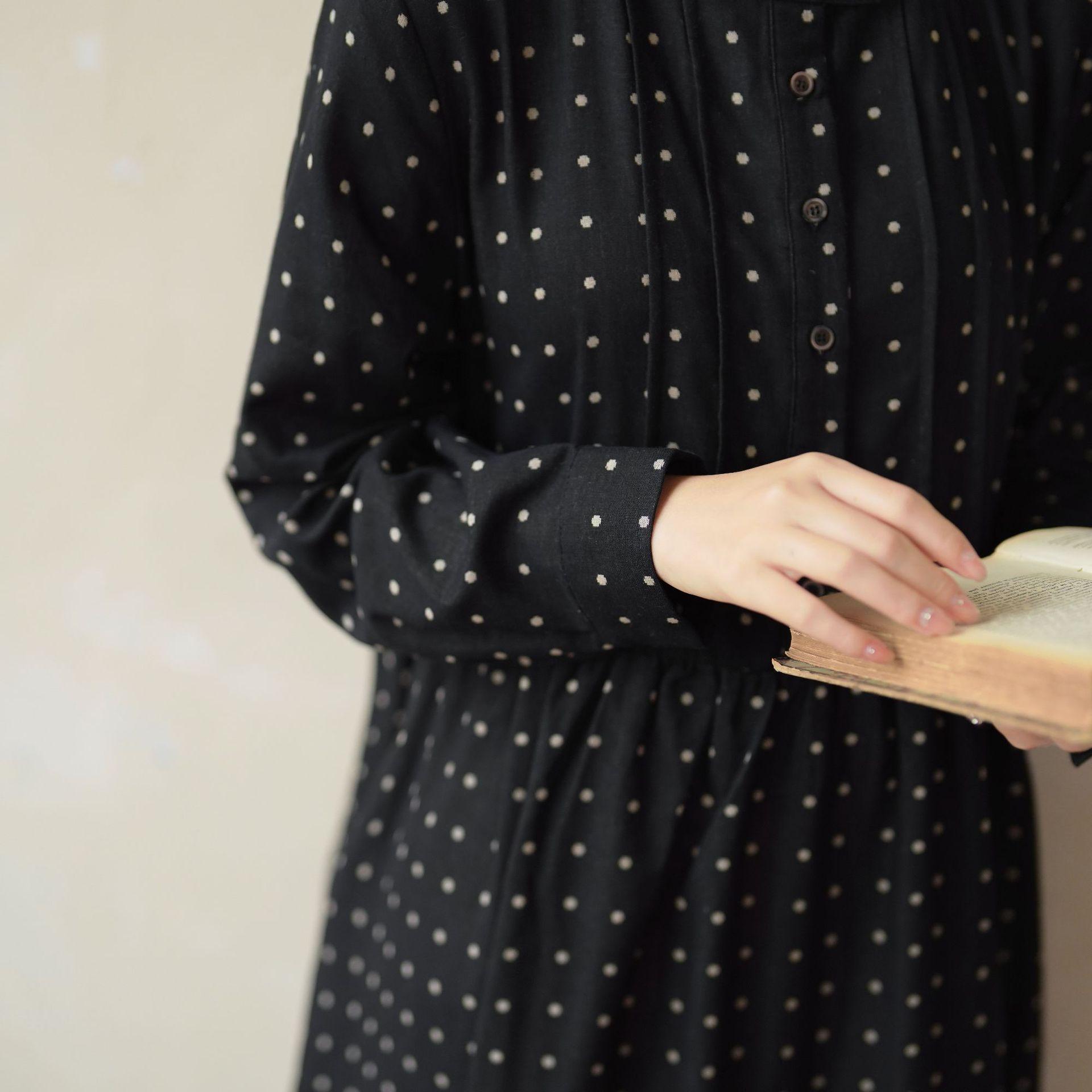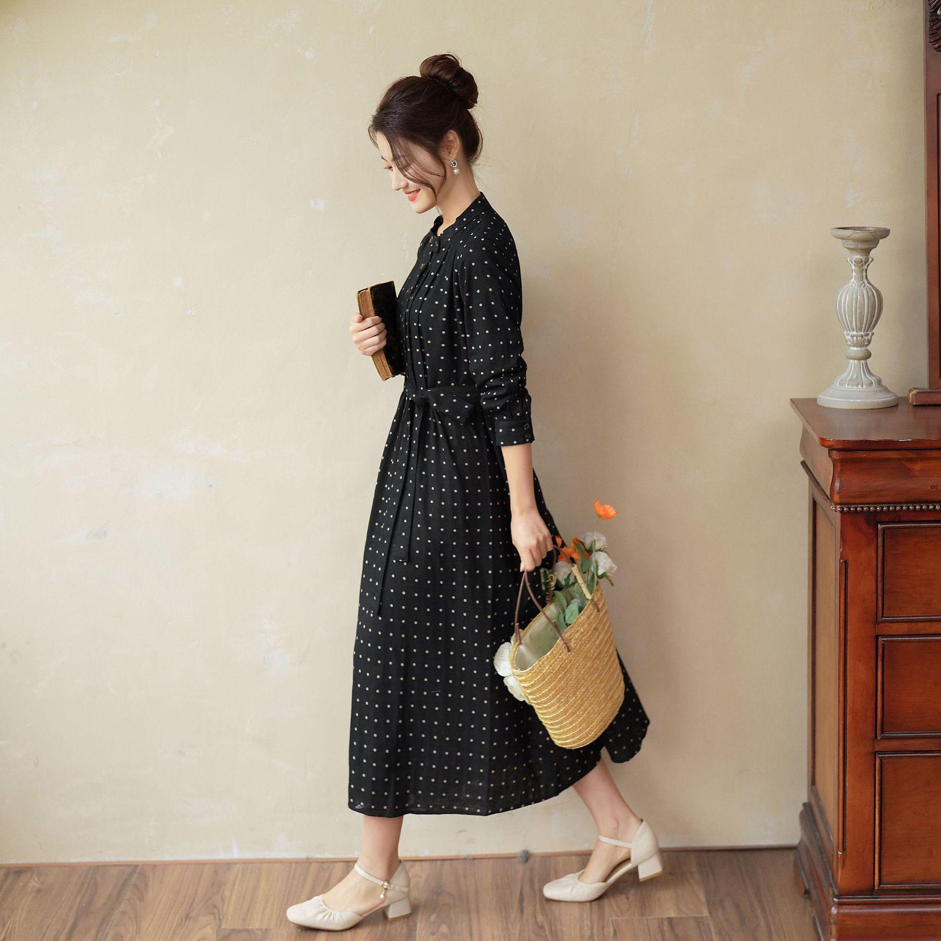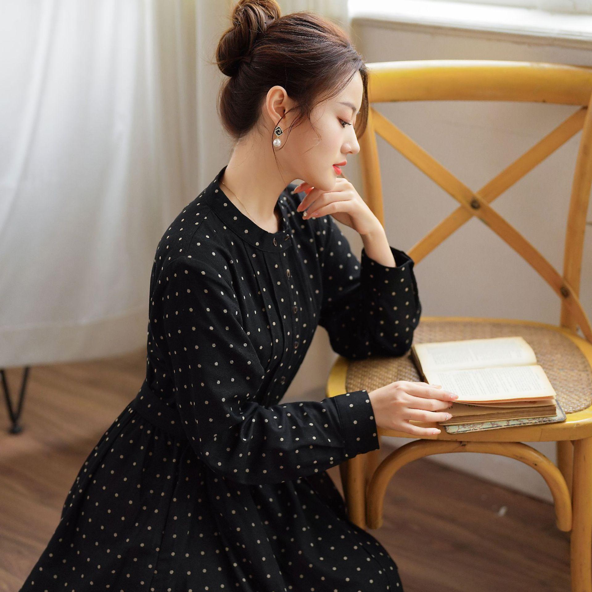 Primavera 2025 Nuevo Algodón y Lino Estampado de Lunares Fresco Adelgazante Suelto Línea A Vestido Versátil