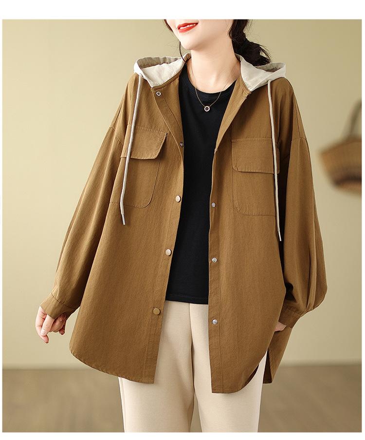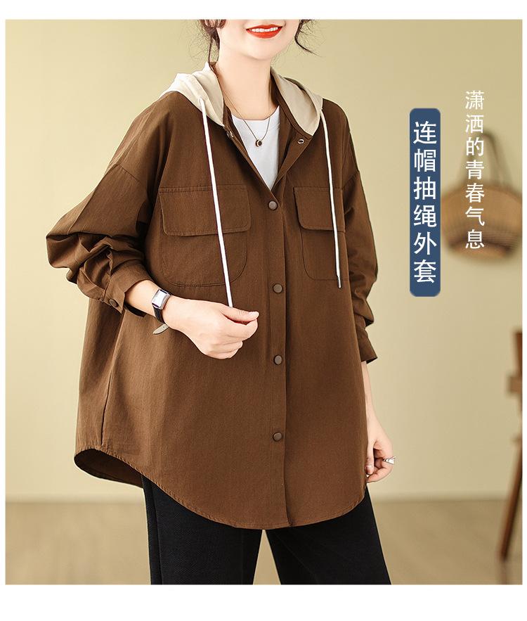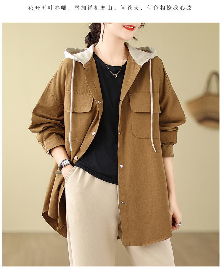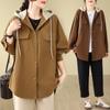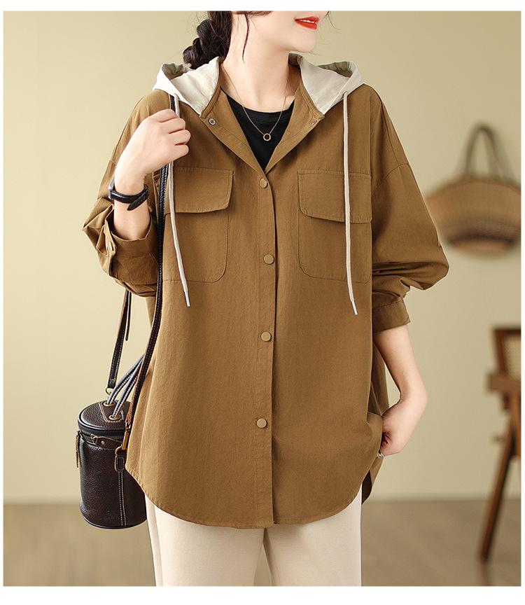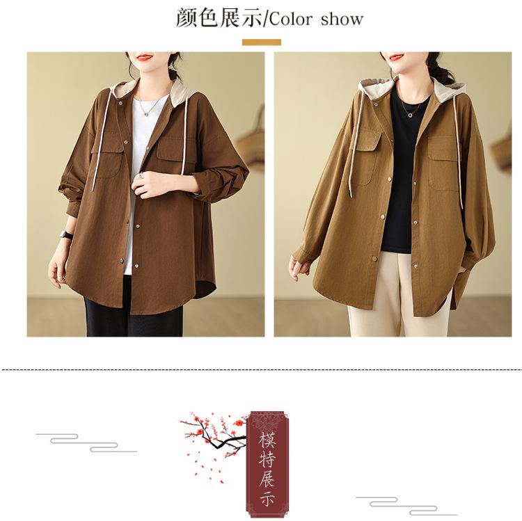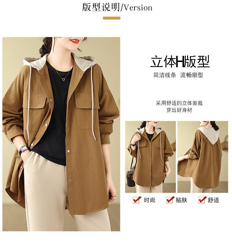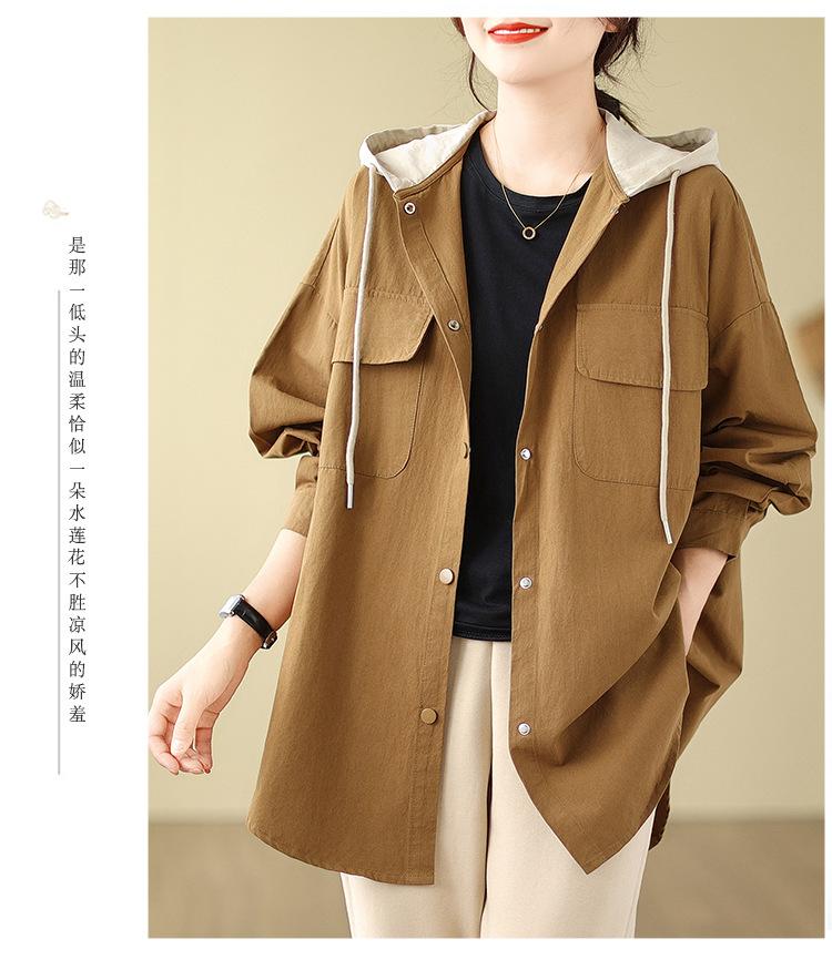 Camisa cortavientos con capucha informal de tiro real 2023, abrigo para mujer, holgado, de talla grande, de longitud media, estilo coreano 2023