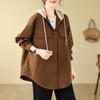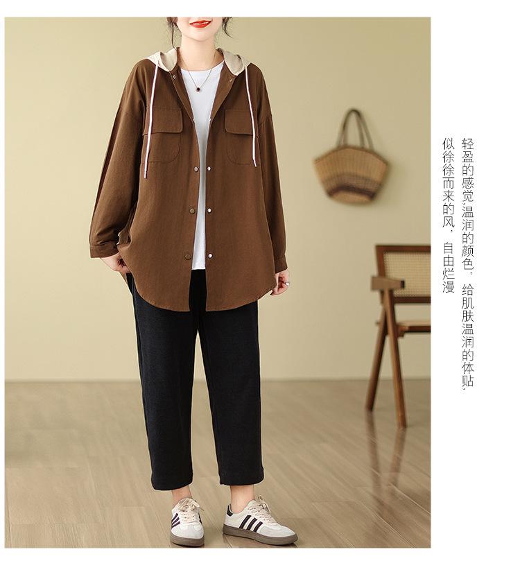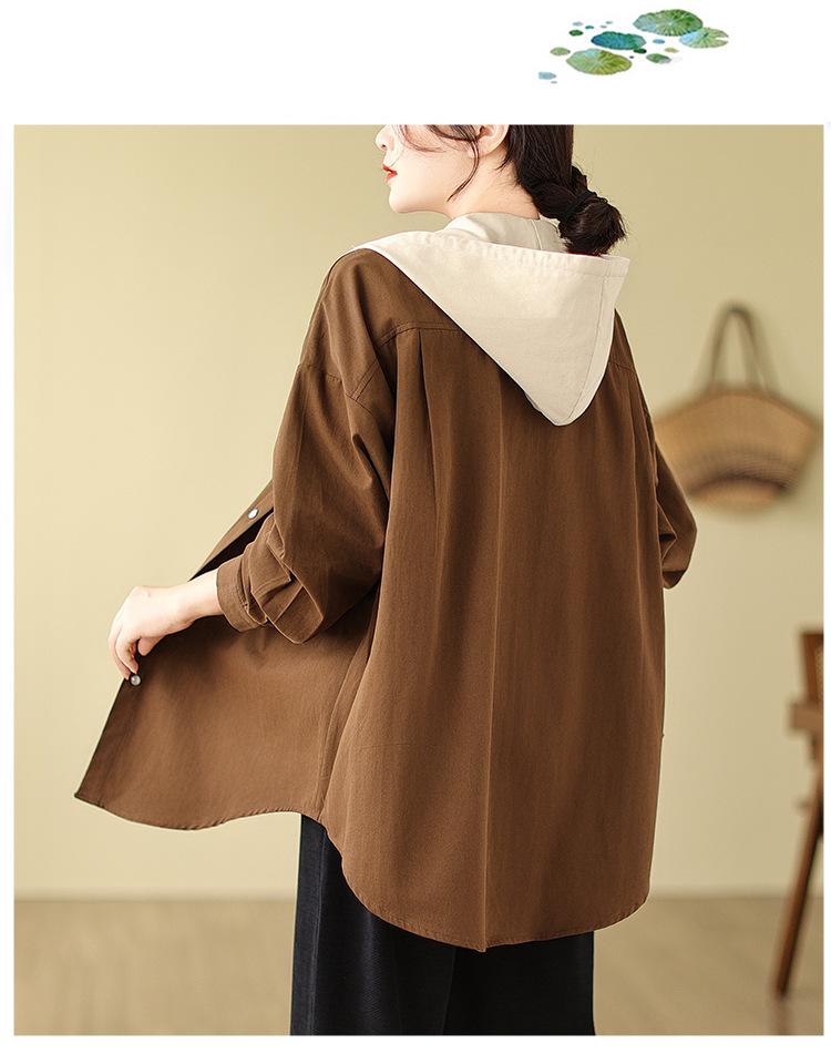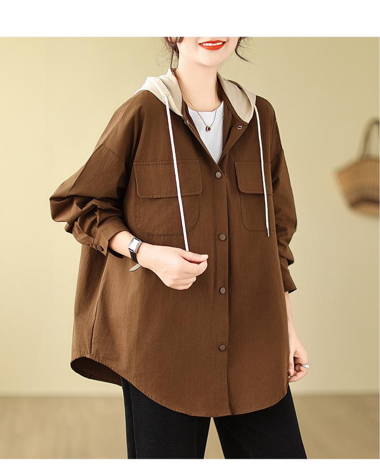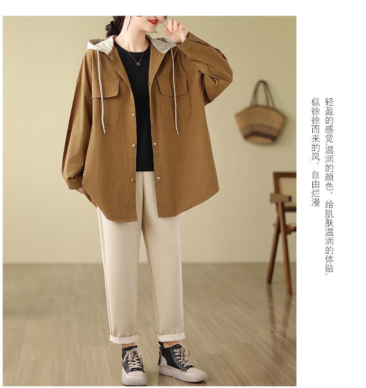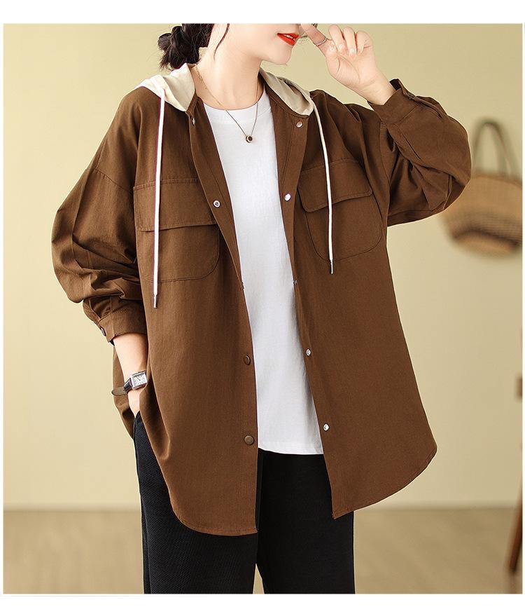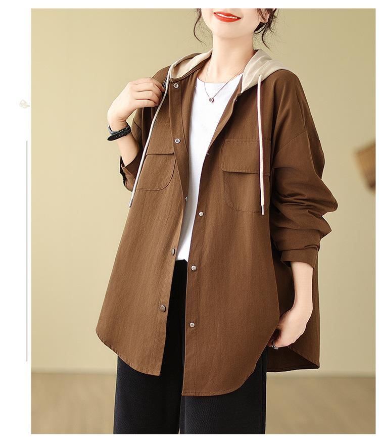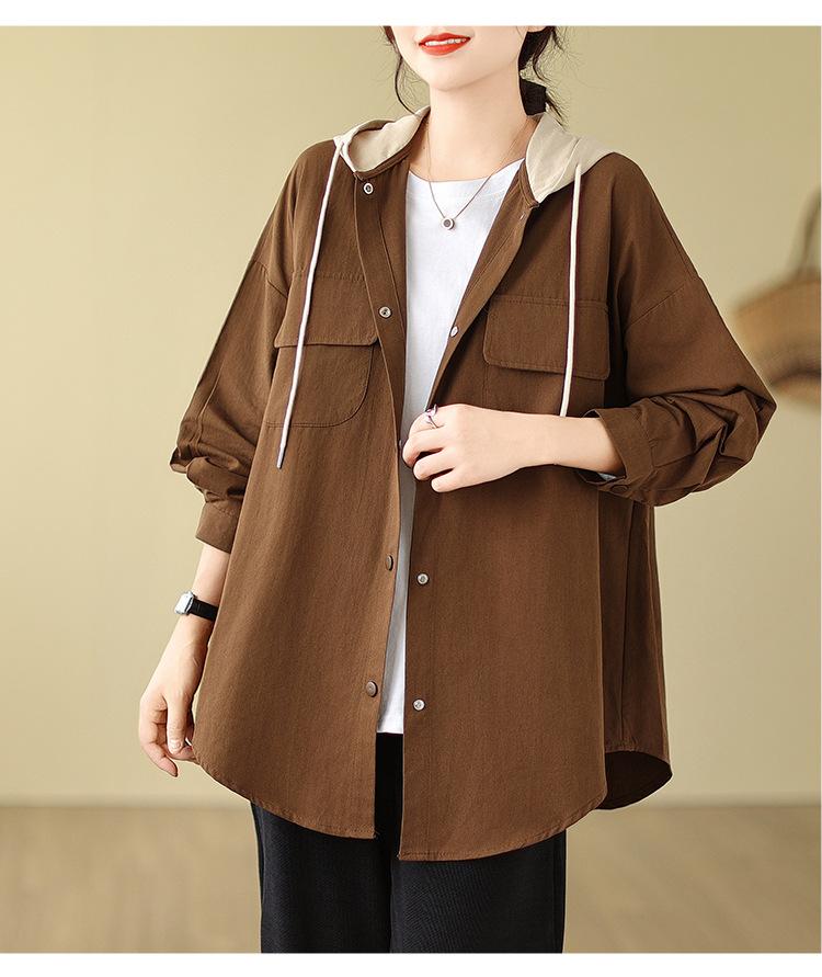 Camisa cortavientos con capucha informal de tiro real 2023, abrigo para mujer, holgado, de talla grande, de longitud media, estilo coreano 2023
