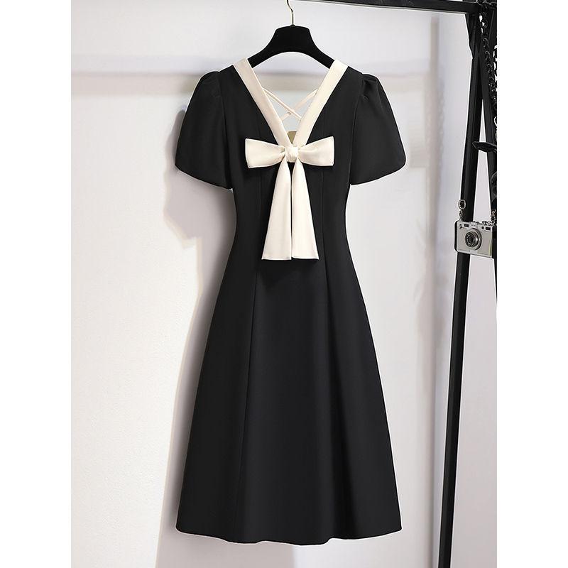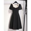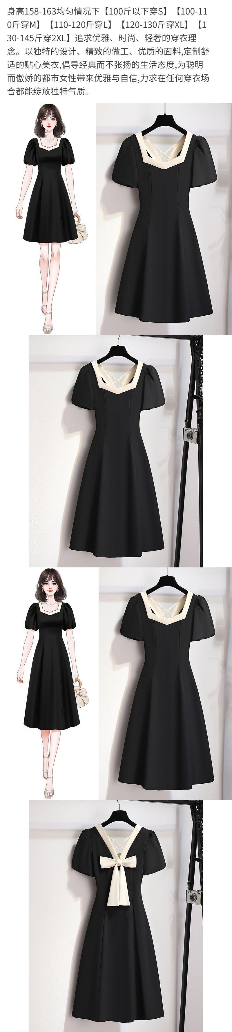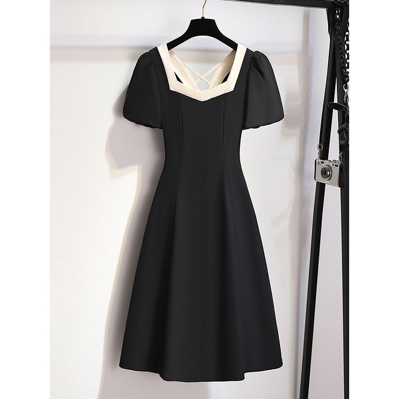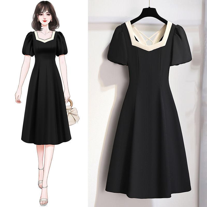 Vestido de mujer estilo Hepburn blanco y negro, nuevo estilo de verano, elegante vestido negro pequeño estilo francés con cuello cuadrado para cubrir el vientre.