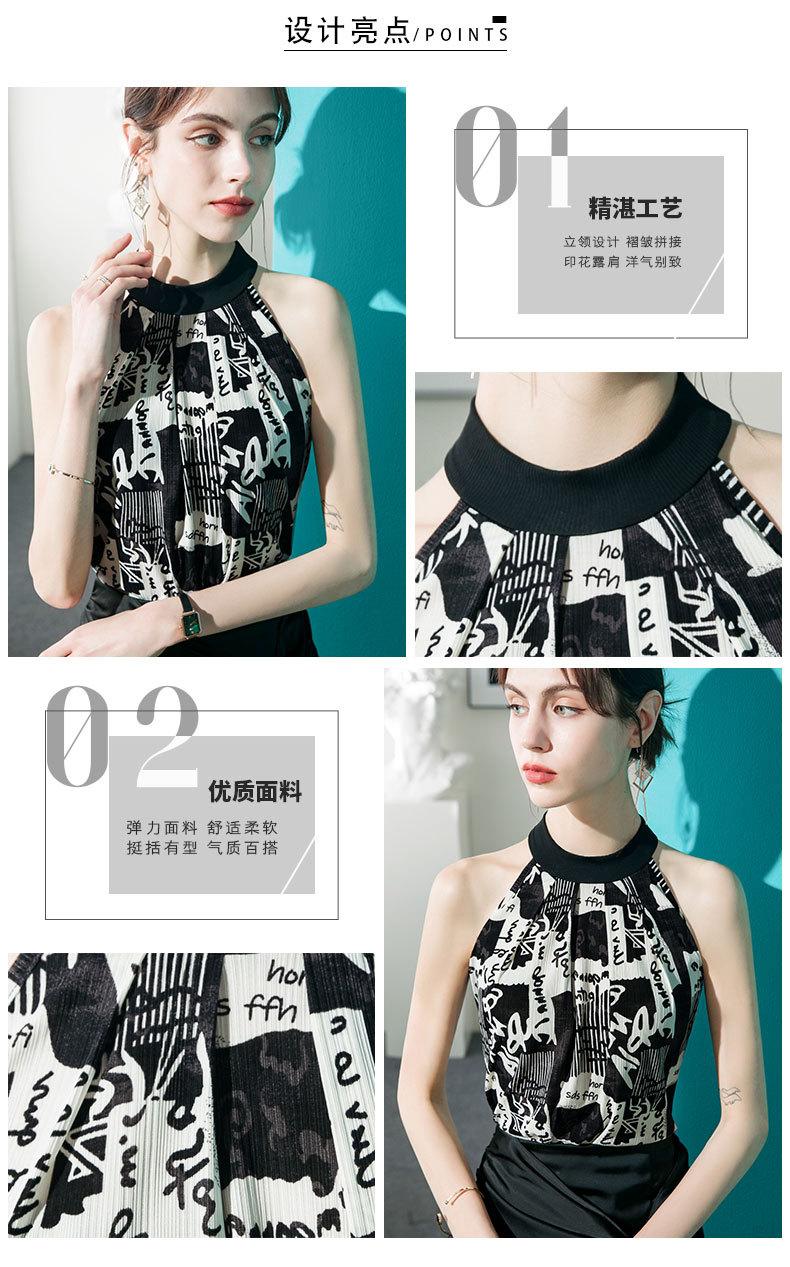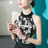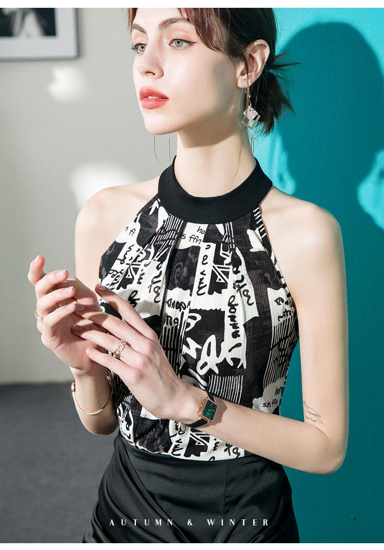 Chaleco de mujer con hombros descubiertos y estampado sexy, estilo occidental, corte entallado, elegante top sin mangas de estilo occidental para primavera y otoño 2023