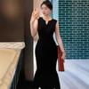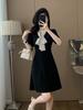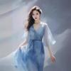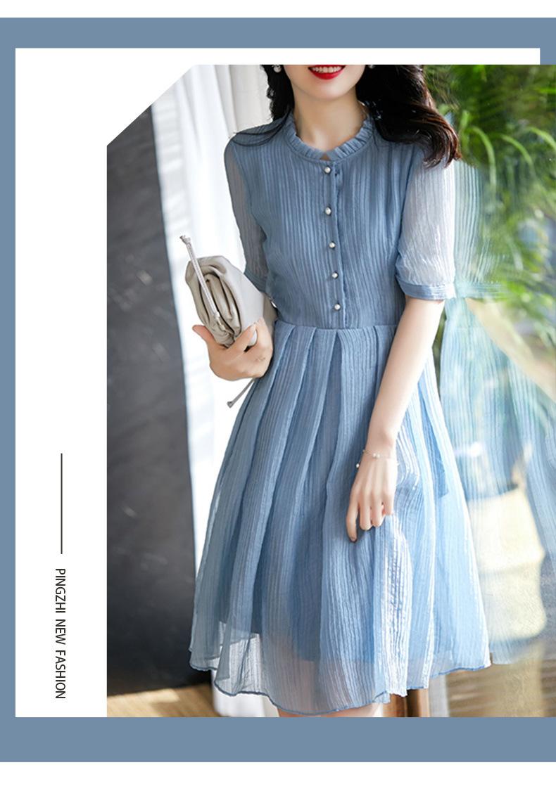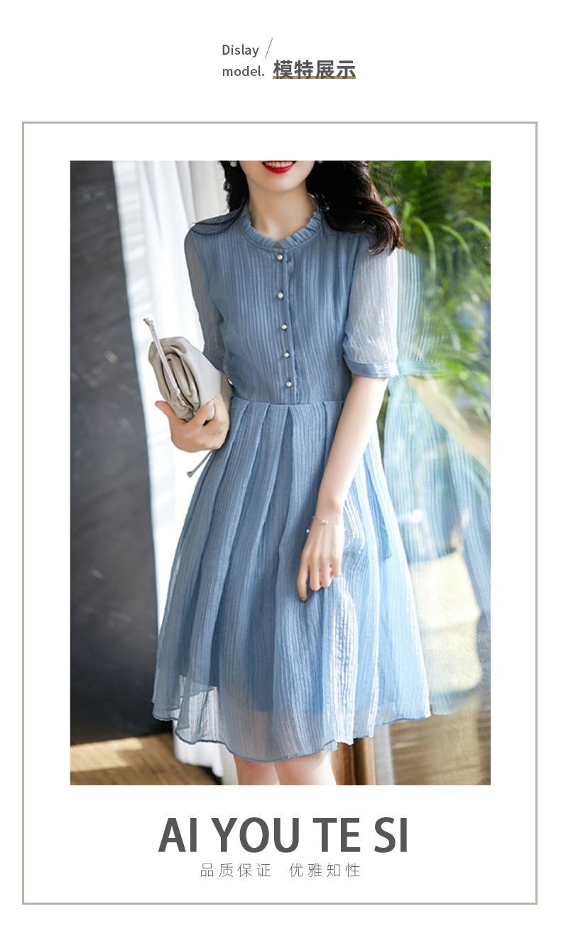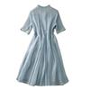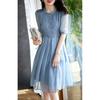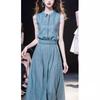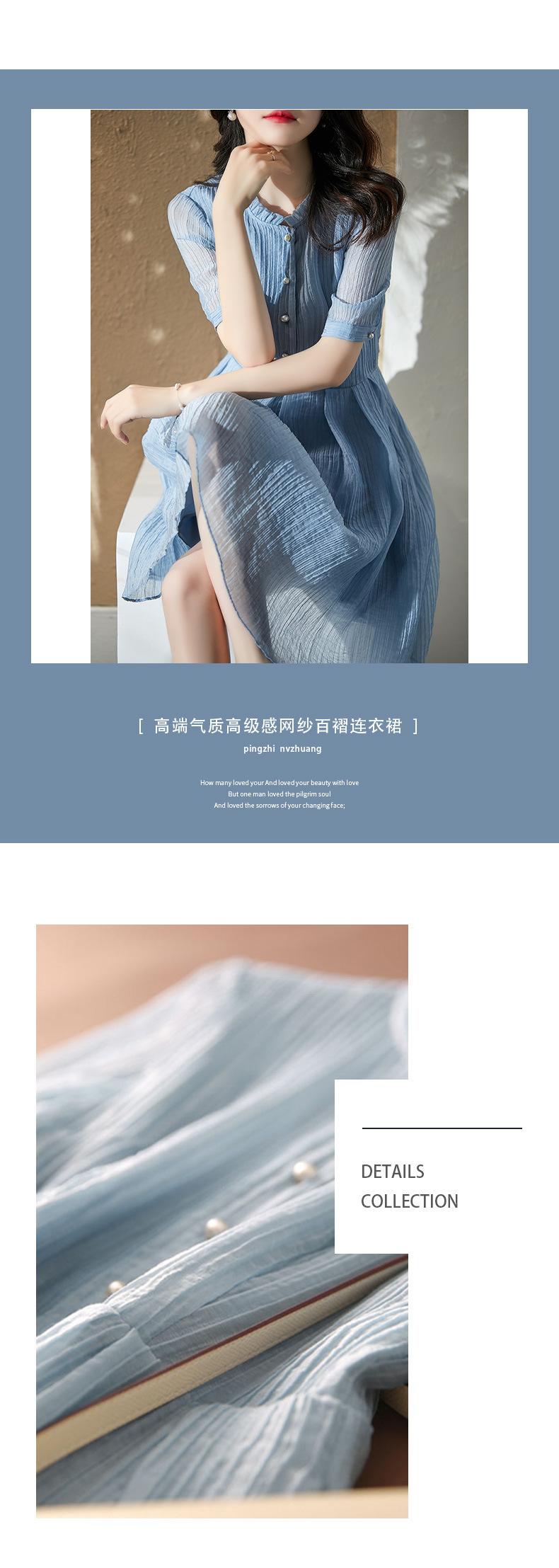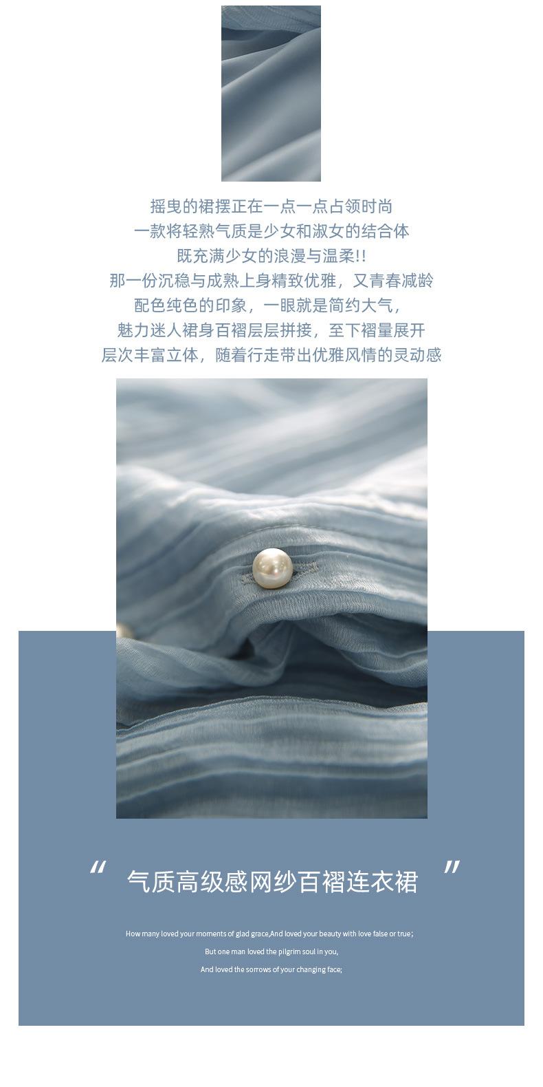 Falda plisada de malla de alta gama, Vestido azul elegante con clase, Estilo francés de verano para mujer 2025 de largo medio