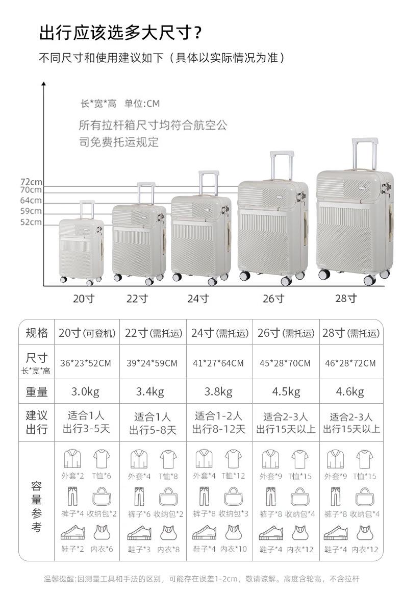 Maleta de Apertura Frontal para Mujer de 20 pulgadas Multifunción Caja de Cabina Caja con Contraseña Rueda Universal Maleta de Gran Capacidad Envío Gratis