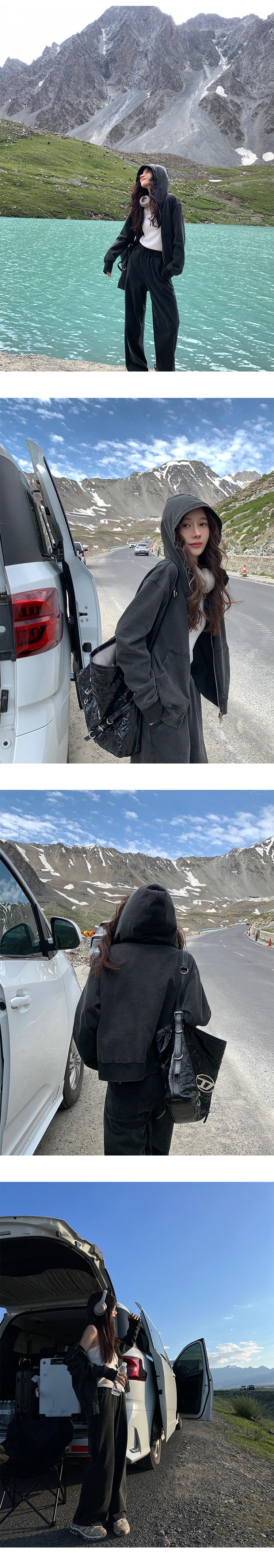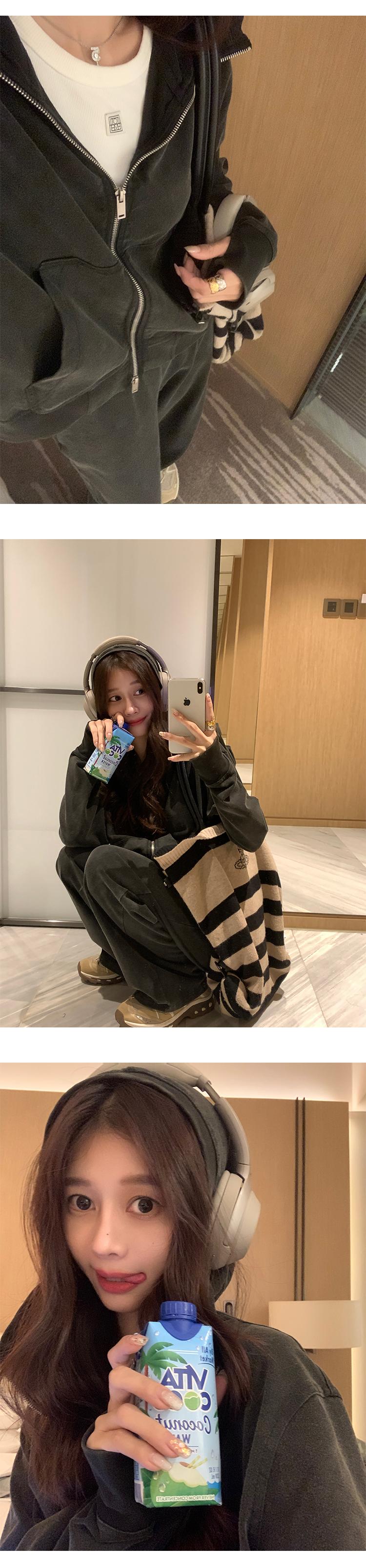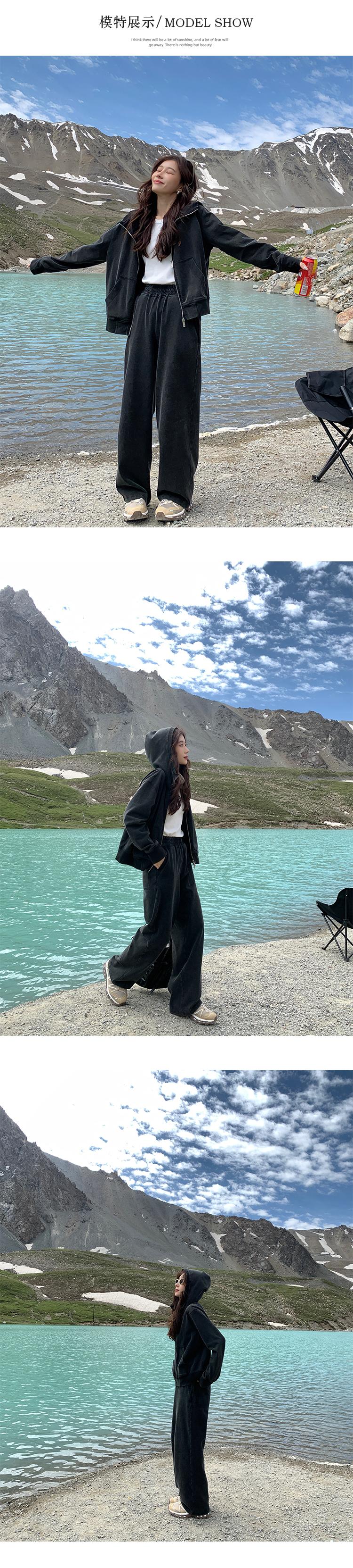 Traje de Otoño Besview Sudadera con Capucha y Cremallera para Mujer + Pantalones Rectos de Cintura Alta Conjunto de Dos Piezas Moda Casual para Mujer