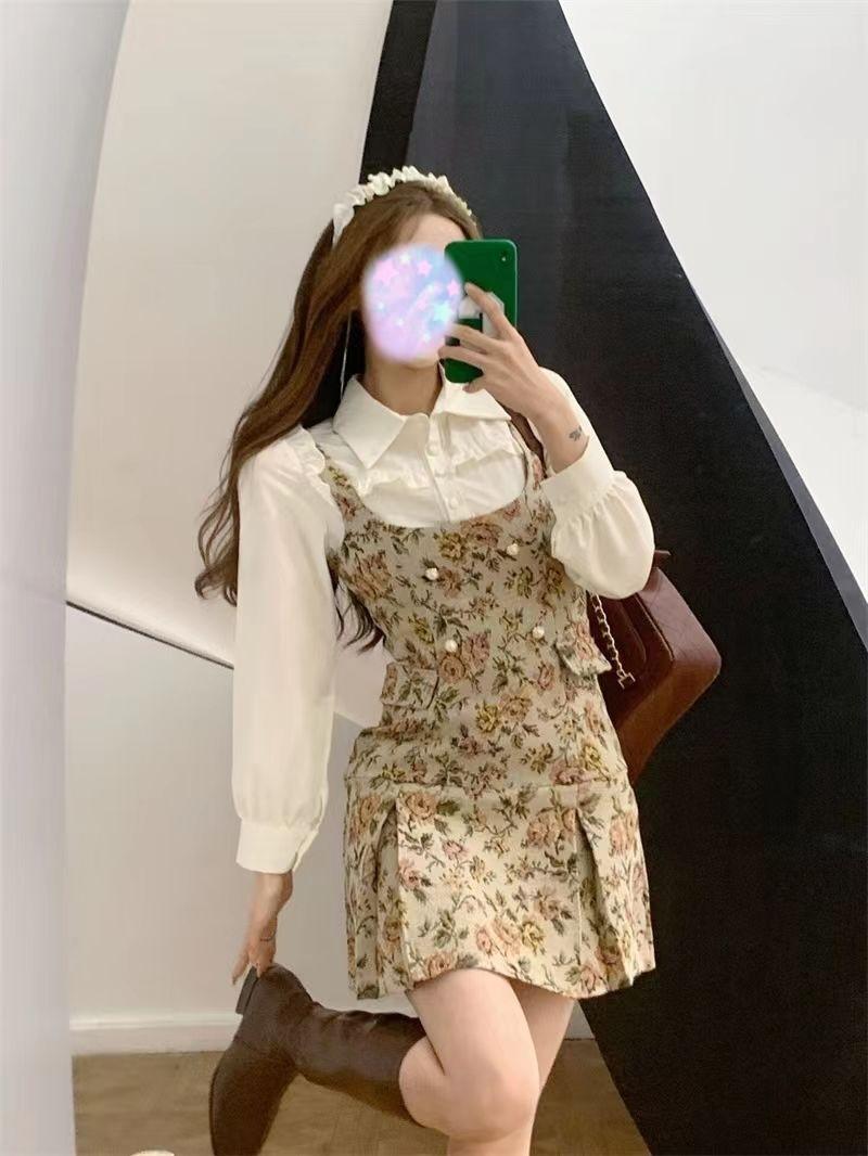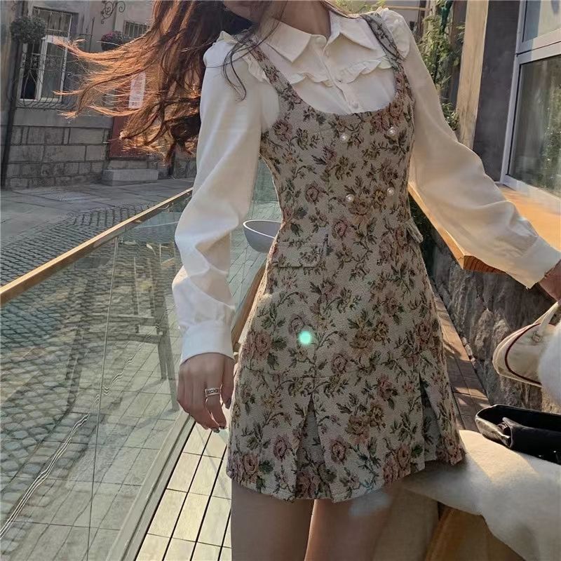 Floral Dress, Apricot Shirt, Floral Dress + Apricot Shirt