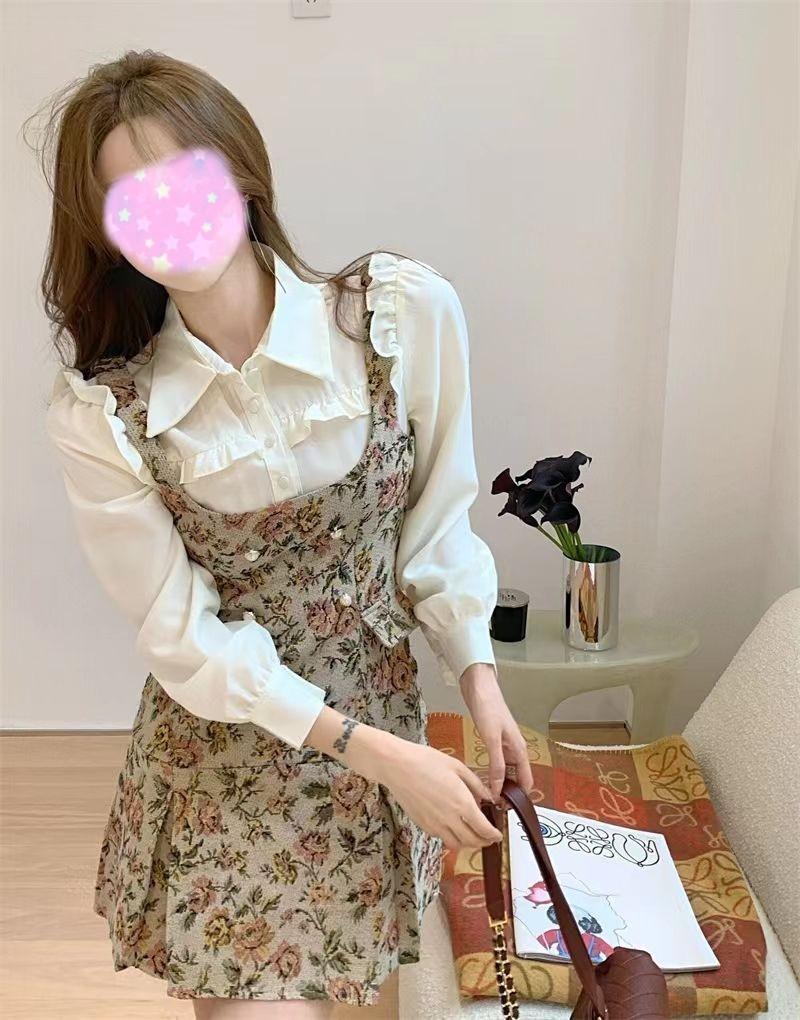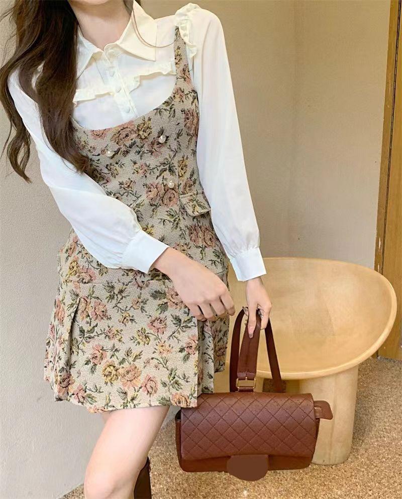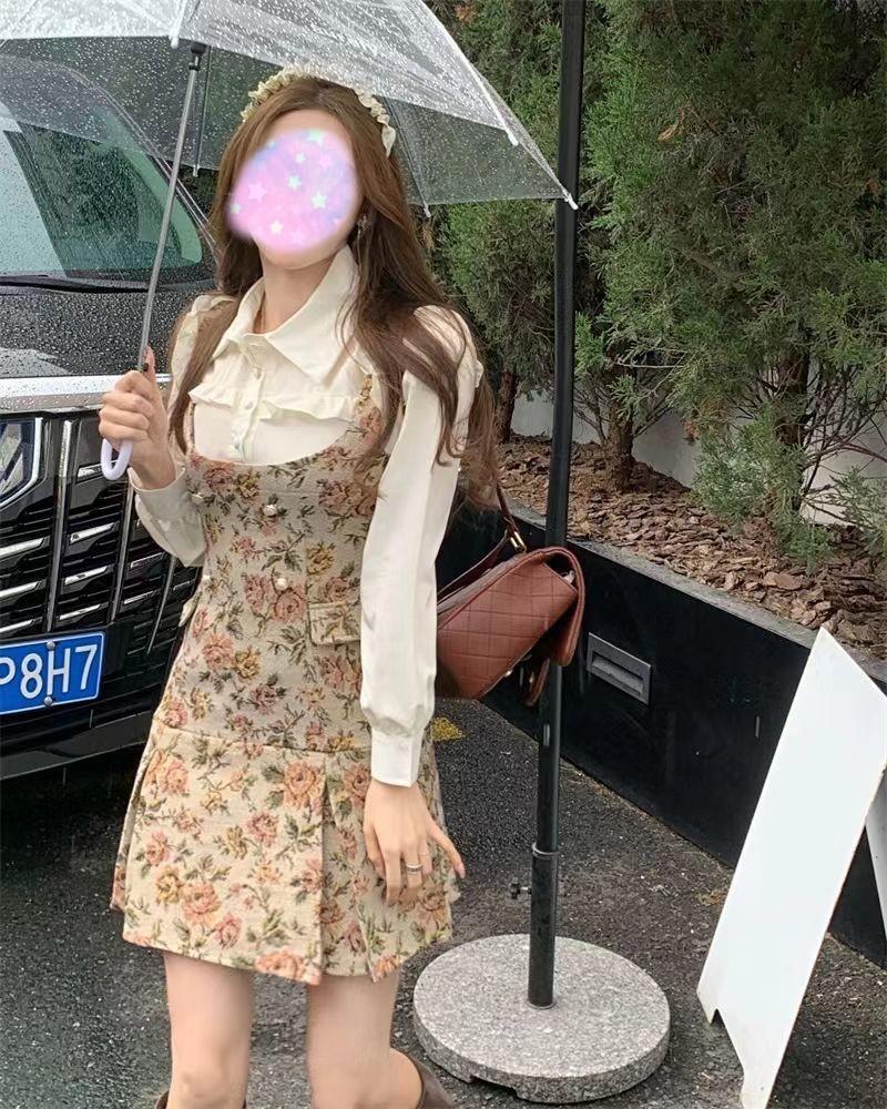 2025 Otoño e Invierno Camisa de Vestir Jacquard Floral de Alta Gama de Fragancia Pequeña Falda Floral Traje de Moda Retro de Dos Piezas