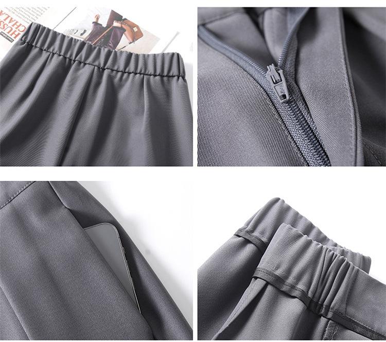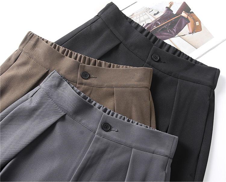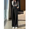 Pantalones grises de pierna ancha para mujer, estilo nuevo, cintura alta, bai, delgados, pequeños, pantalones de traje largos hasta el piso