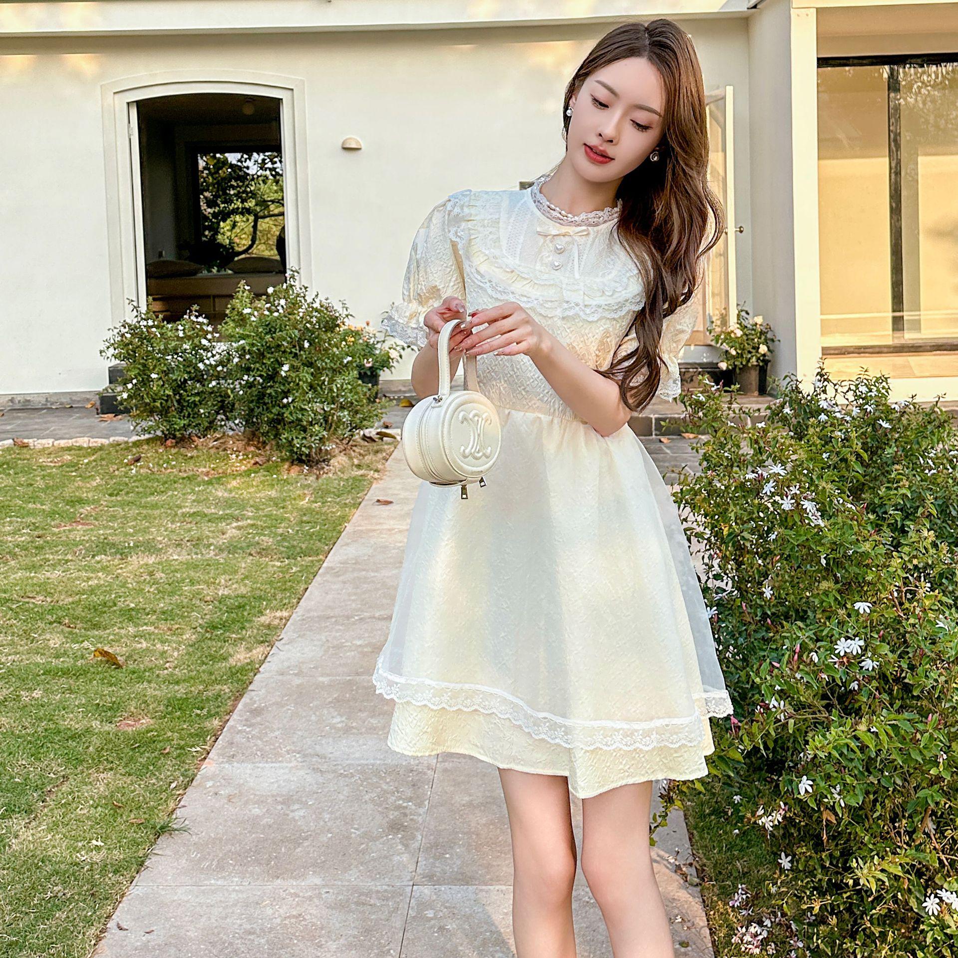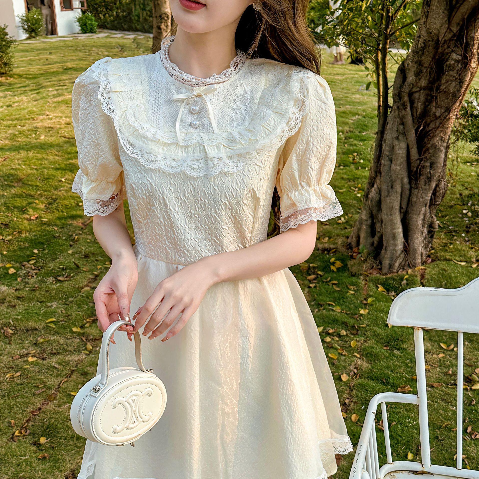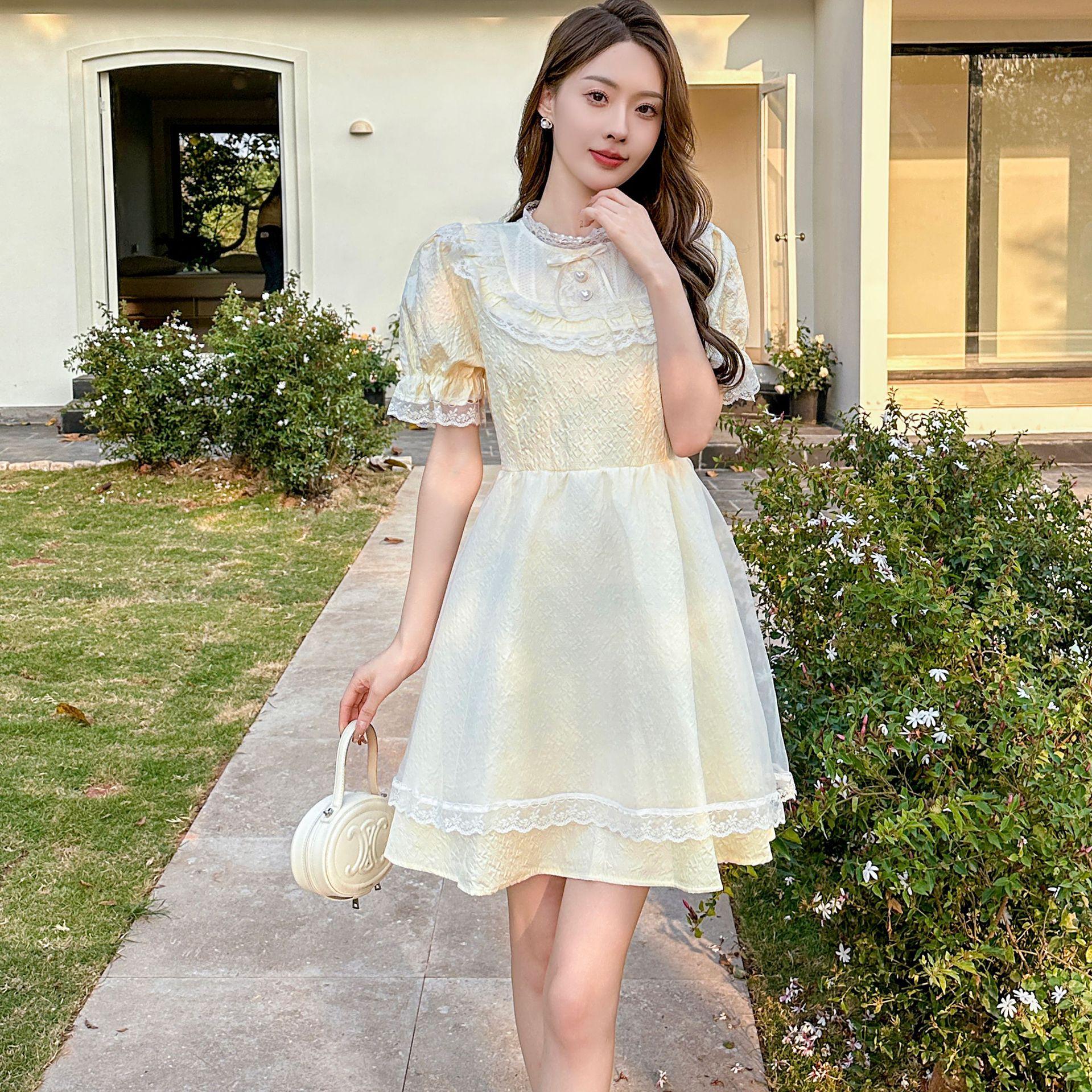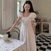 Vestido de Manga Abullonada Dulce Estilo Francés para Mujer Verano Elegante de Alta Gama Falda Tutú de Princesa Cintura Falda Corta
