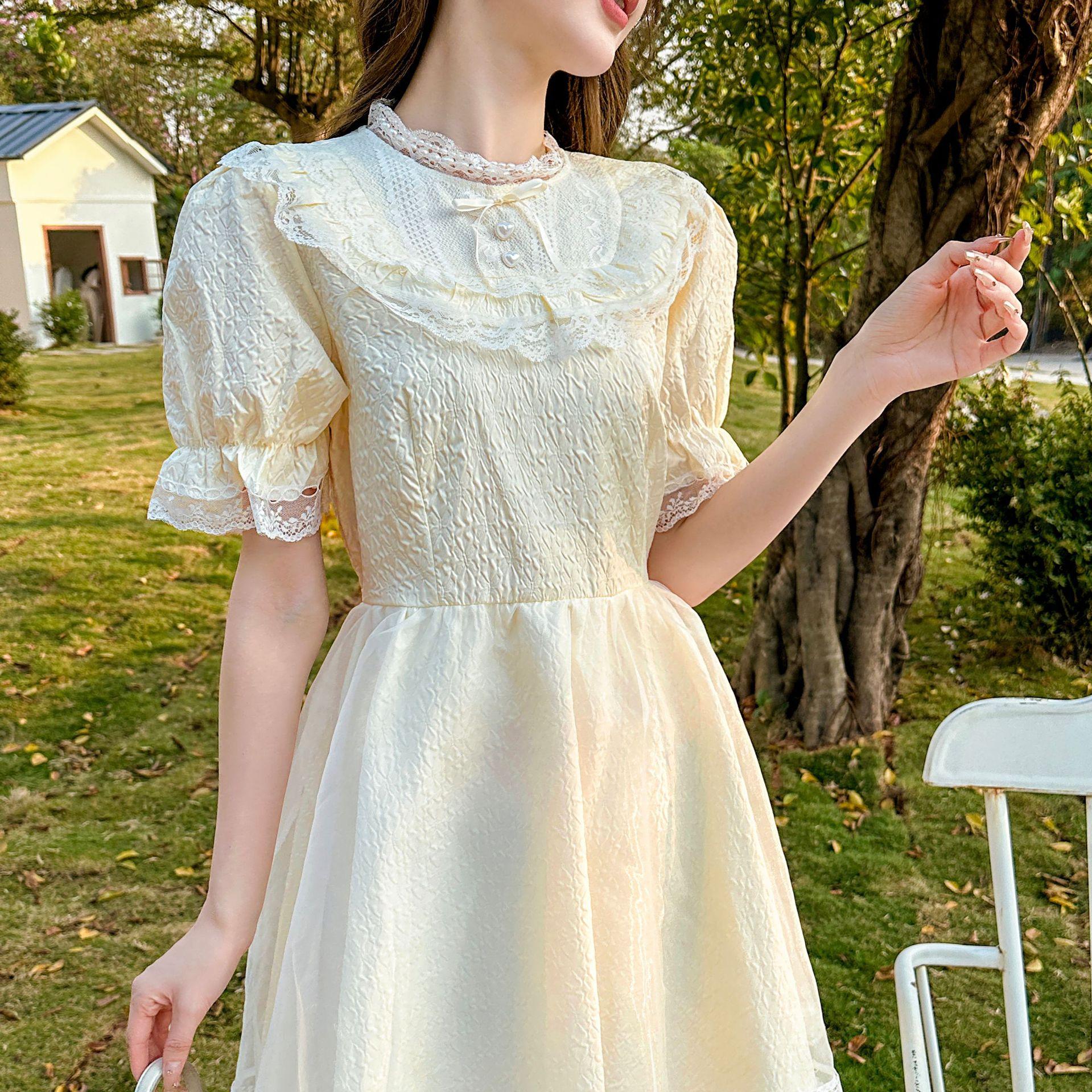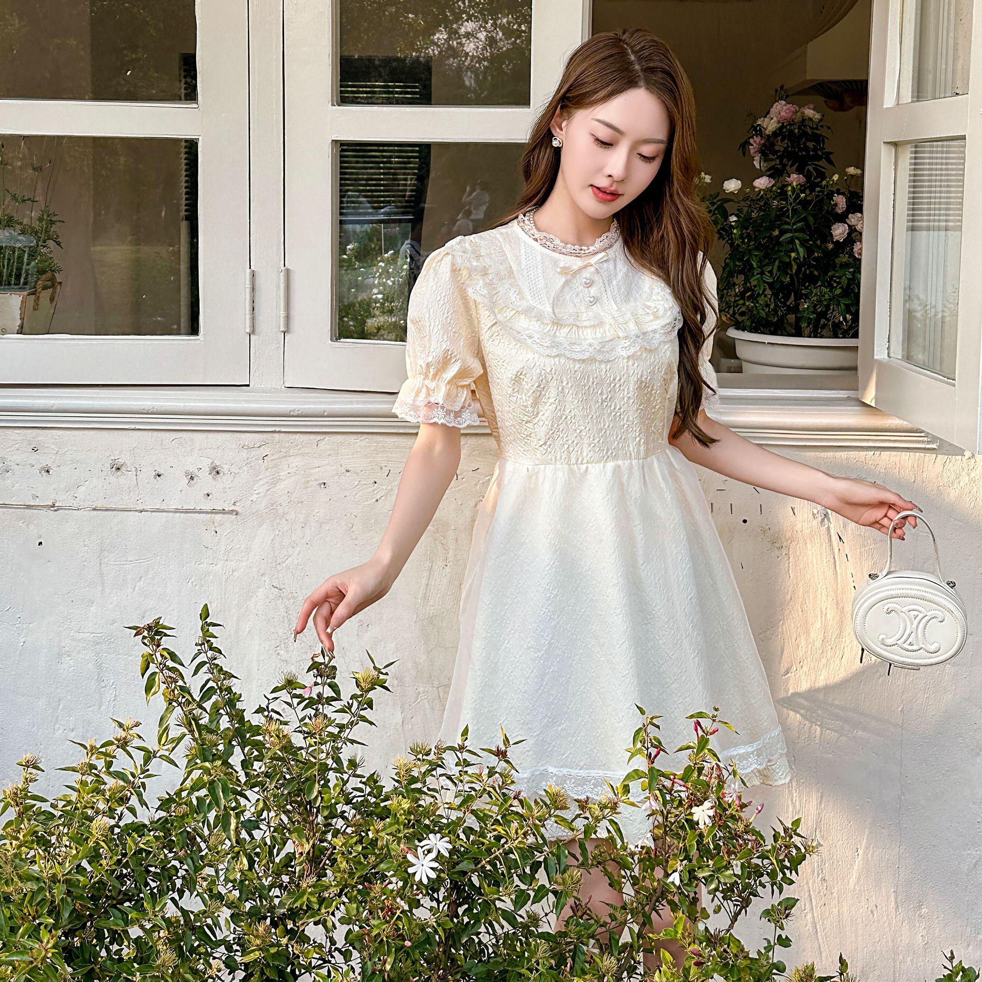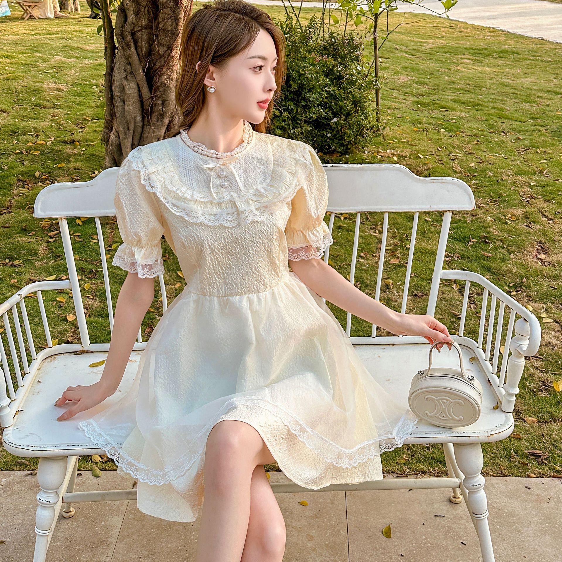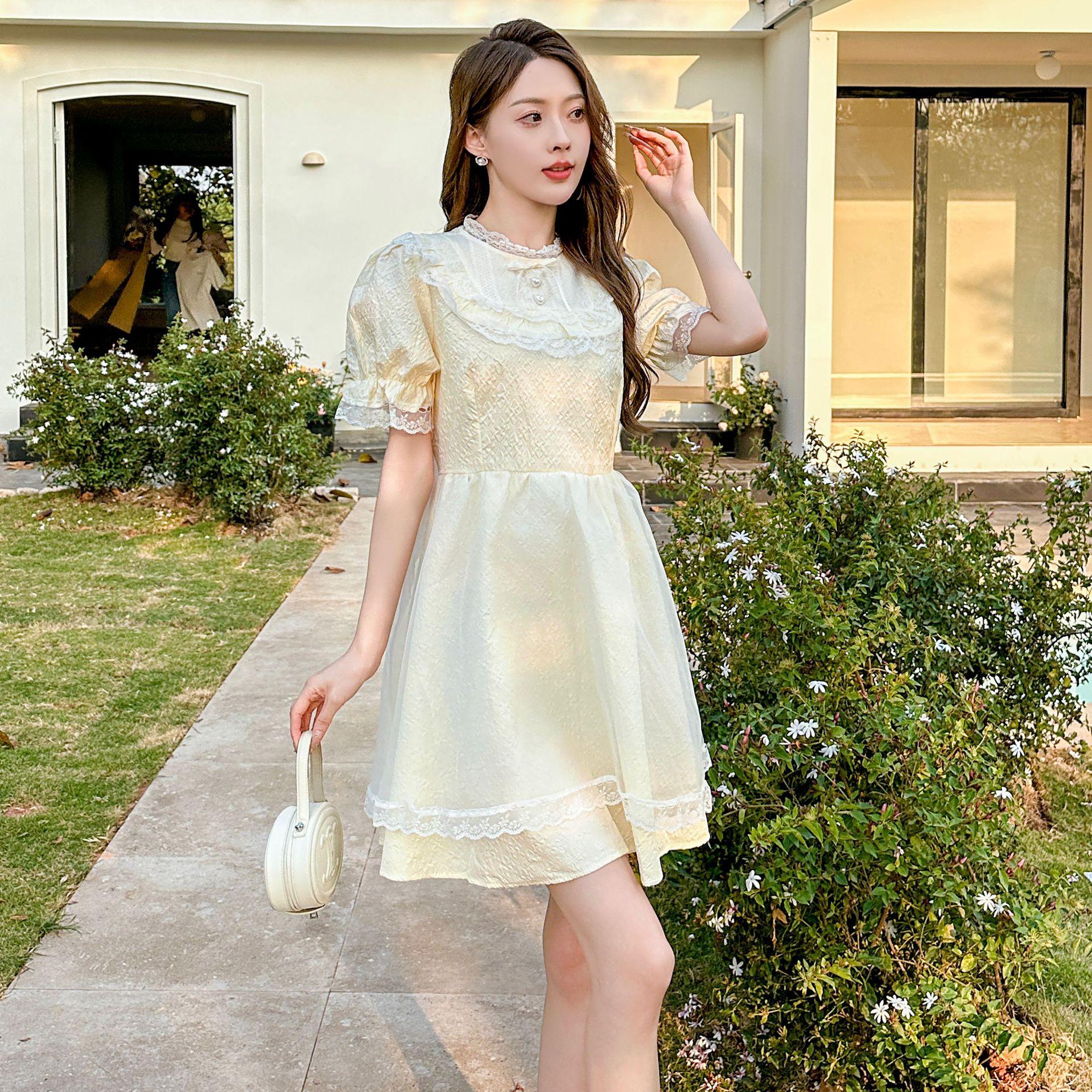 Vestido de Manga Abullonada Dulce Estilo Francés para Mujer Verano Elegante de Alta Gama Falda Tutú de Princesa Cintura Falda Corta
