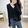 Nuevo suéter de manga larga estilo perezoso de primavera y otoño de 2023, cárdigan fino con cuello en V, suéter, abrigo corto para mujer