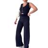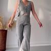 Otoño 2023 nuevo chaleco corto con botones a rayas de moda transfronteriza de Amazon europea y americana, traje de temperamento para mujer