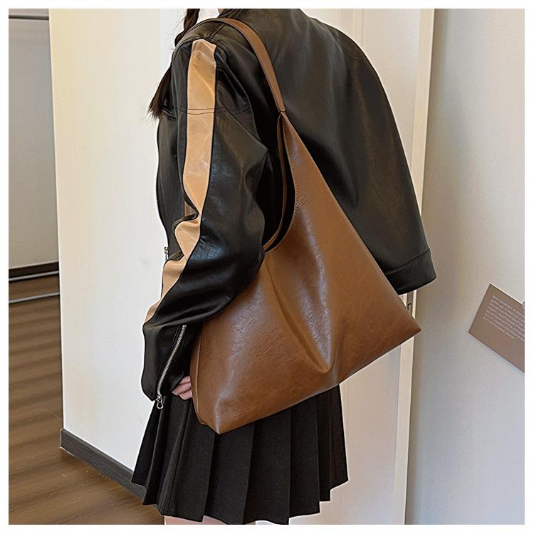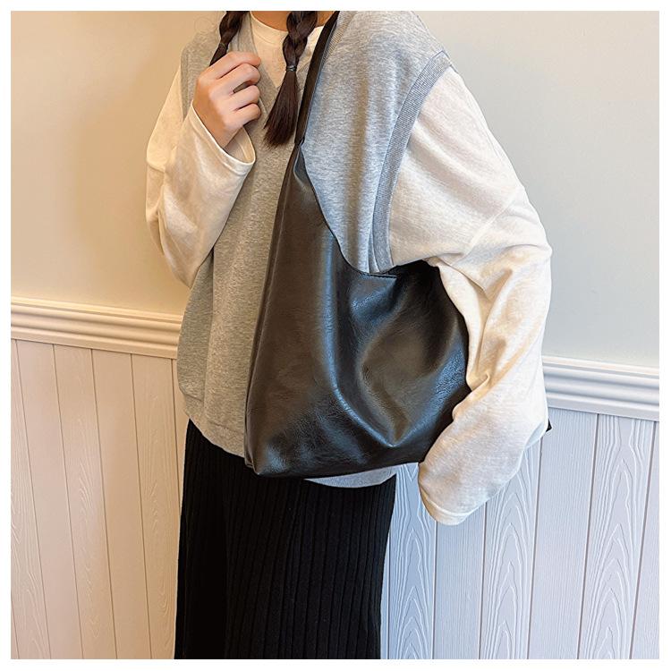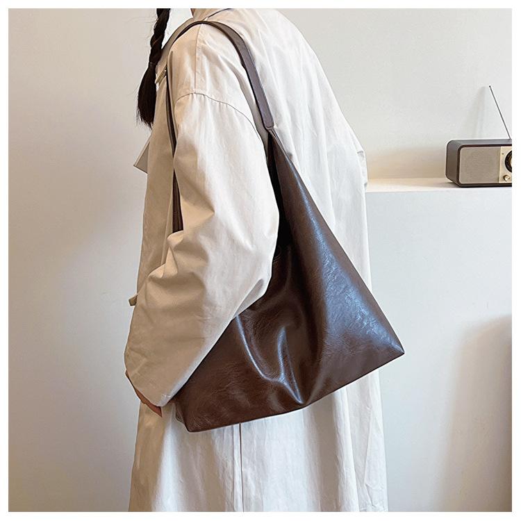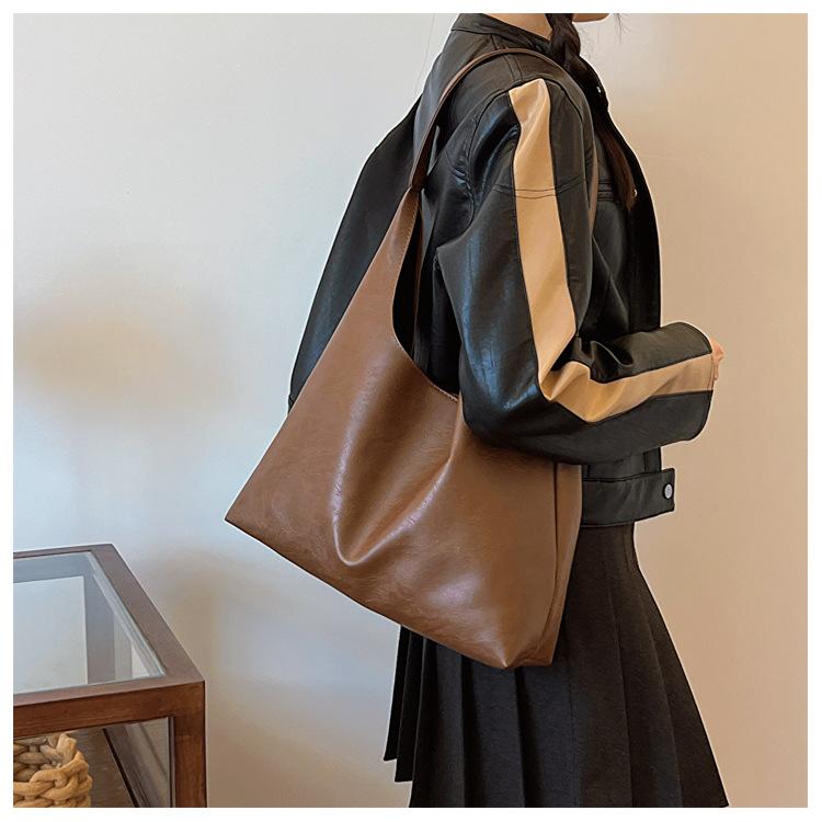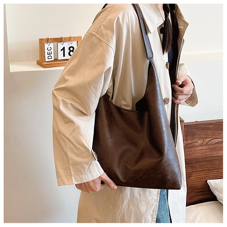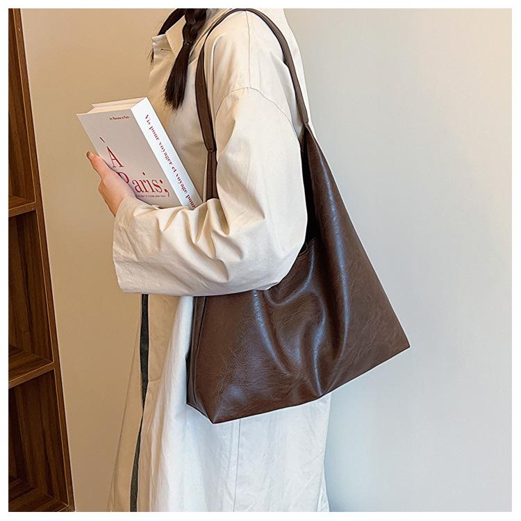 Bolso de mano con textura de nicho retro de color sólido para mujer, bolso de hombro tipo tote sencillo de moda 2023