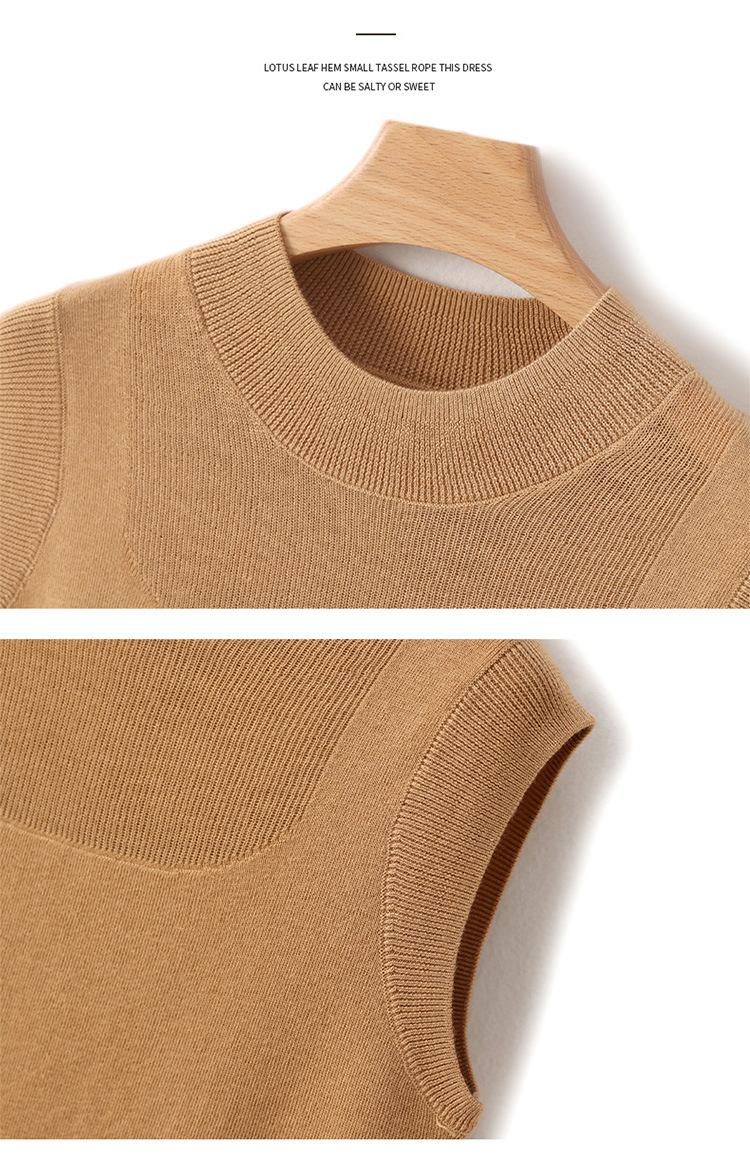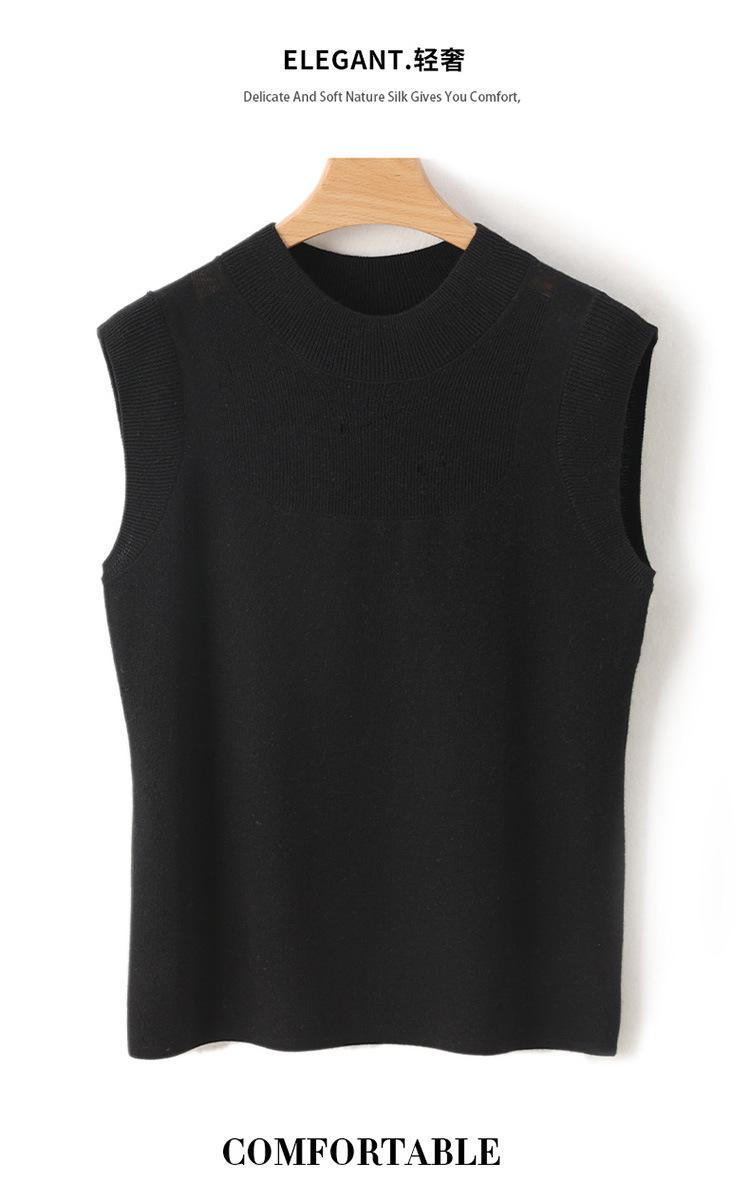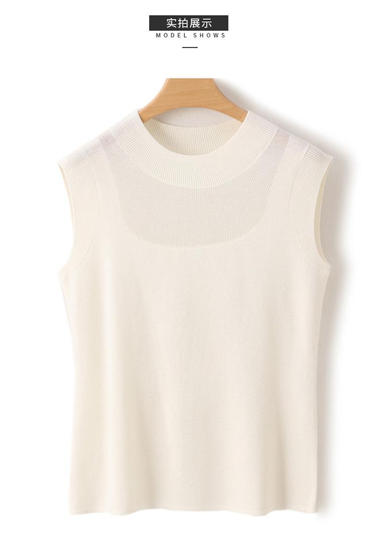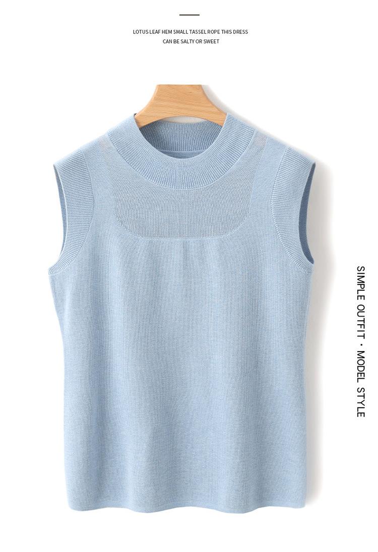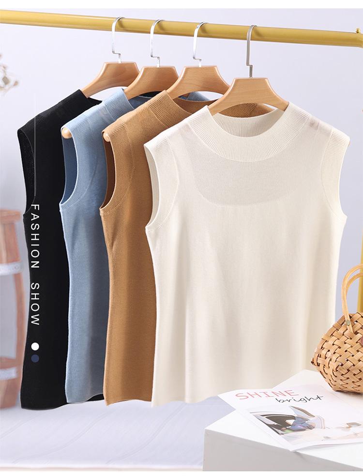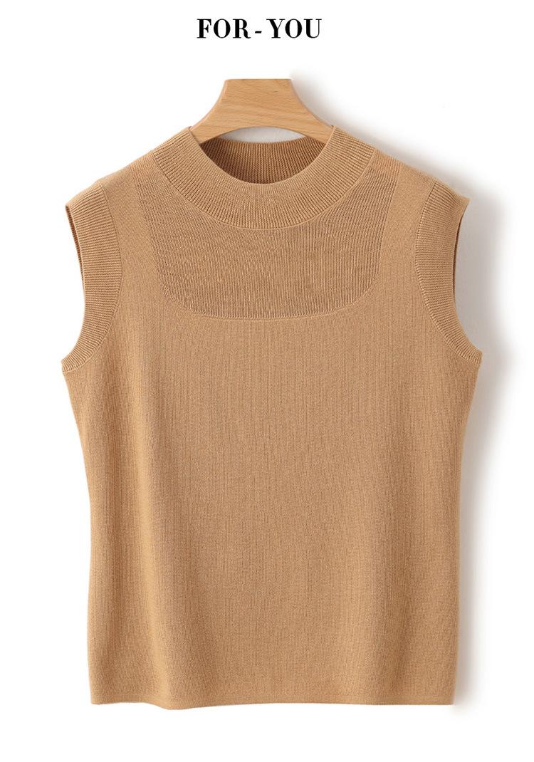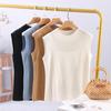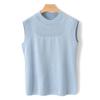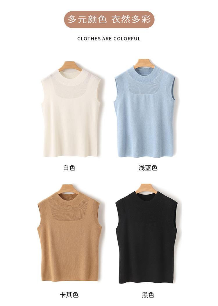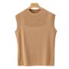 Top sin mangas de lana peinada de cuello medio alto para mujer, para primavera y verano, tejido de punto calado, jersey ajustado, chaleco versátil, camisa básica