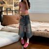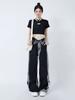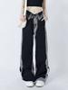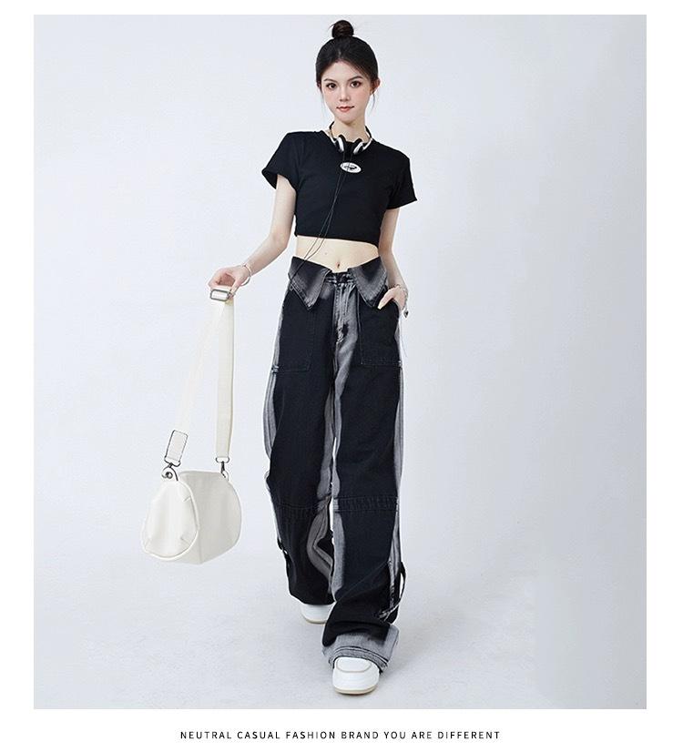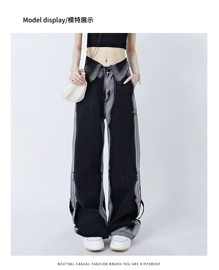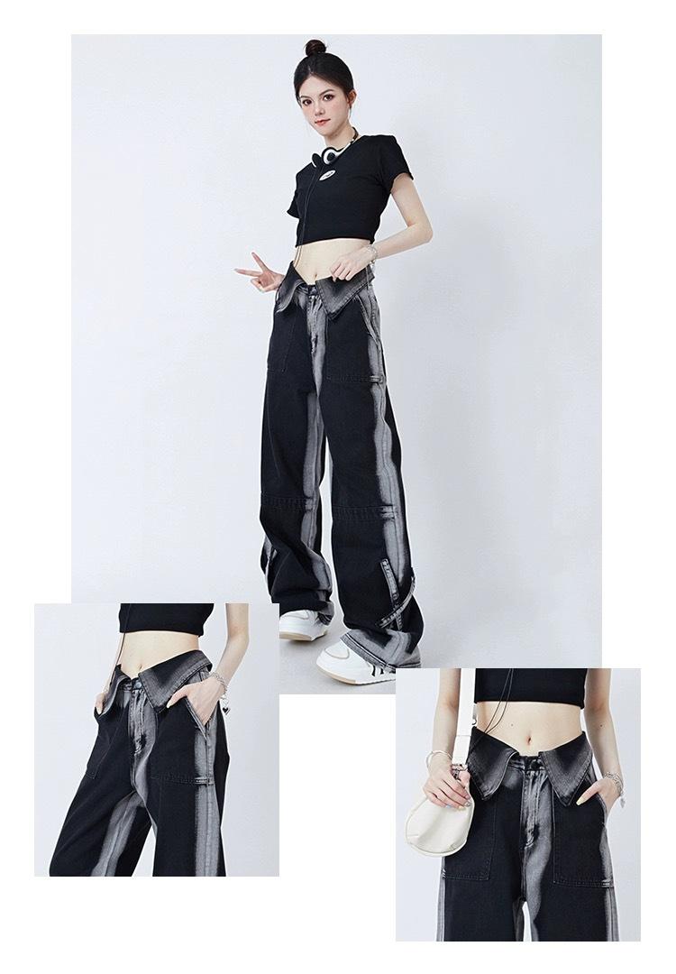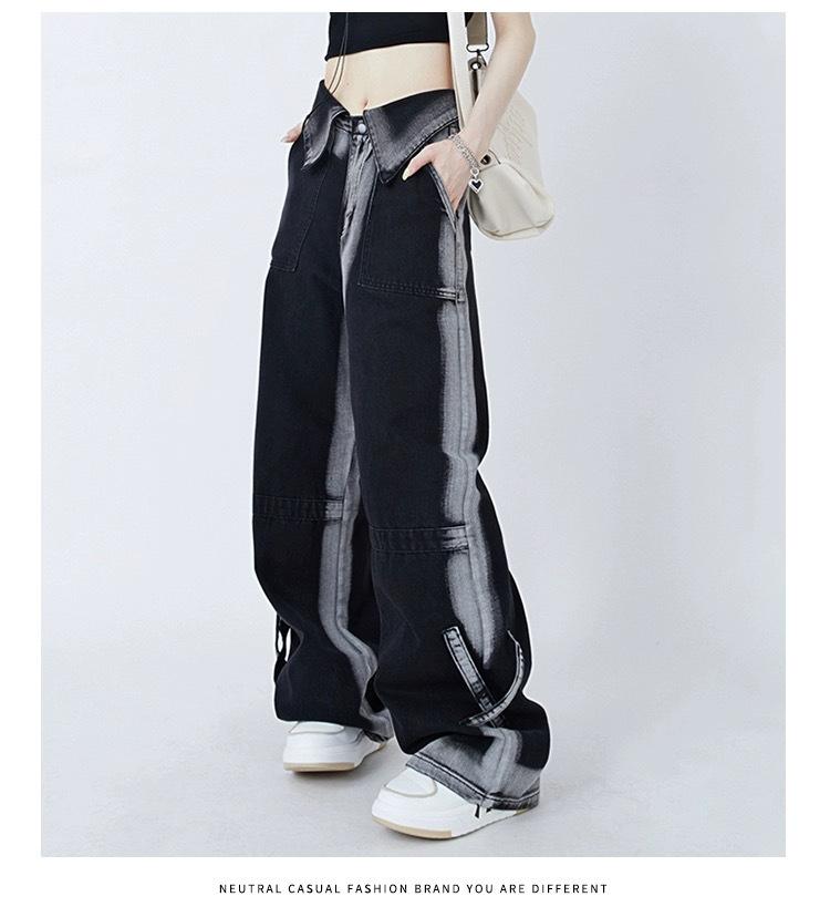 Pantalones vaqueros de estilo americano para mujer, estilo dopamina, con diseño abatible, holgados, casuales, de pierna ancha y rectos.