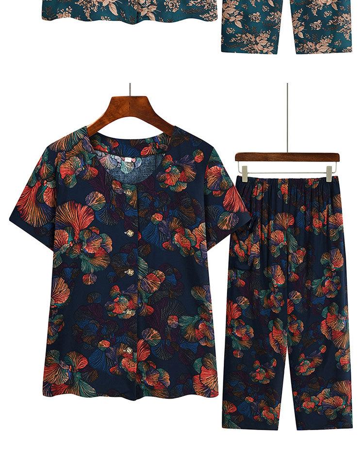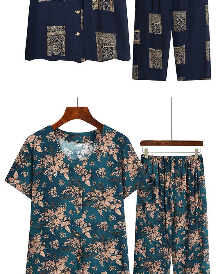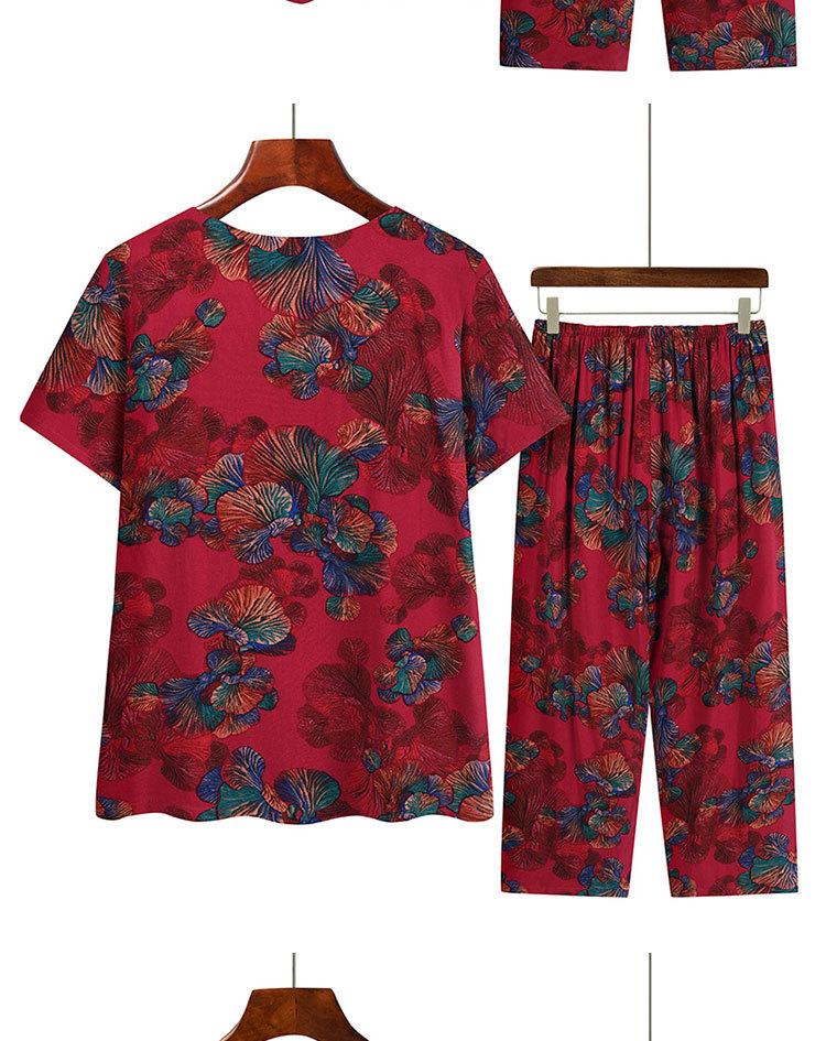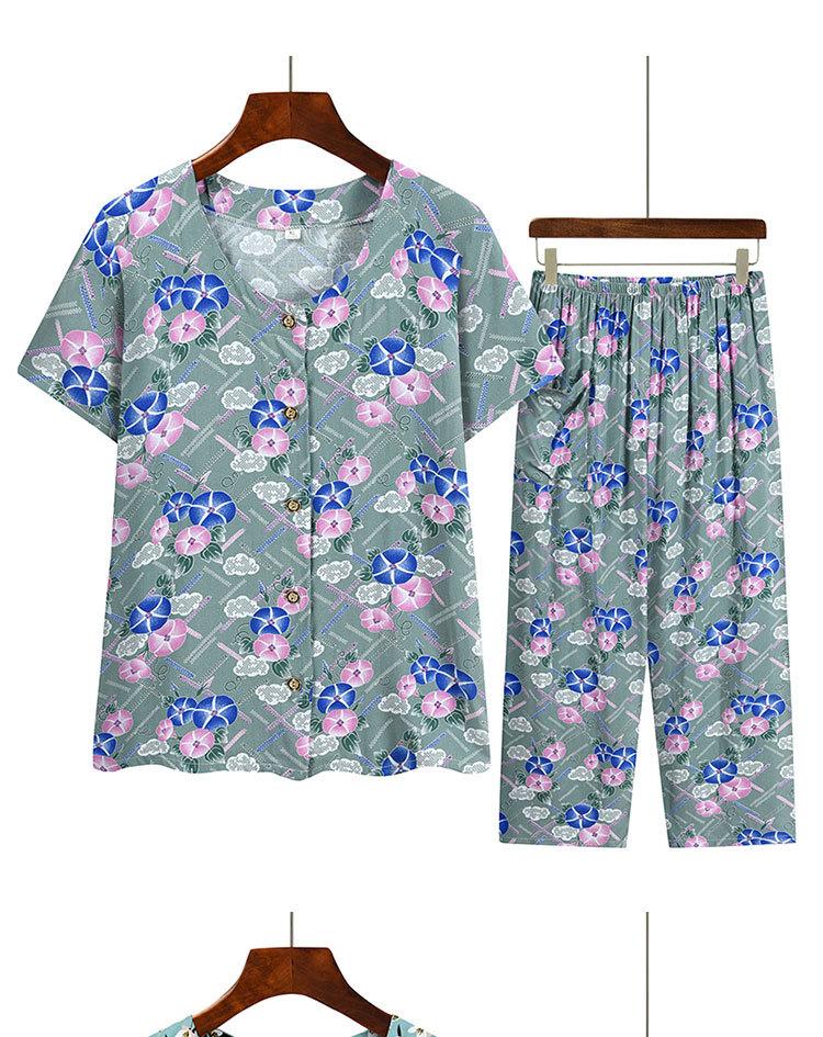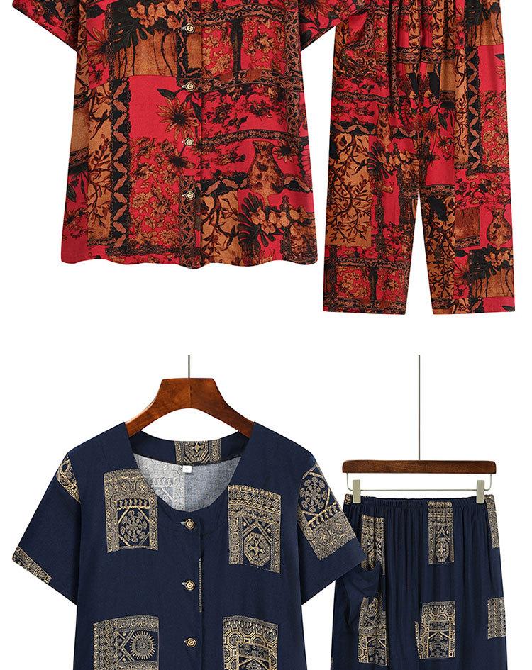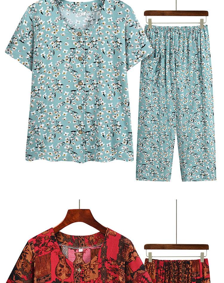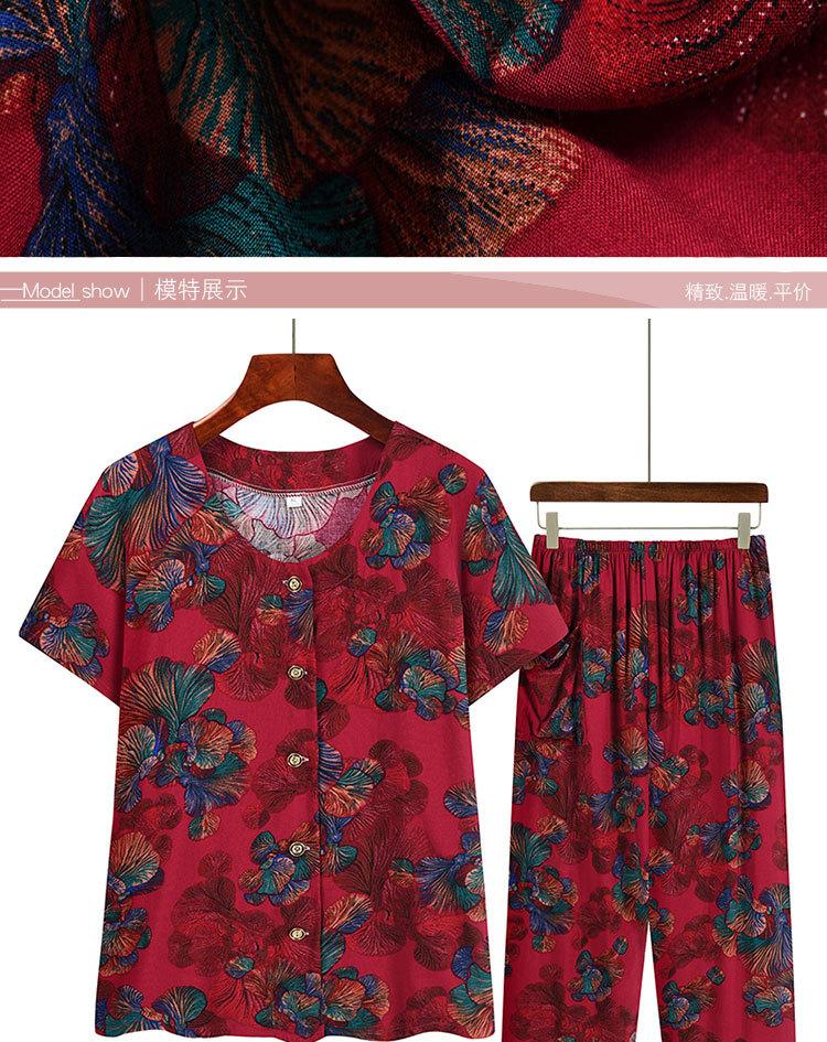 Ropa de abuela para mujeres de mediana edad y mayores, ropa informal holgada de manga corta para mujer, traje de cárdigan, ropa de verano para madres