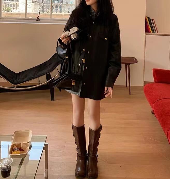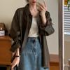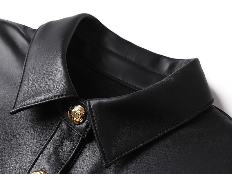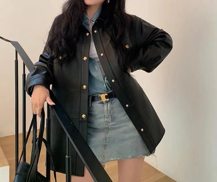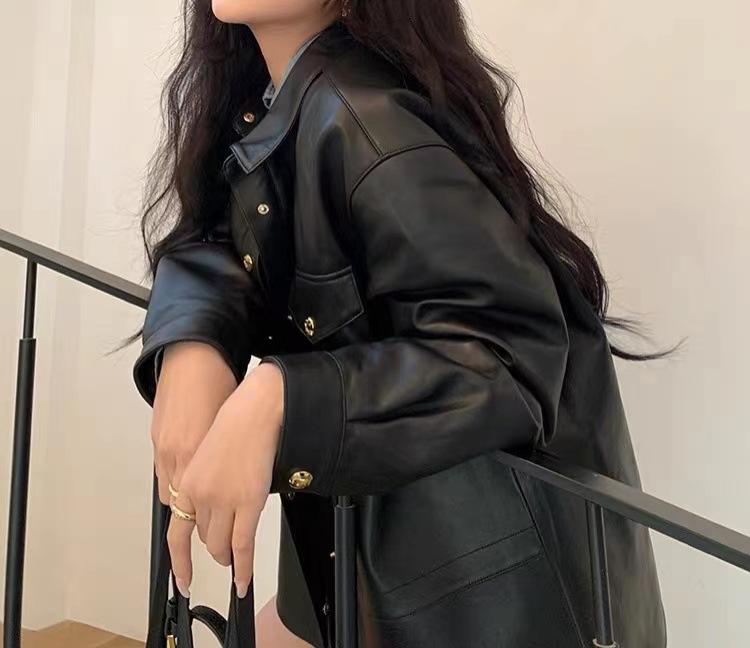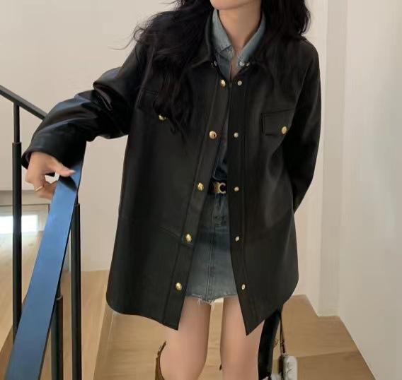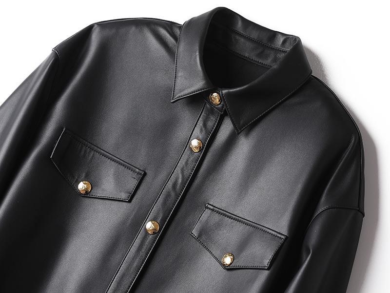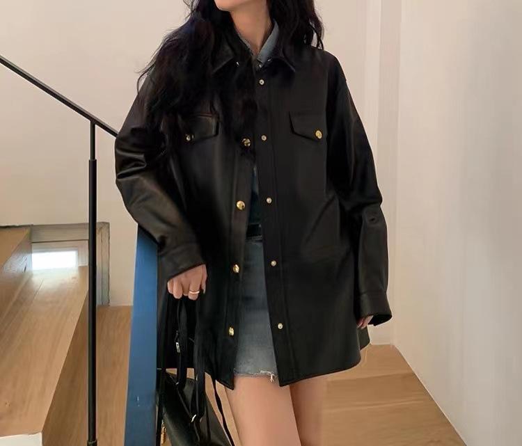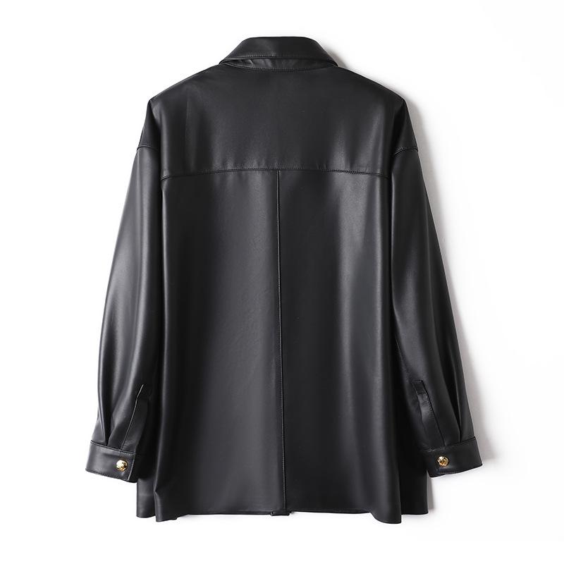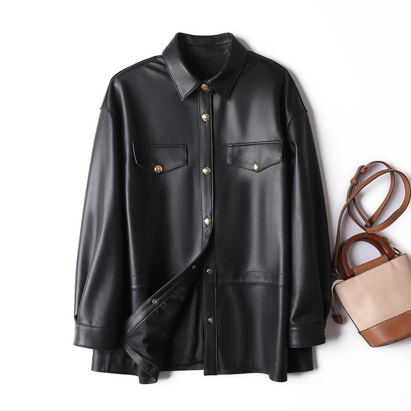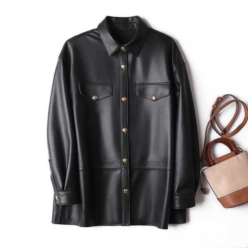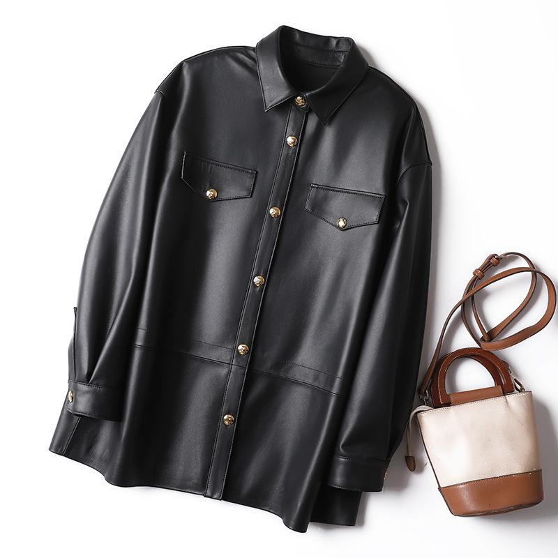 Chaqueta de Cuero Genuino 4106 para Mujer, Moda de Primavera y Otoño Nueva Camisa Casual Suelta, Camisa Americana, Chaqueta de Piel de Cabra Grado A