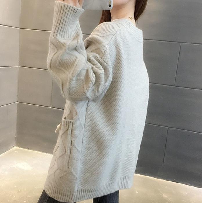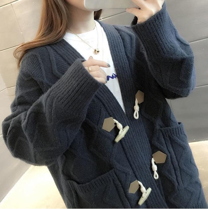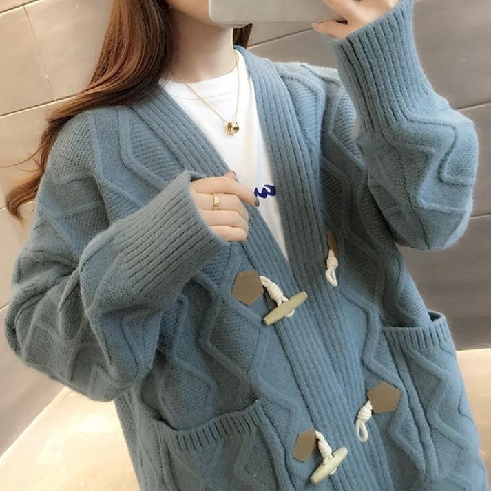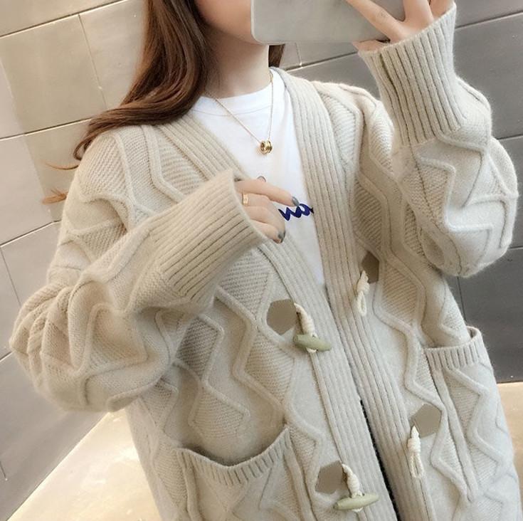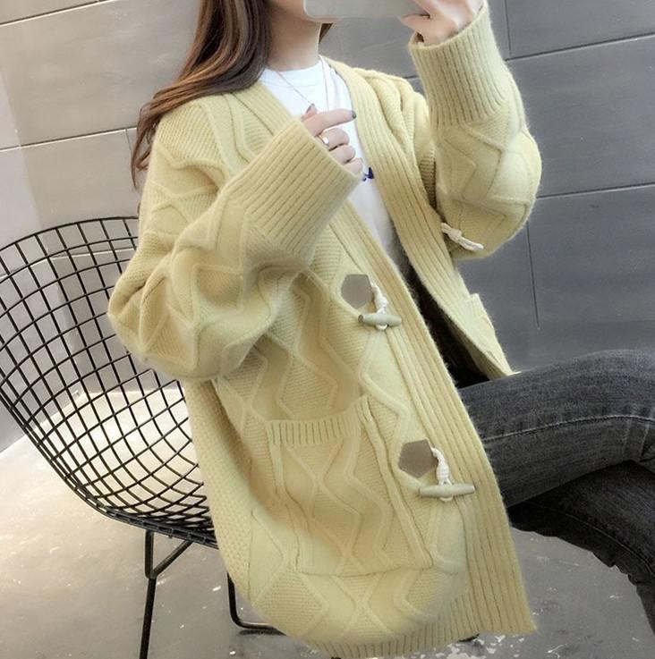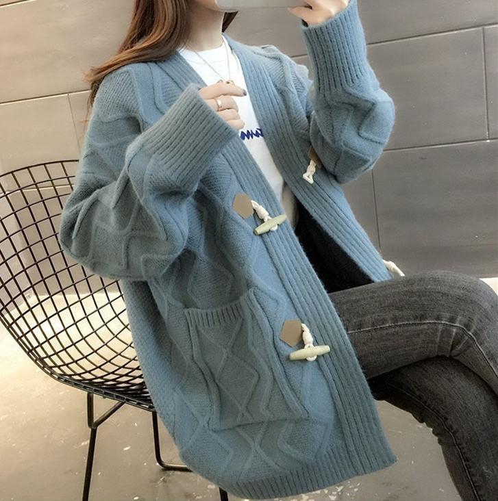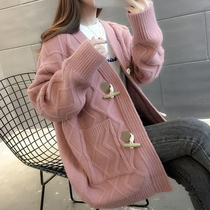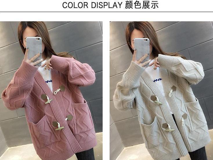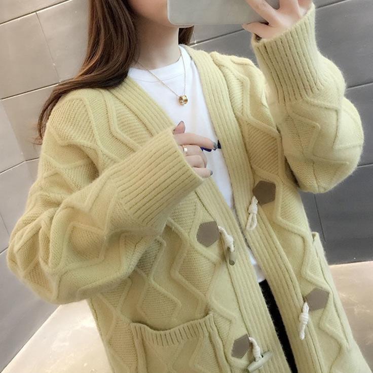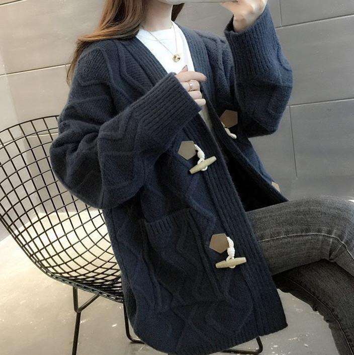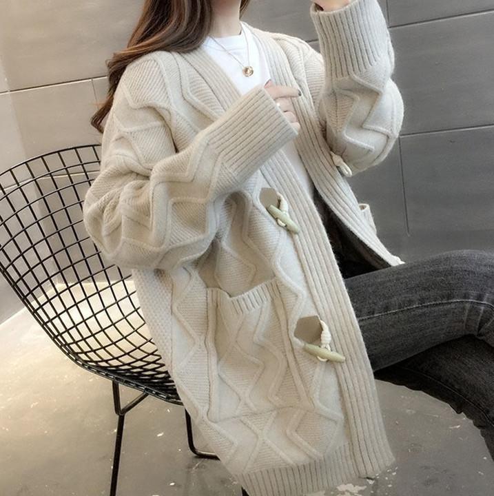 Chaqueta Cárdigan de Punto para Mujer, Versátil 2024 Primavera y Otoño Nuevo Estilo Coreano Holgado Casual Abrigo Midi