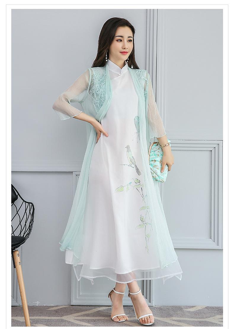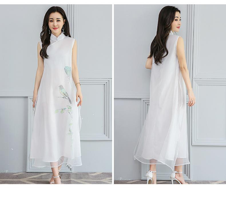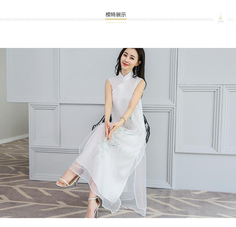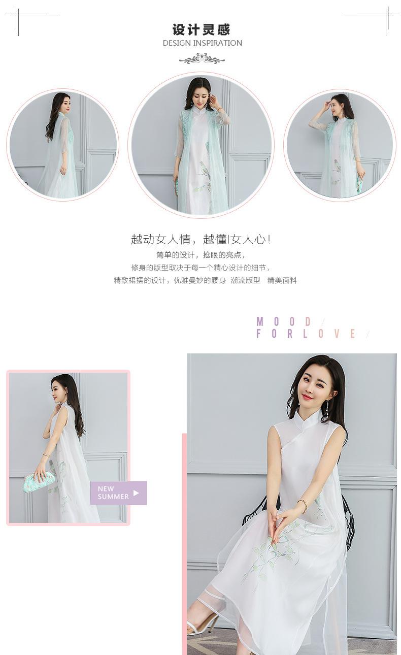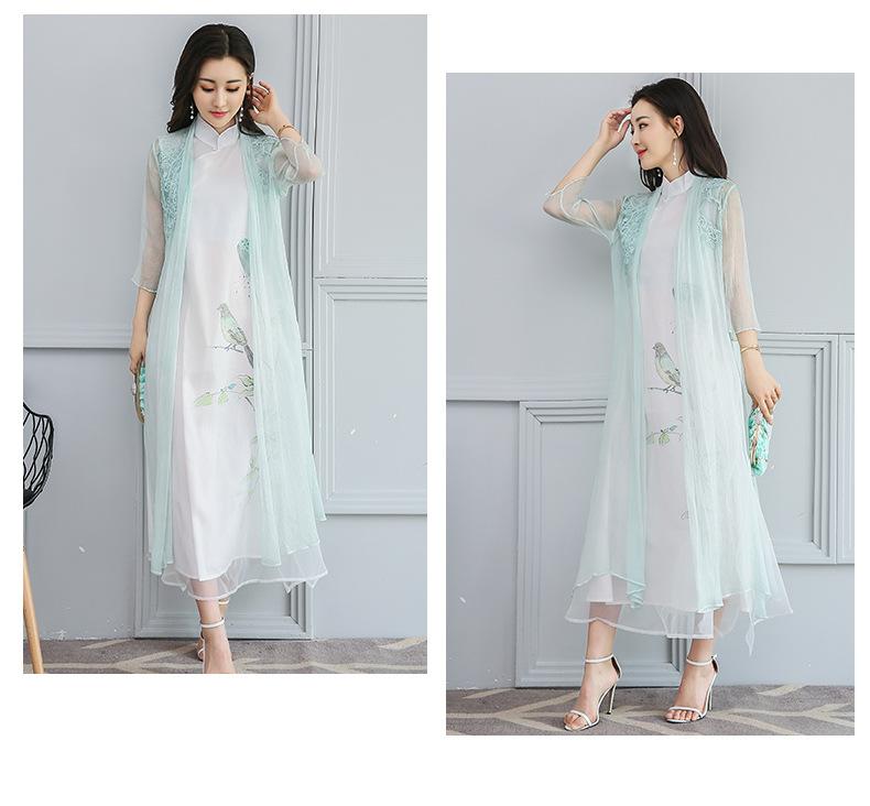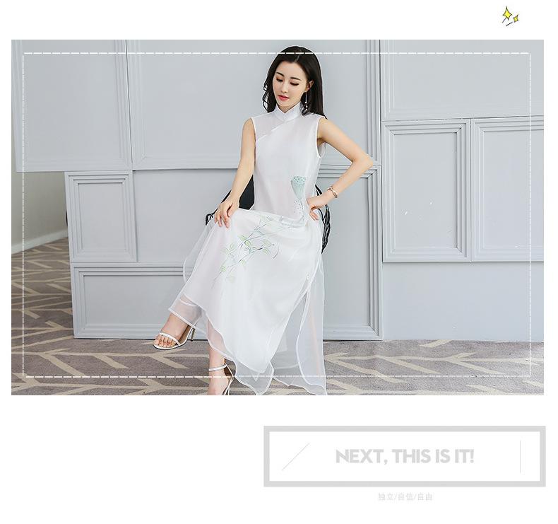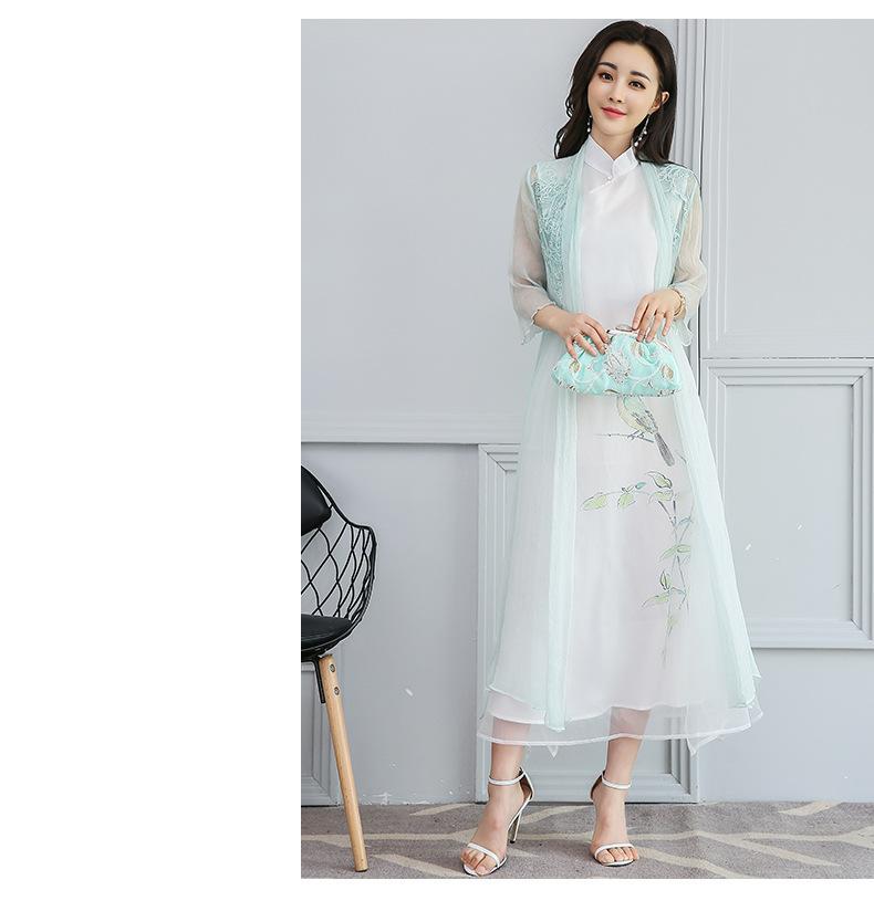 Vestido cheongsam étnico vintage de organza con diseño de papaya y leche, primavera y verano, chaleco largo, traje de dos piezas a la moda.