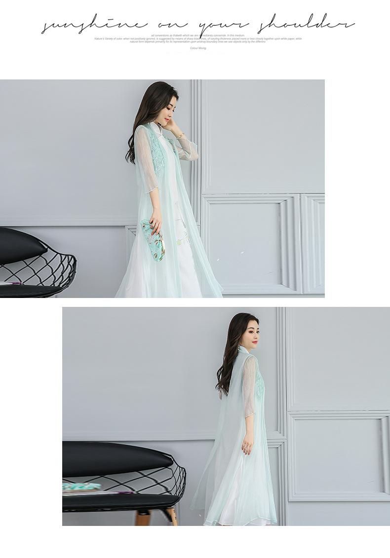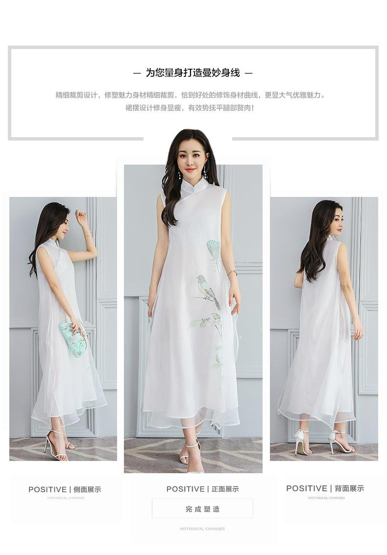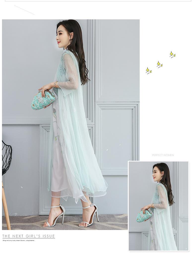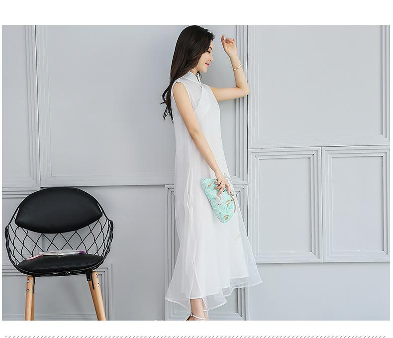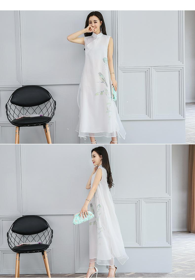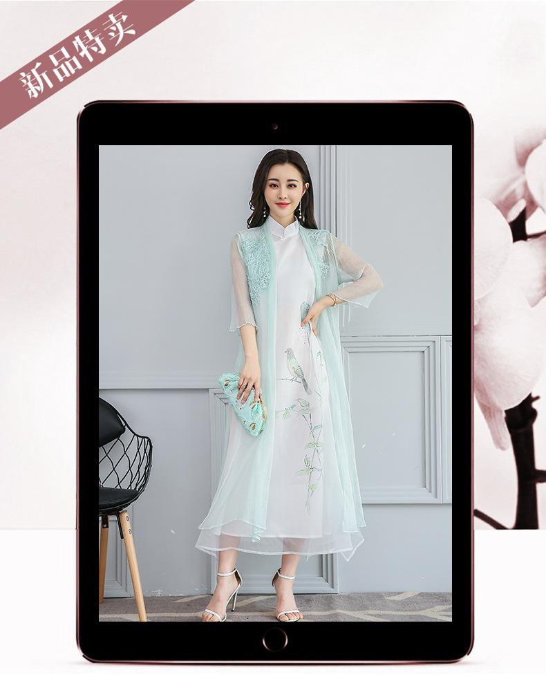 Vestido cheongsam étnico vintage de organza con diseño de papaya y leche, primavera y verano, chaleco largo, traje de dos piezas a la moda.