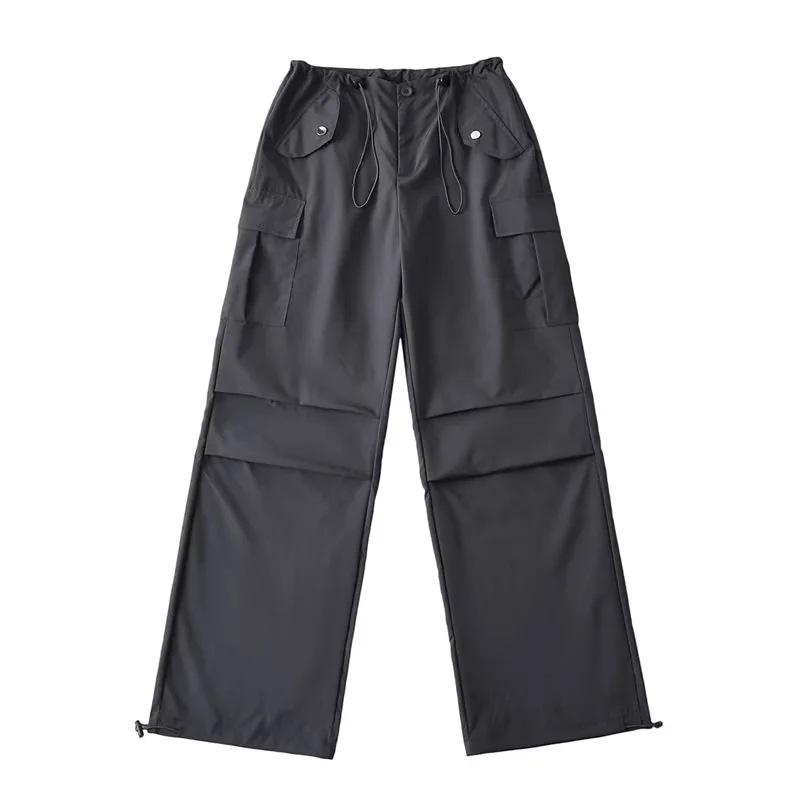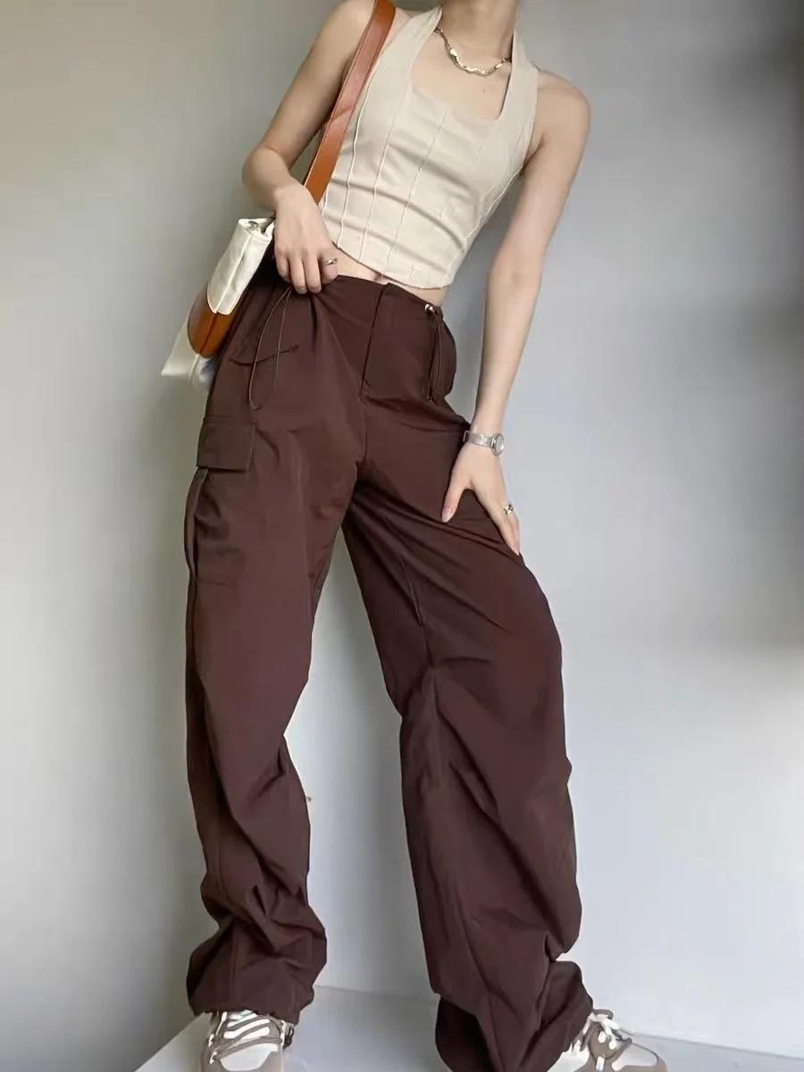 Overol Americano de Chica Sexy para Mujer Otoño 2023 Nuevo Retro Casual Cintura Baja Cordón Ajustable Pantalones Sueltos de Pierna Ancha