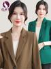 Qiao Yaying - Vestido para madre, otoño, traje pequeño, bolsillo grande, estilo occidental, informal, de negocios, manga larga, color sólido, chaqueta estilo occidental