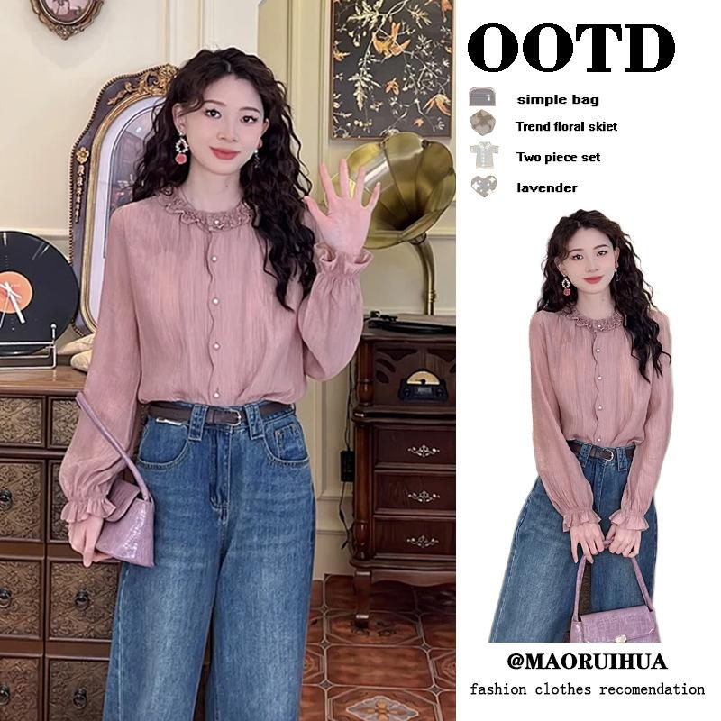 Camisa Francesa con Volantes para Mujer Primavera 2024 Nuevo Estilo Temperamento Dulce y Gentil Top Otoño Hermosa Camisa