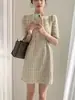 Vestido Corto A-Line Estilo Tweed 2025 Nuevo Primavera para Mujer Retro Francés Cintura Adelgazante Falda Manga Corta para Mujer