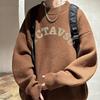 Suéter de Manga Larga para Otoño e Invierno 2024 para Mujer Nuevo Suelto Cuello Redondo Rayado Blanco y Negro Casual Estilo Lazy Chaqueta Suéter