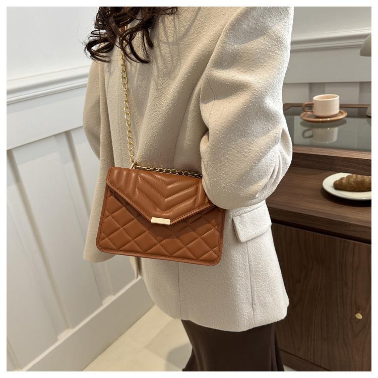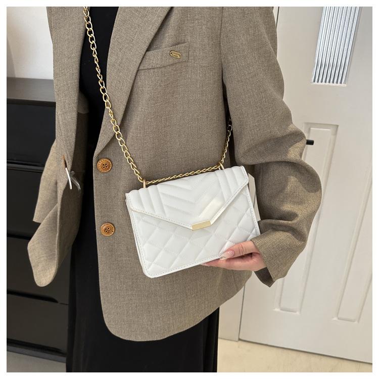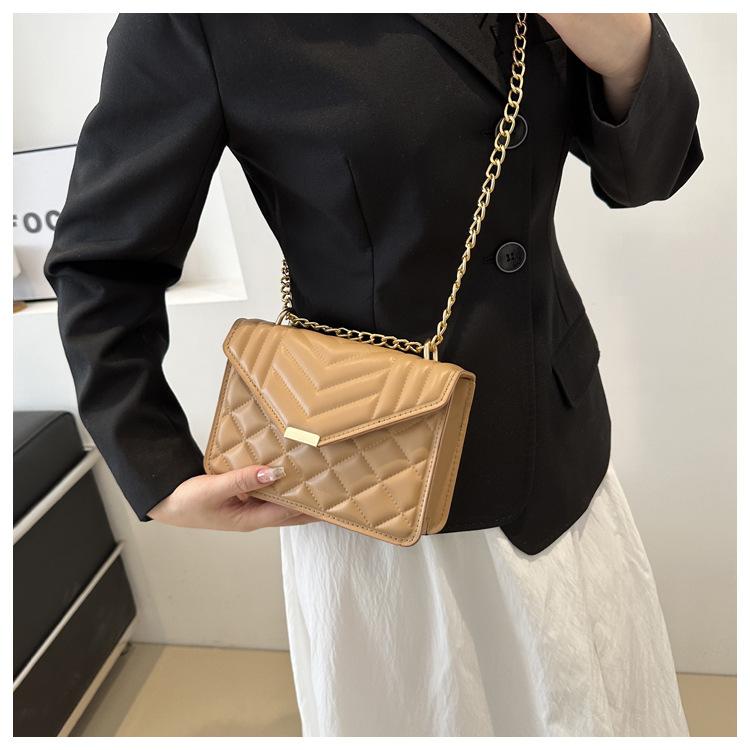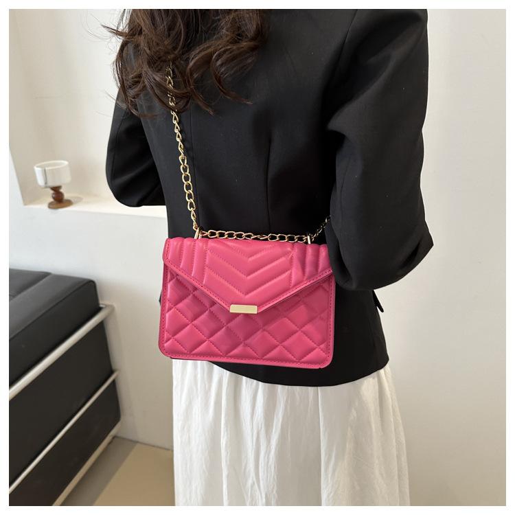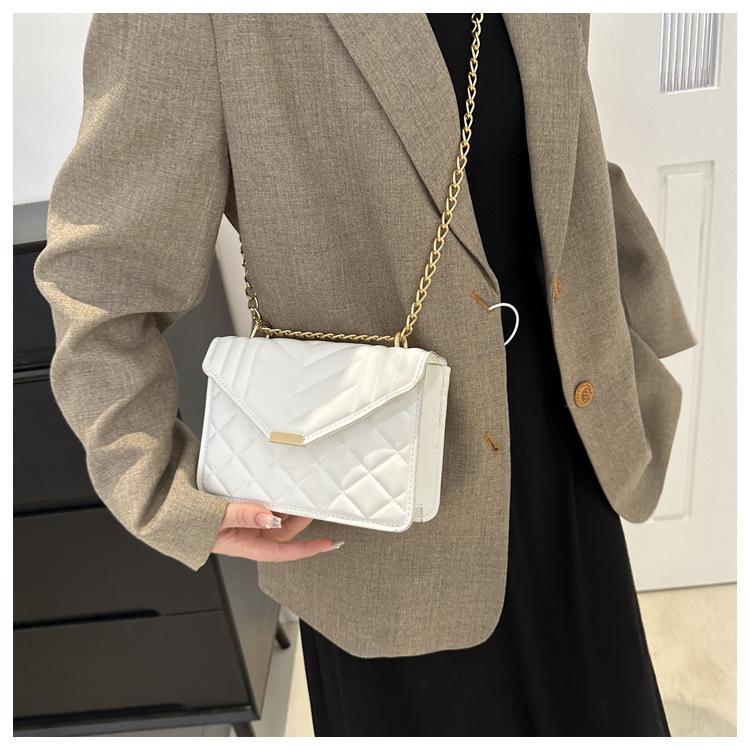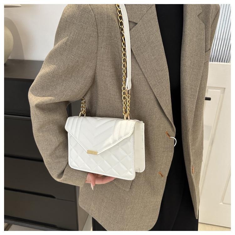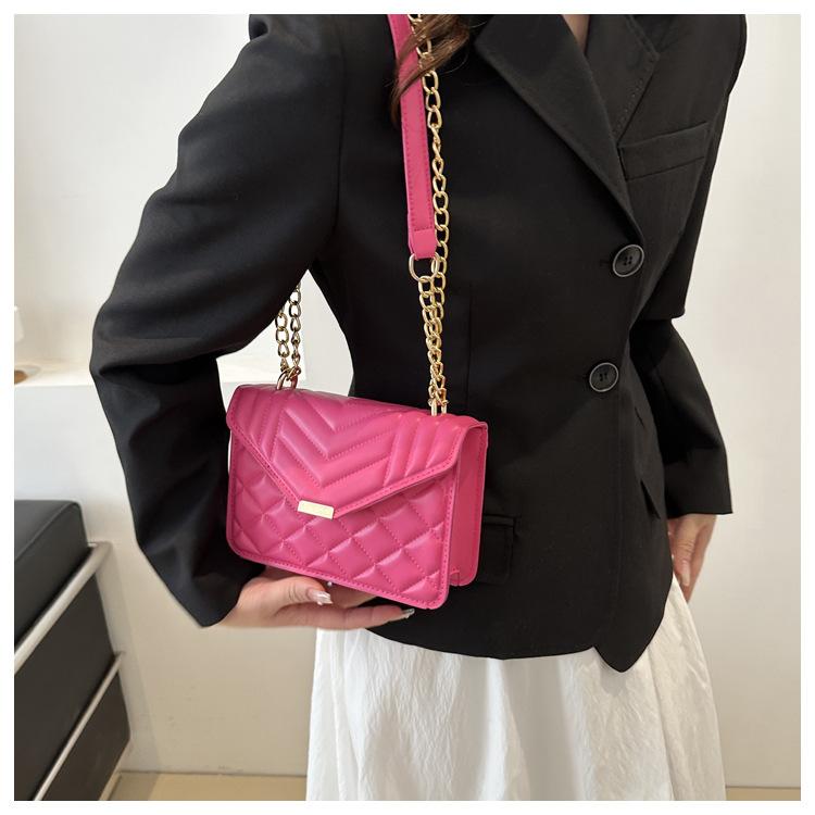 Bolso pequeño elegante y sencillo de color liso para mujer, primavera 2024, bandolera de hombro con cadena y diseño cuadrado pequeño.