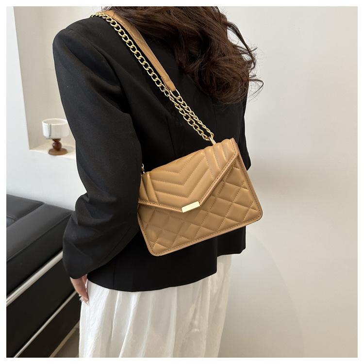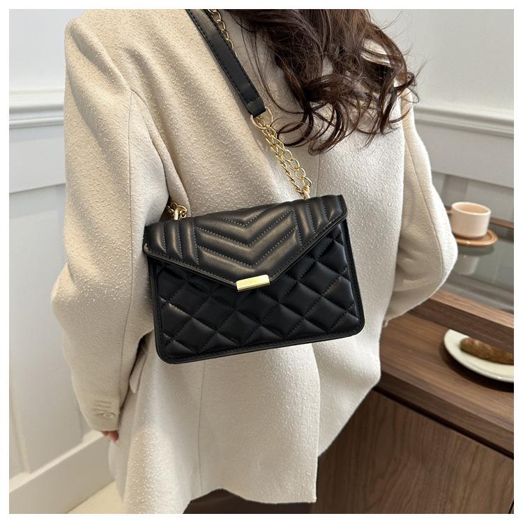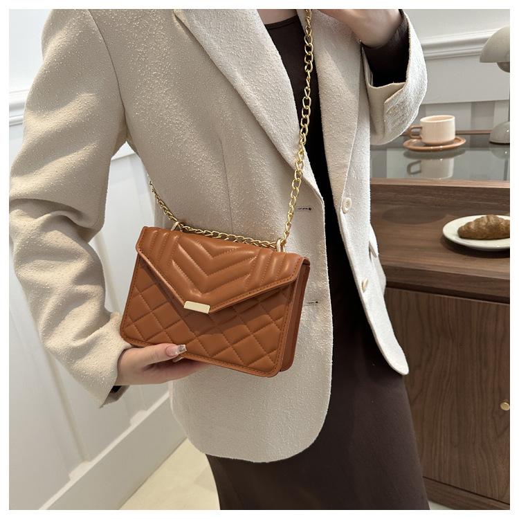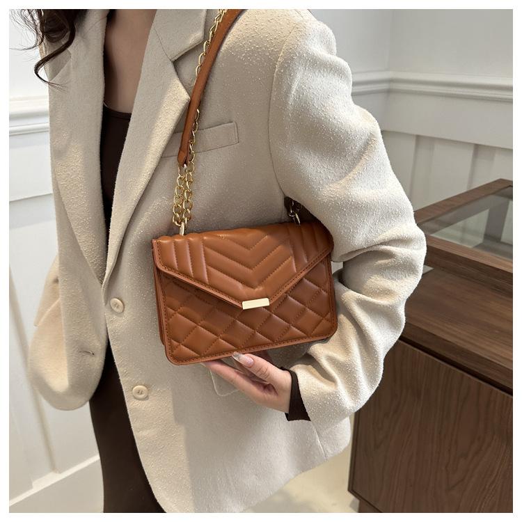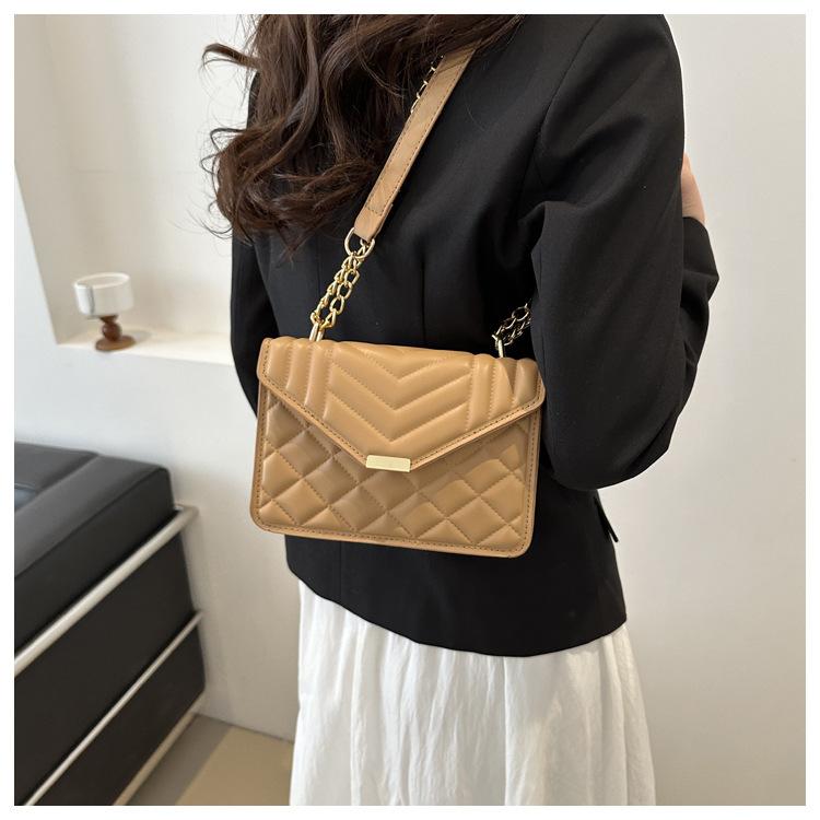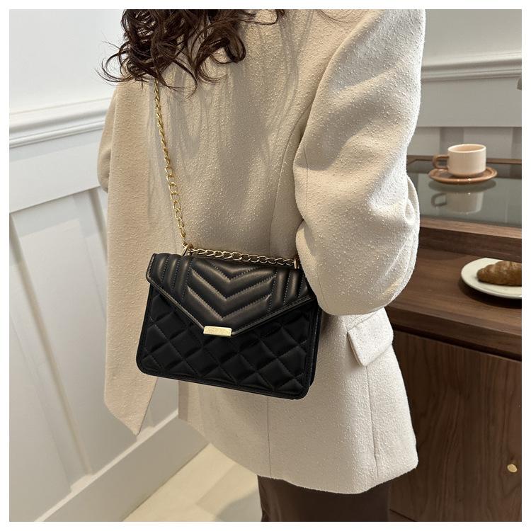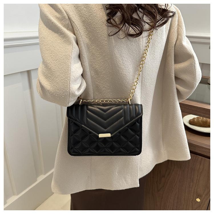 Bolso pequeño elegante y sencillo de color liso para mujer, primavera 2024, bandolera de hombro con cadena y diseño cuadrado pequeño.