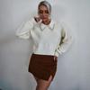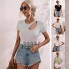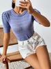 Europeo y Americano Transfronterizo Europeo y Americano Calado Nuevo Amazon Primavera y Verano Suéter Tejido de Punto para Mujer Manga Corta Color Sólido Tejido de Punto para Mujer