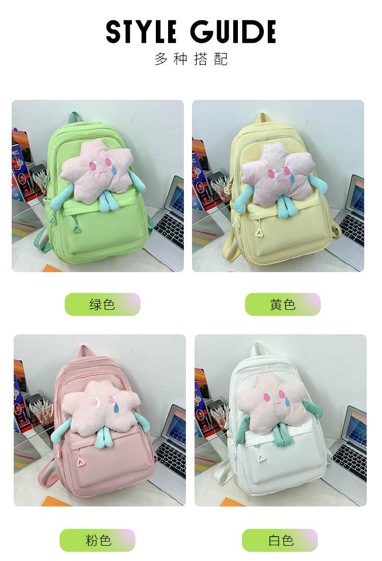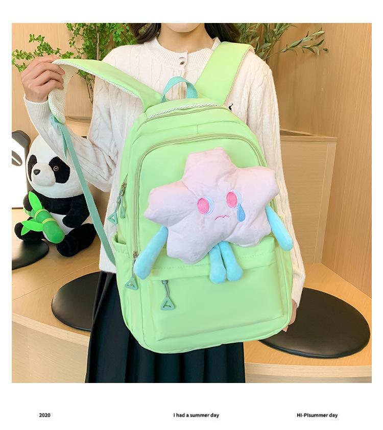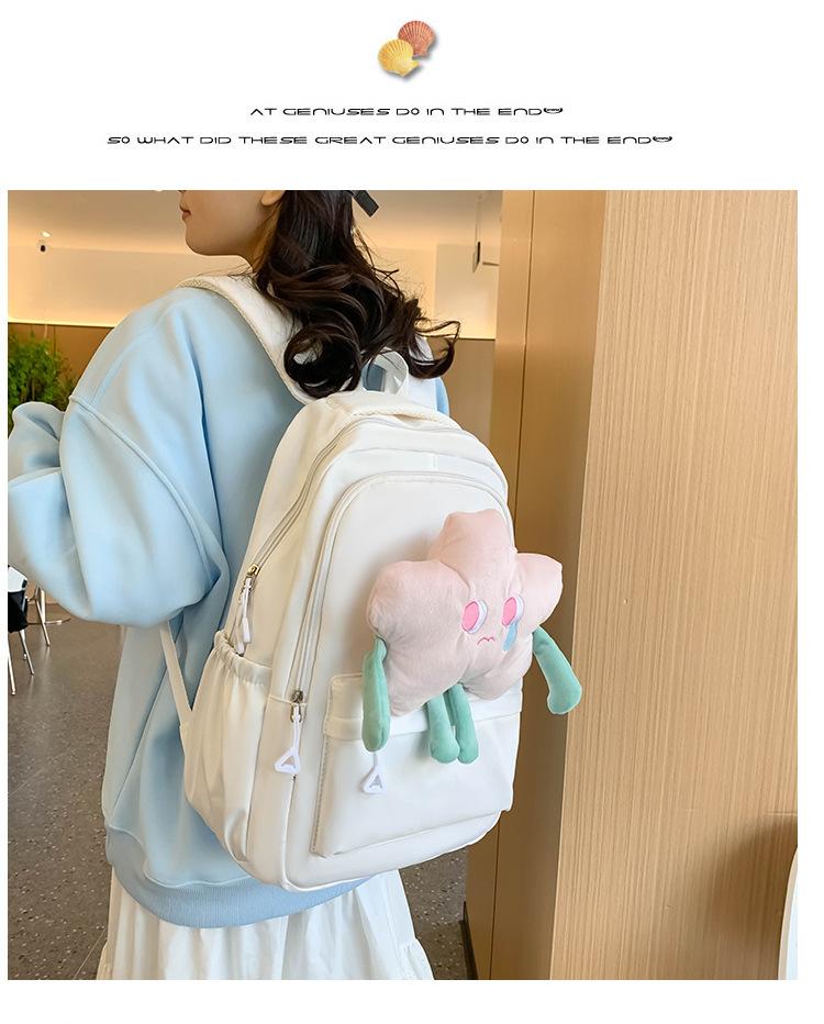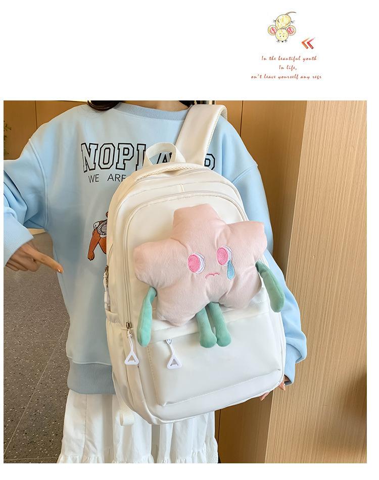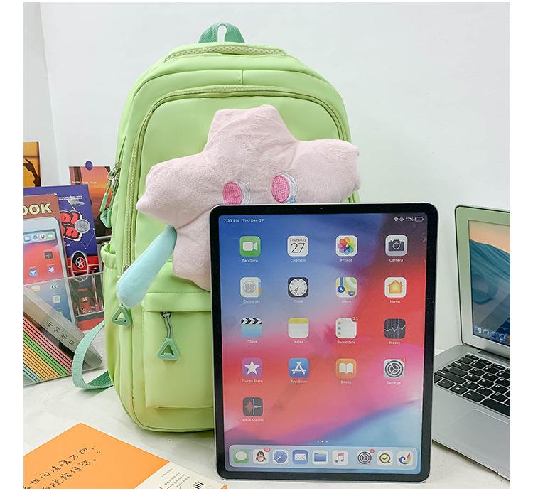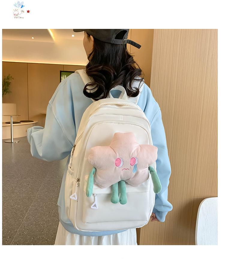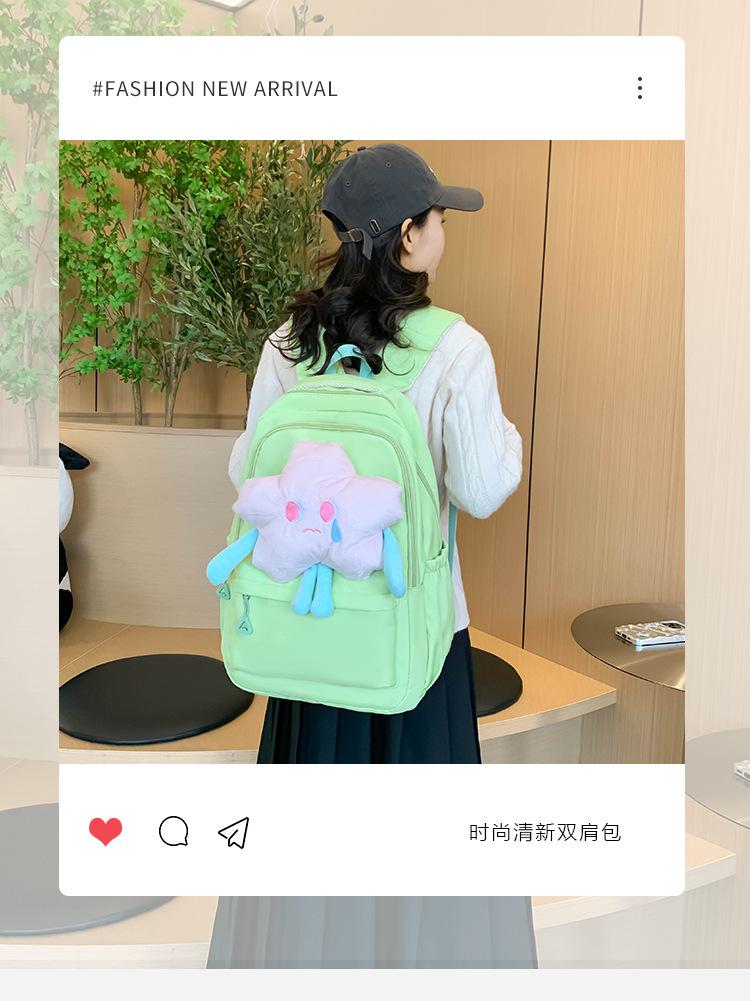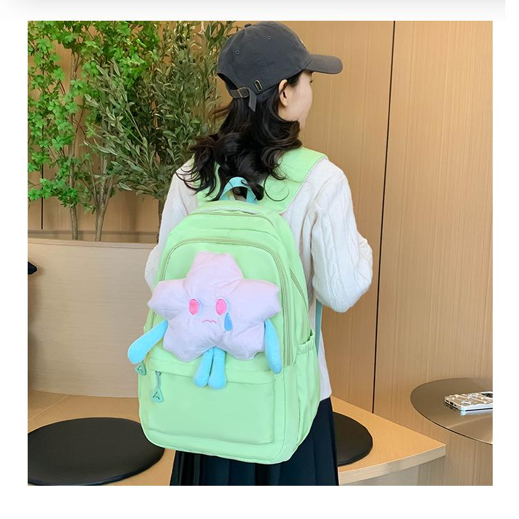 Bonita mochila de estrella, estilo japonés, versátil, de gran capacidad, de color sólido, de nailon, para estudiantes de secundaria y universitarias, mochila para niña, para mujer