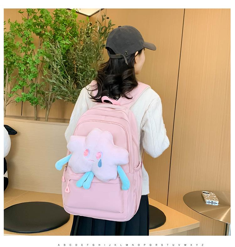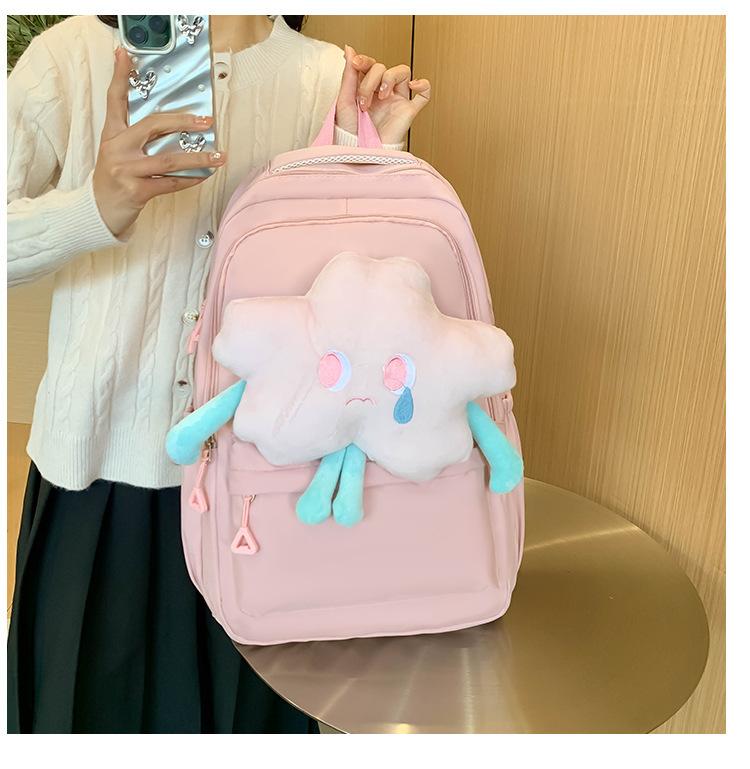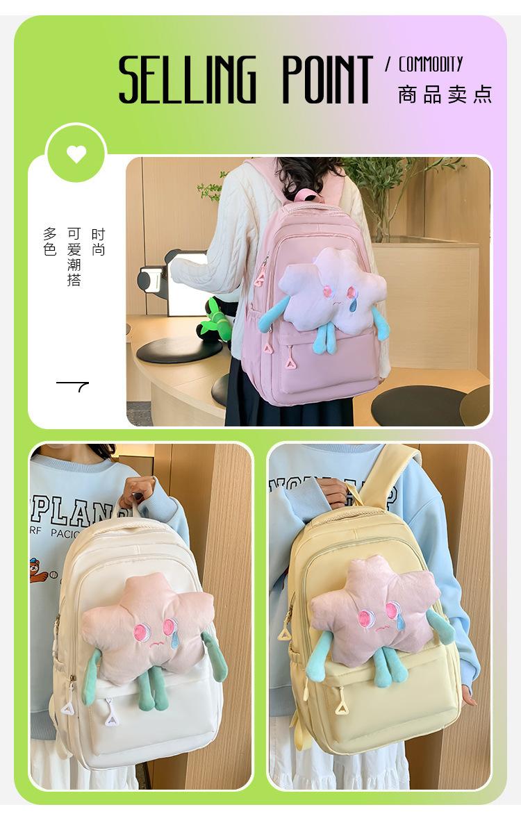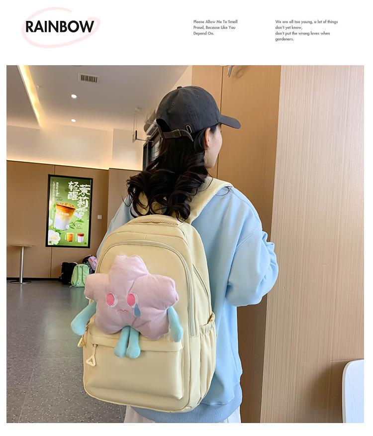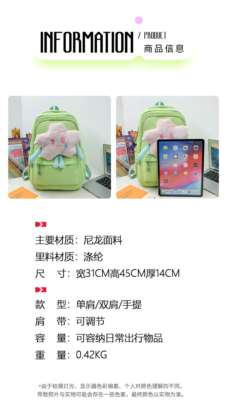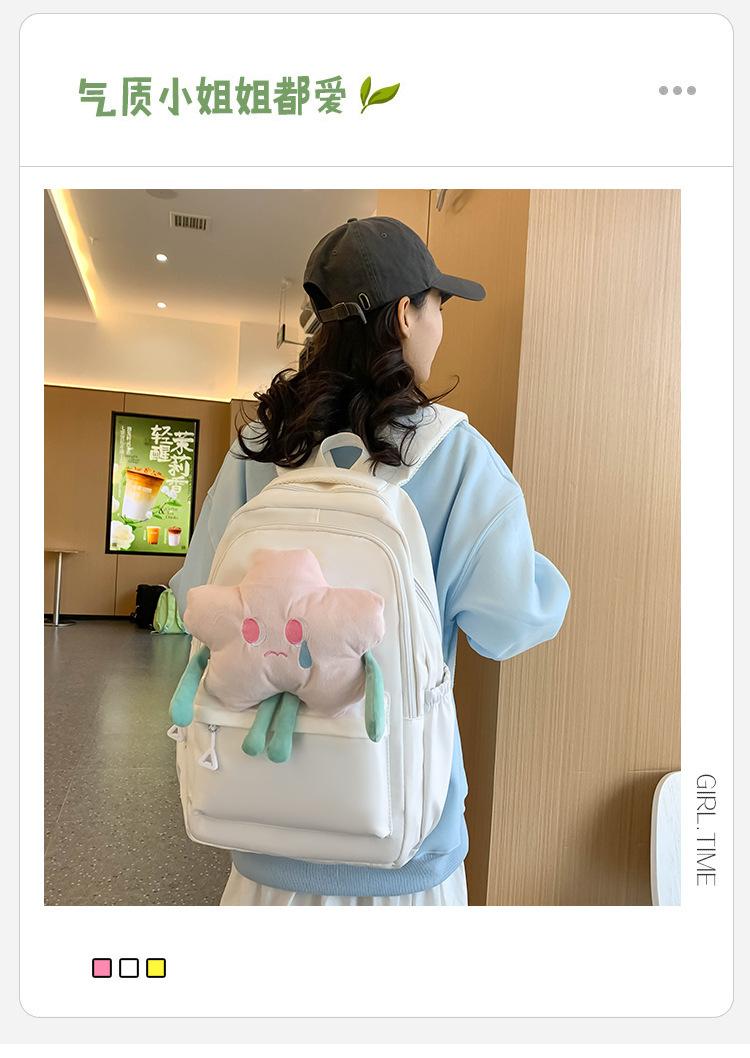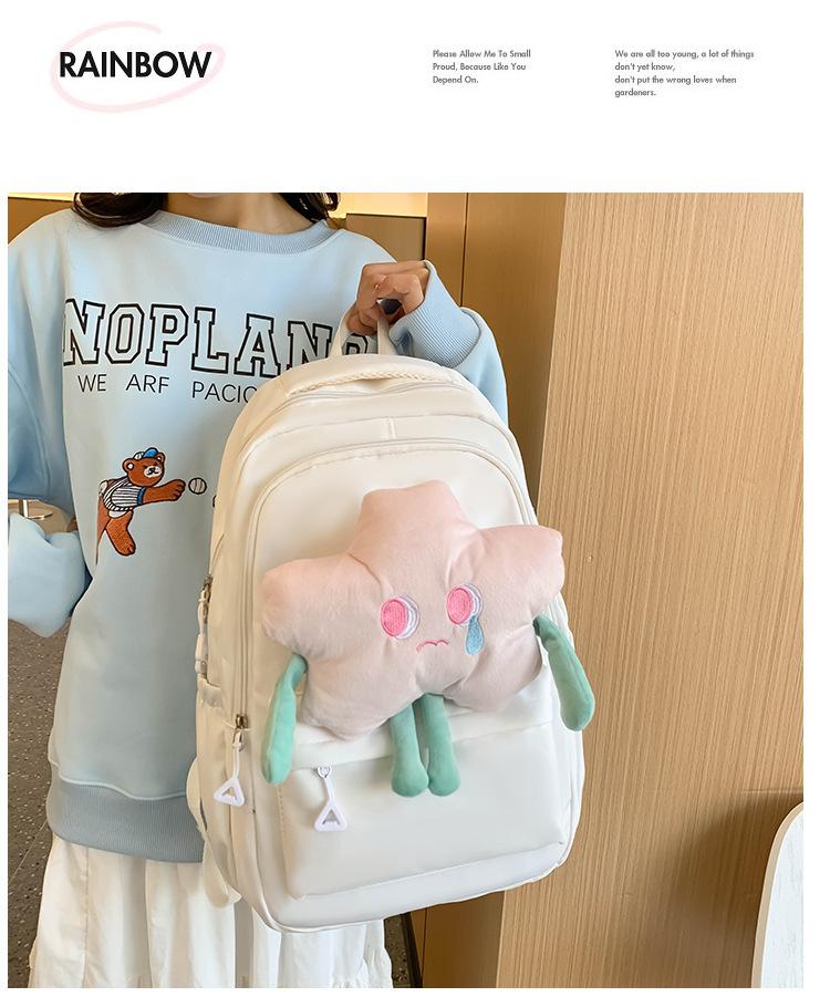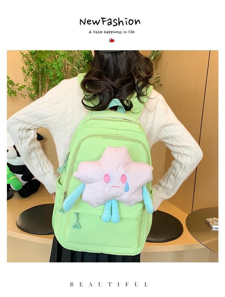 Bonita mochila de estrella, estilo japonés, versátil, de gran capacidad, de color sólido, de nailon, para estudiantes de secundaria y universitarias, mochila para niña, para mujer