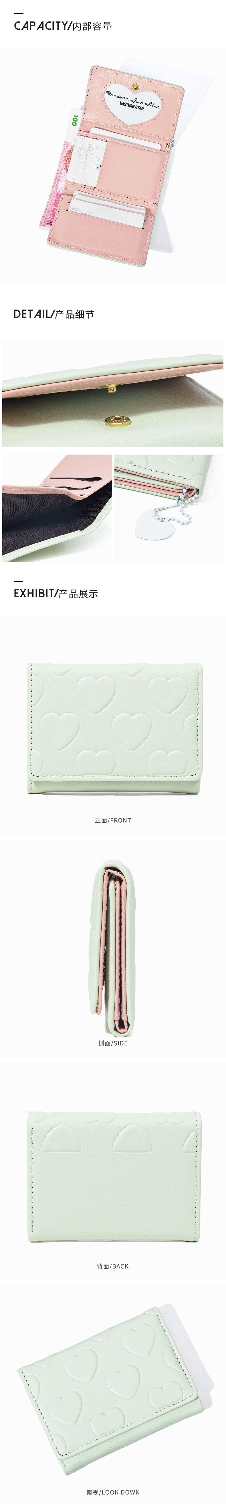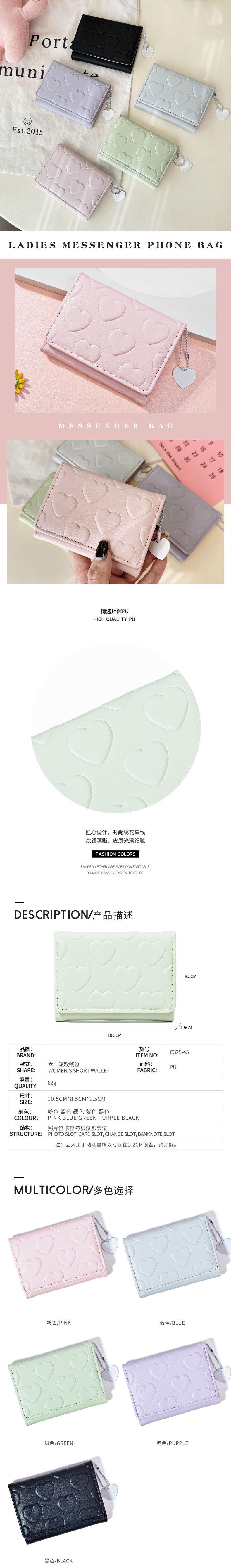 Cartera corta Love para mujer, estilo coreano, bonita y fresca, con tres pliegues, tarjetero de color liso para estudiantes, disponible en stock.