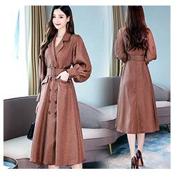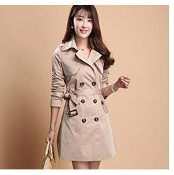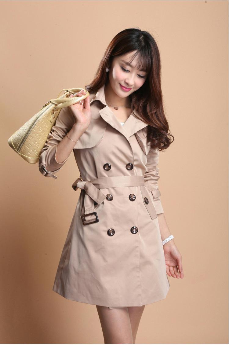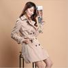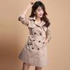 Chaqueta cortavientos de manga larga con doble botonadura y cintura elegante de estilo coreano de primavera y otoño de Papaya Milk, ajustada y adelgazante, de color caqui.