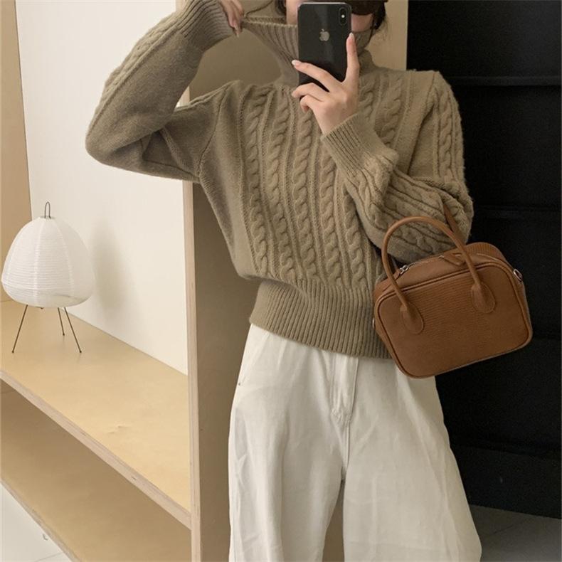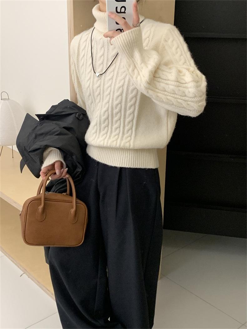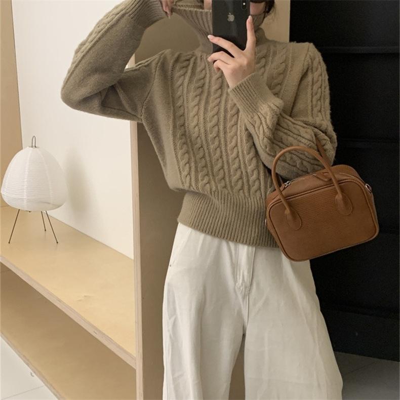 Suéter de cuello alto con diseño de mujer, estilo holgado y perezoso, combina con todo, otoño e invierno de 2023.