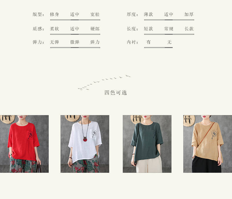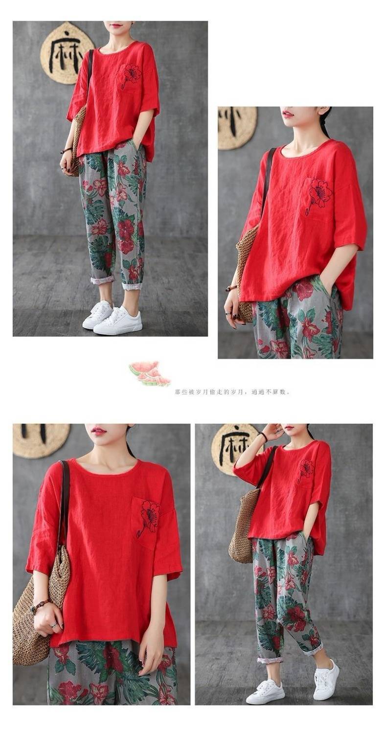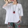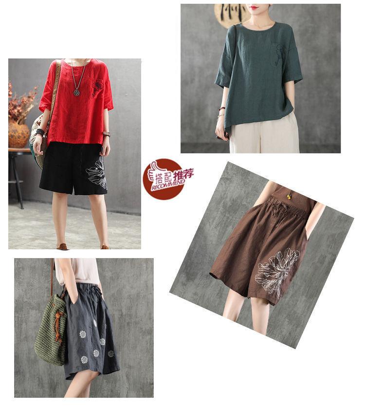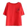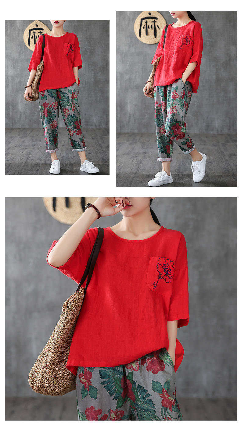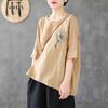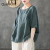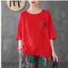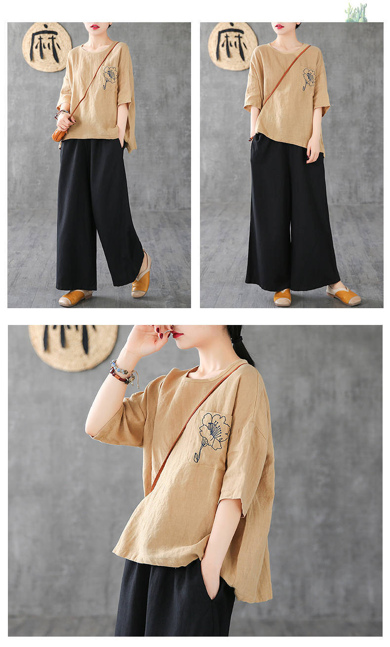 Camiseta de Algodón y Lino Bordada con Flores para Mujer Blusa Holgada de Manga Corta Verano 2025 Nuevo Top Casual de Media Manga