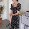 Vestido Blanco Puro Estilo Francés de Verano 2025 Estilo Occidental Cintura Larga Abertura Cuello Cuadrado Vestido de Manga Corta para la Hora del Té para Mujer