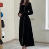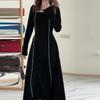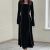 Otoño 2023 nuevo vestido de temperamento de alta calidad con cuello cuadrado de color sólido de moda transfronteriza de Amazon transfronteriza europea y americana para mujer
