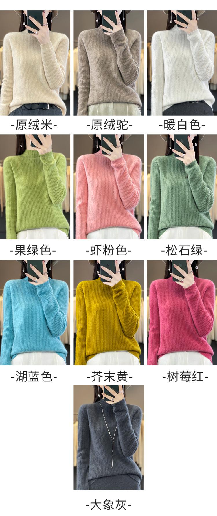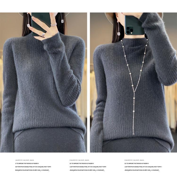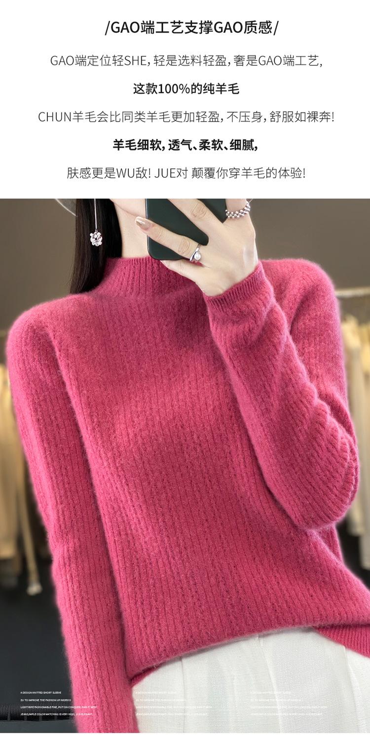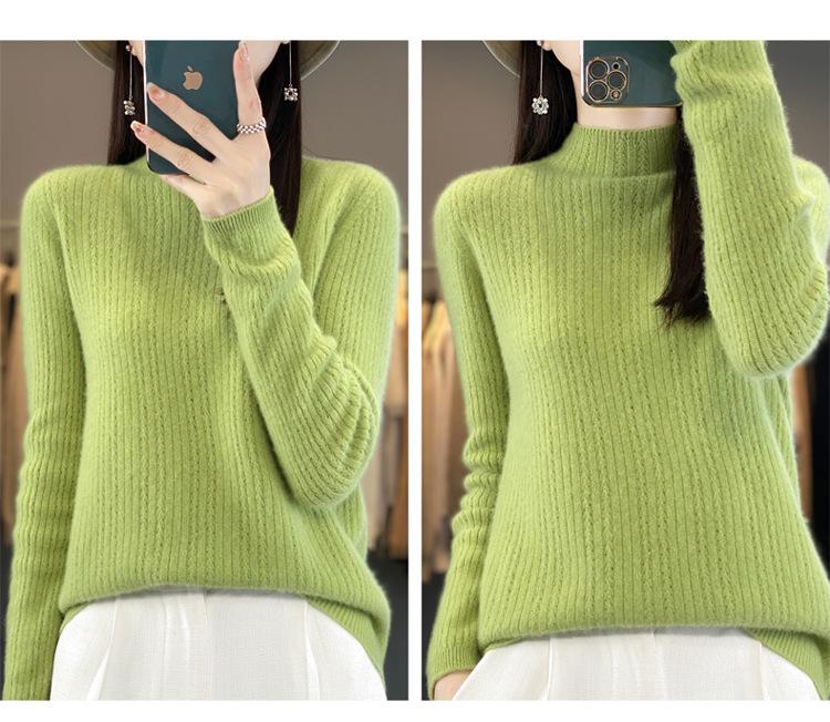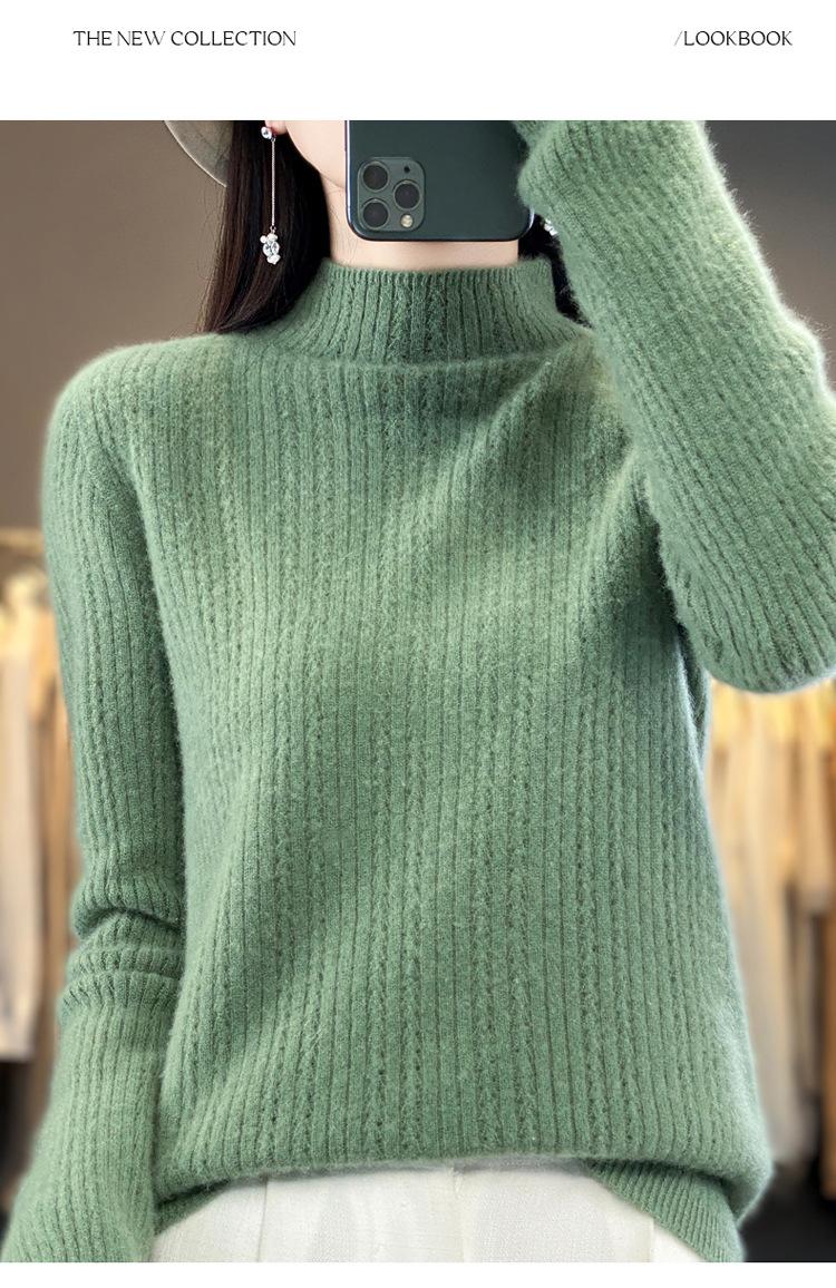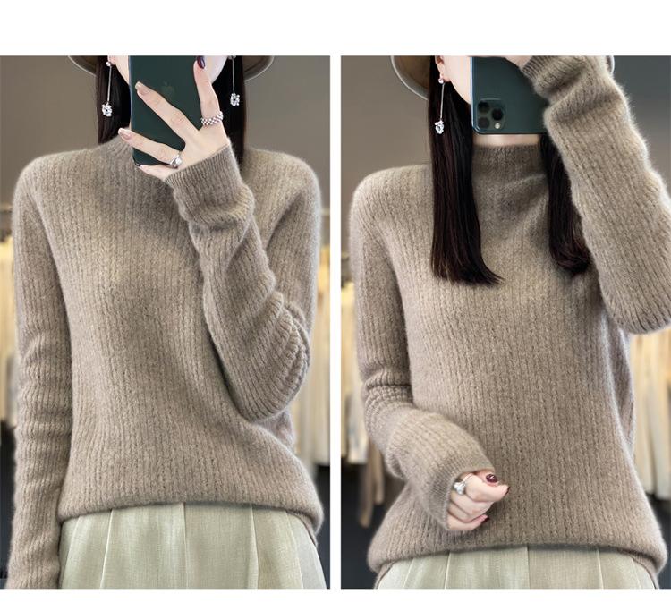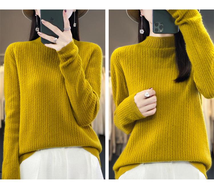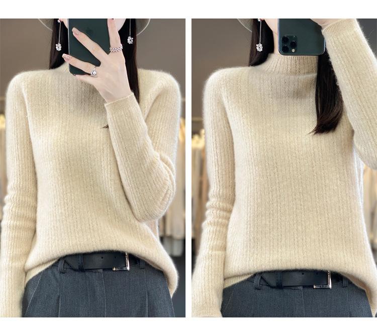 Suéter de cuello alto medio para mujer, 100% lana pura, otoño e invierno, suéter interior grueso y ajustado, camisa de base de punto, nuevo