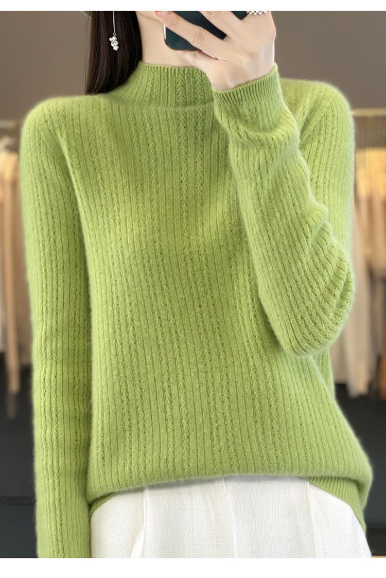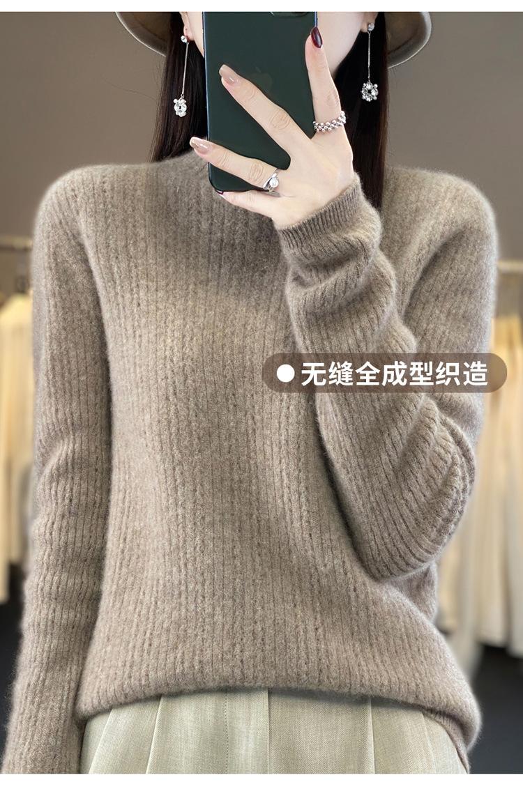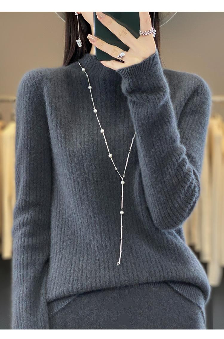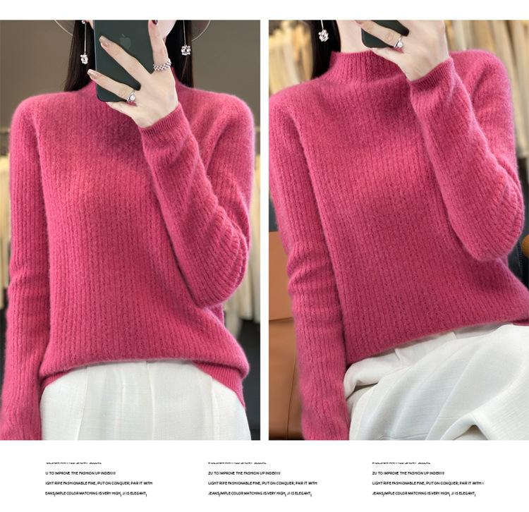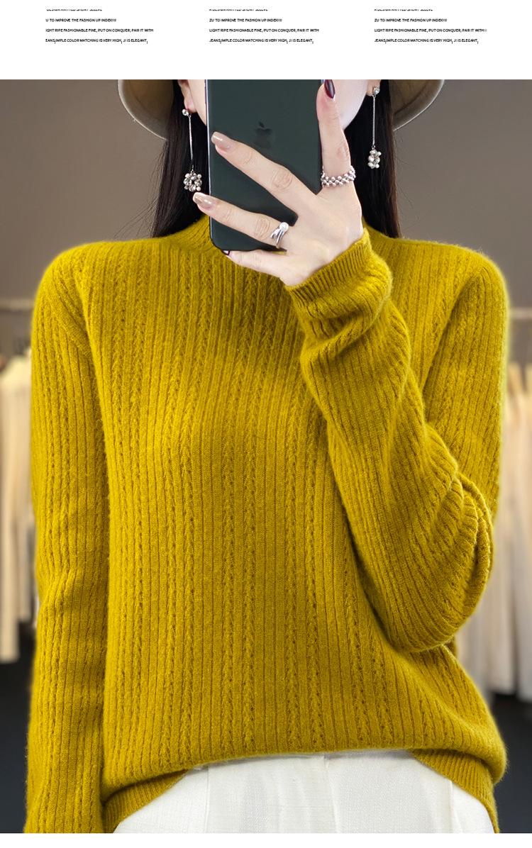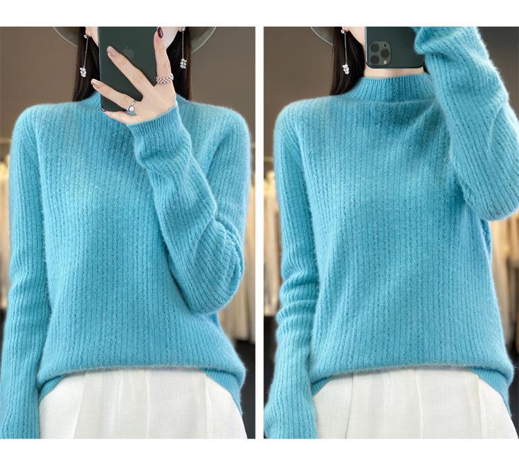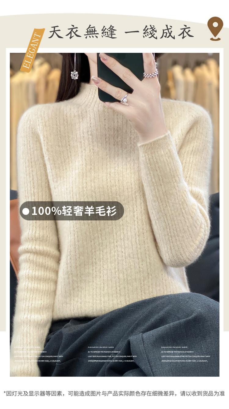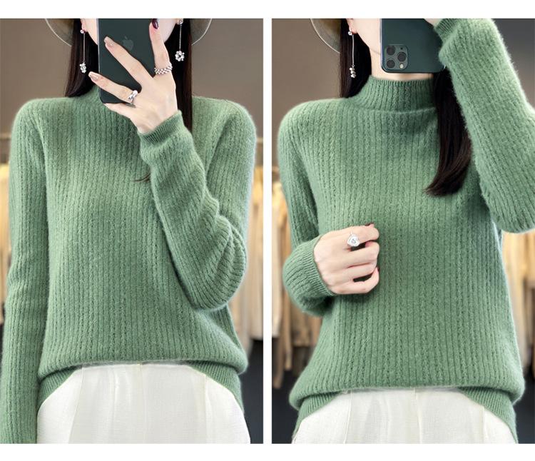 Suéter de cuello alto medio para mujer, 100% lana pura, otoño e invierno, suéter interior grueso y ajustado, camisa de base de punto, nuevo